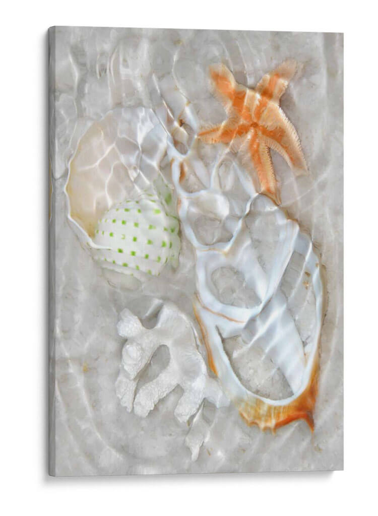 Sumérgete en la serena belleza del océano con 'Ondas de Luz Submarina Ix', una obra de arte de Leda Robertson que captura la magia de la vida marina. Esta pieza evoca la tranquilidad de las profundidades, presentando una delicada composición de conchas, estrellas de mar y formaciones coralinas bajo la sutil distorsión del agua. La paleta de colores, dominada por blancos nacarados, grises suaves y toques vibrantes de naranja y verde, crea una atmósfera etérea y relajante. Las texturas detalladas y el juego de luces y sombras, acentuados por las ondas del agua, invitan a la contemplación y transportan al espectador a un mundo subacuático de paz y asombro. "Ondas de Luz Submarina Ix" es el cuadro decorativo perfecto para añadir un toque de naturaleza serena y sofisticación a cualquier espacio, ya sea un dormitorio, un baño o una sala de estar que busque un refugio de calma y elegancia. Transforma tu hogar en un oasis de serenidad con esta exquisita representación del mundo marino.