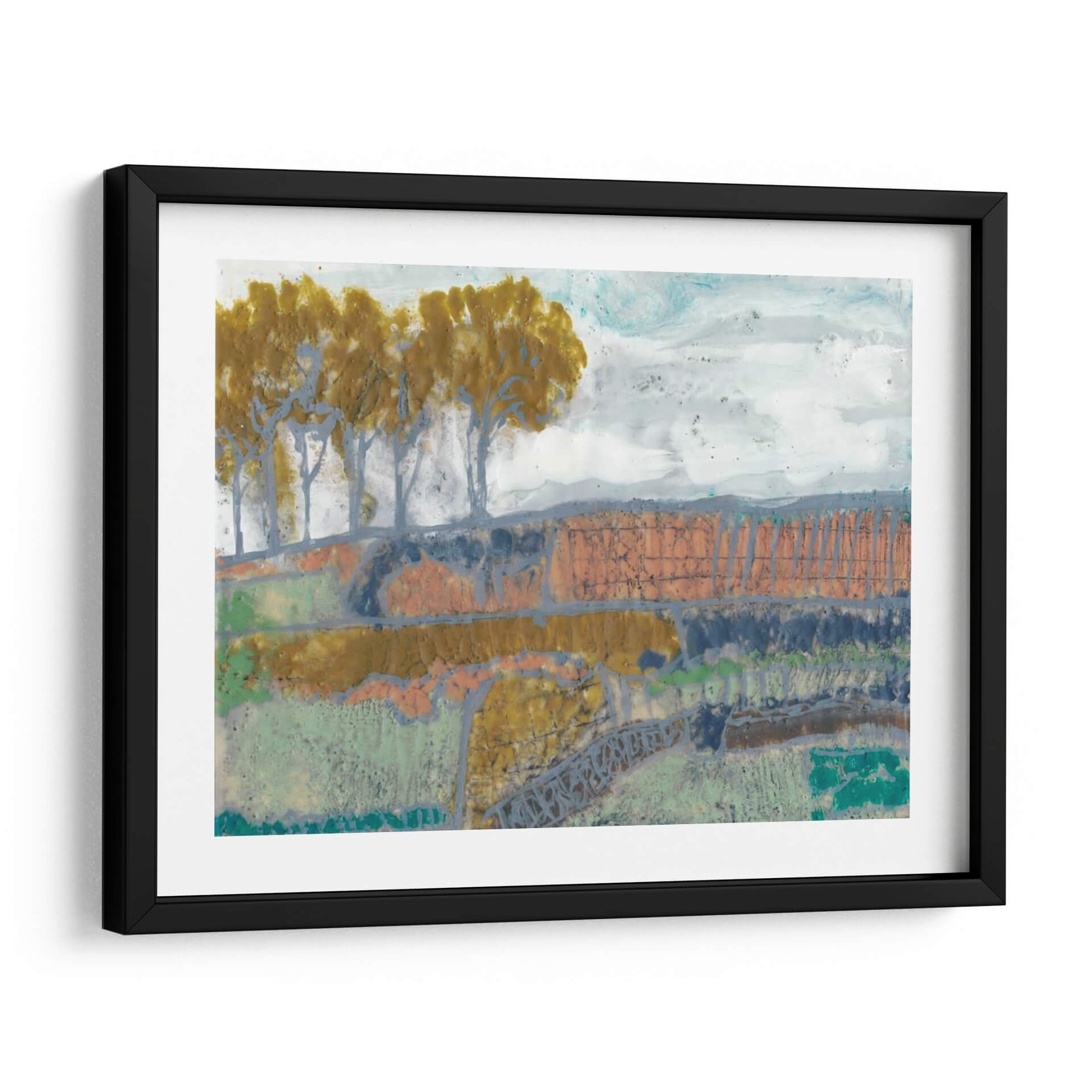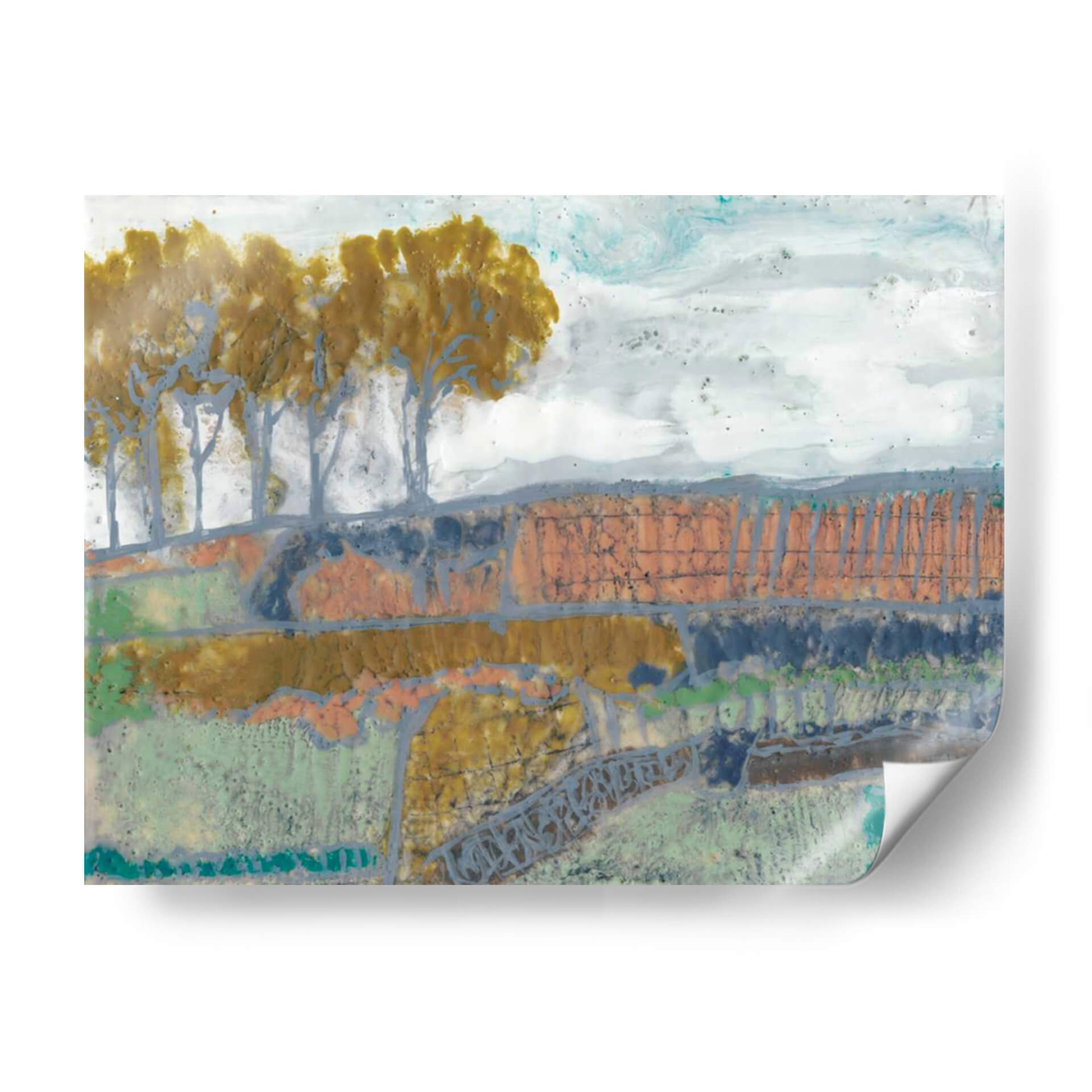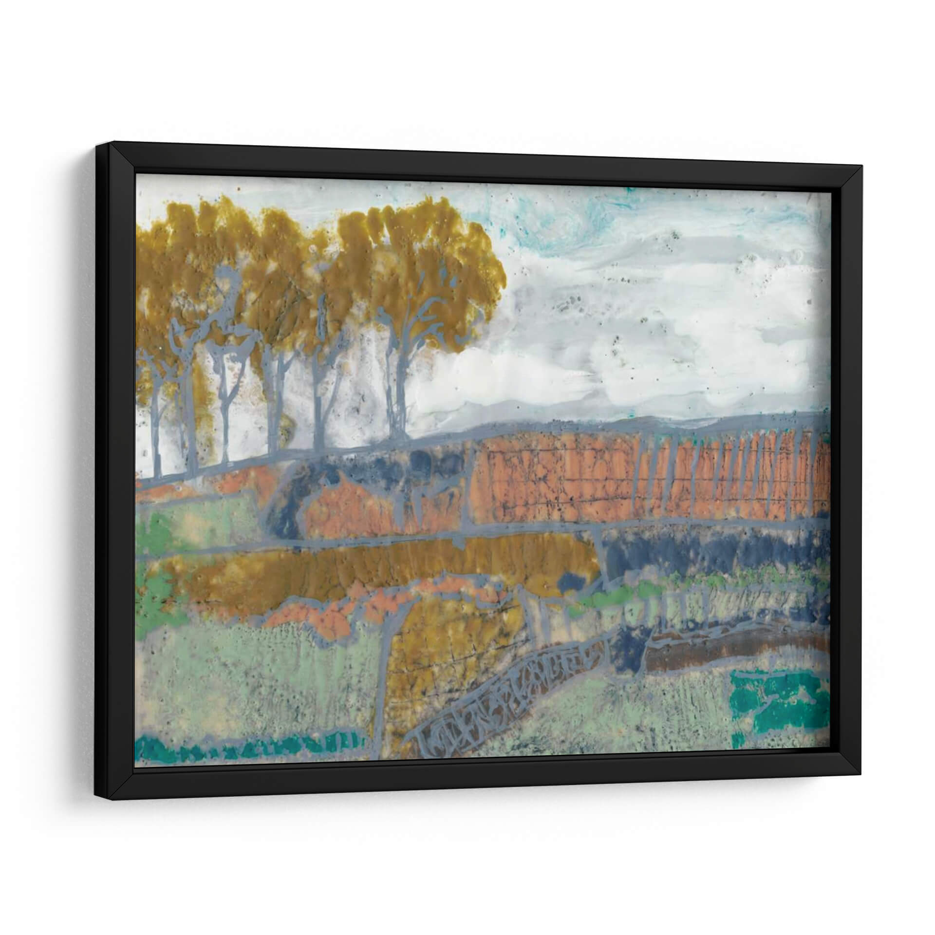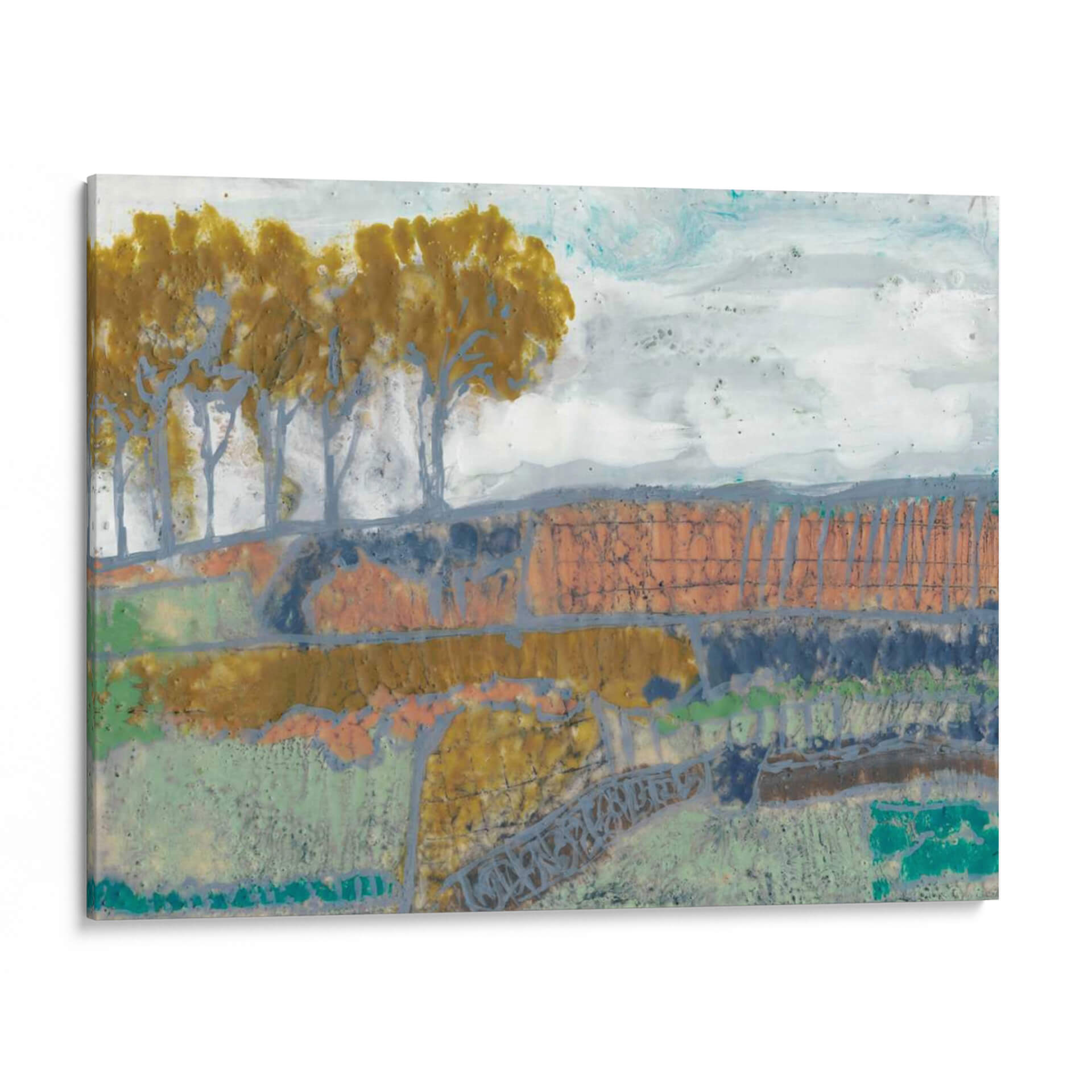 Sumérgete en la evocadora obra de arte 'Paisaje De Remiendo I' de Jennifer Goldberger, una pieza que captura la esencia de la naturaleza con un toque abstracto y moderno. Los tonos tierra, verdes musgo y toques de naranja y azul se entrelazan para crear una composición rica y texturizada que evoca la serenidad de un campo otoñal o un paisaje rural. La técnica mixta utilizada por la artista añade profundidad y un carácter único, invitando a la contemplación y al descubrimiento de nuevos detalles en cada mirada. Las siluetas estilizadas de árboles se alzan sobre un terreno escalonado, creando un ritmo visual cautivador. Este cuadro decorativo es perfecto para añadir un toque de sofisticación y calidez a cualquier espacio, ya sea una sala de estar, un comedor o una oficina. Su estilo abstracto contemporáneo lo convierte en un punto focal ideal para interiores modernos, rústicos o eclécticos, aportando una atmósfera de calma y conexión con la naturaleza. Descubre la belleza sutil y la profundidad emocional de 'Paisaje De Remiendo I', una obra que transformará tu hogar en una galería de arte personal.