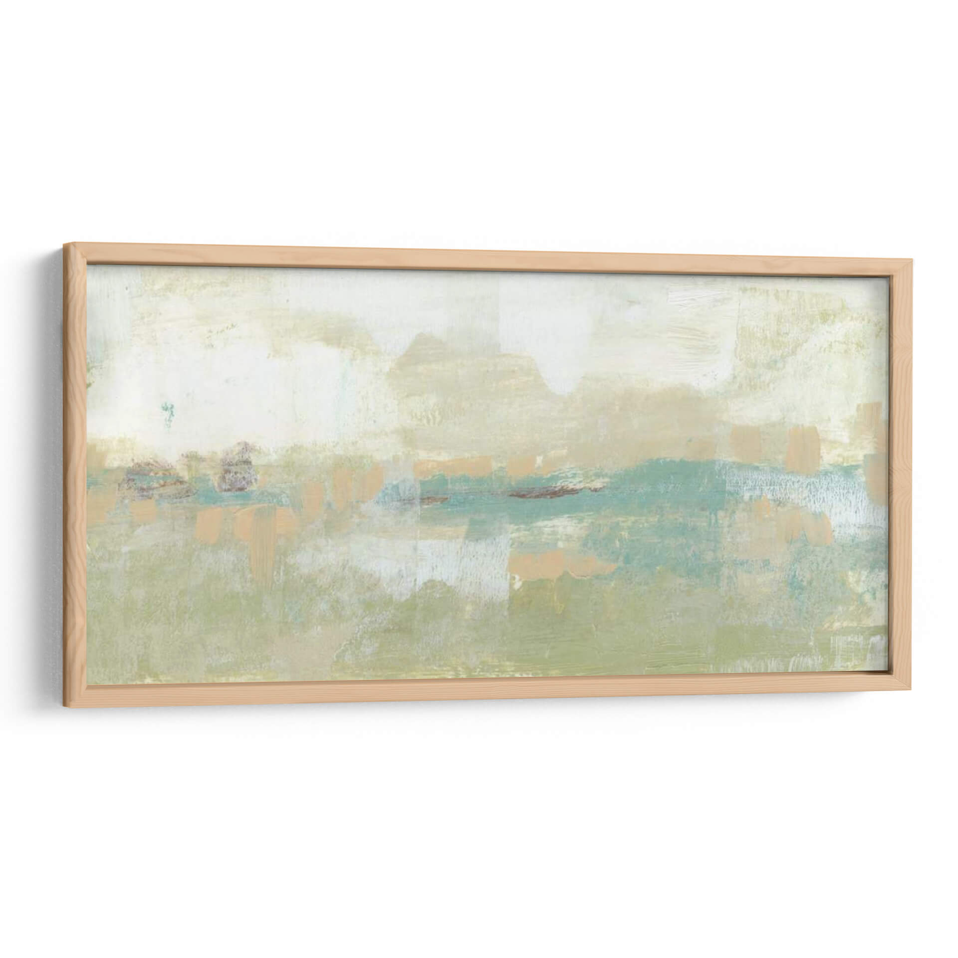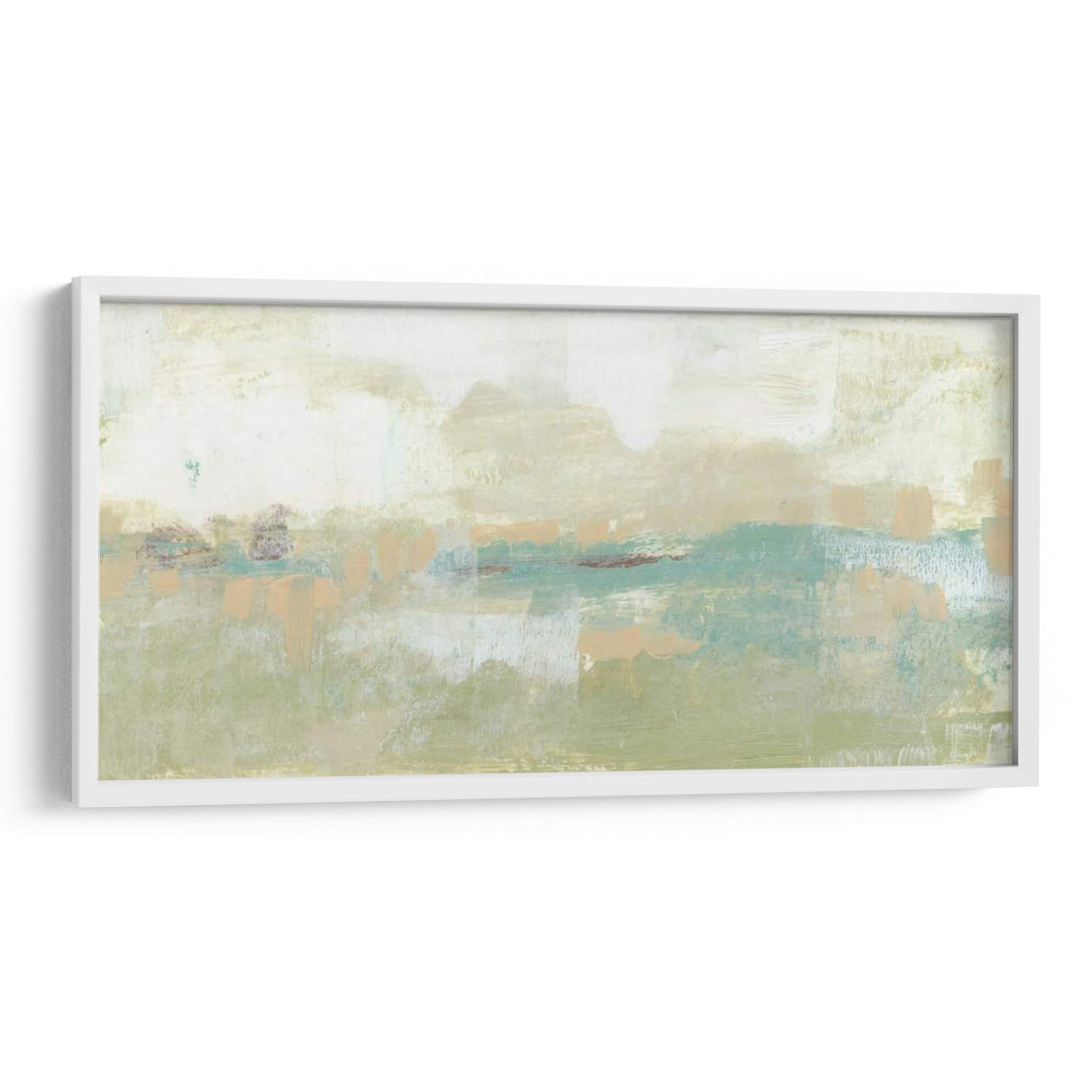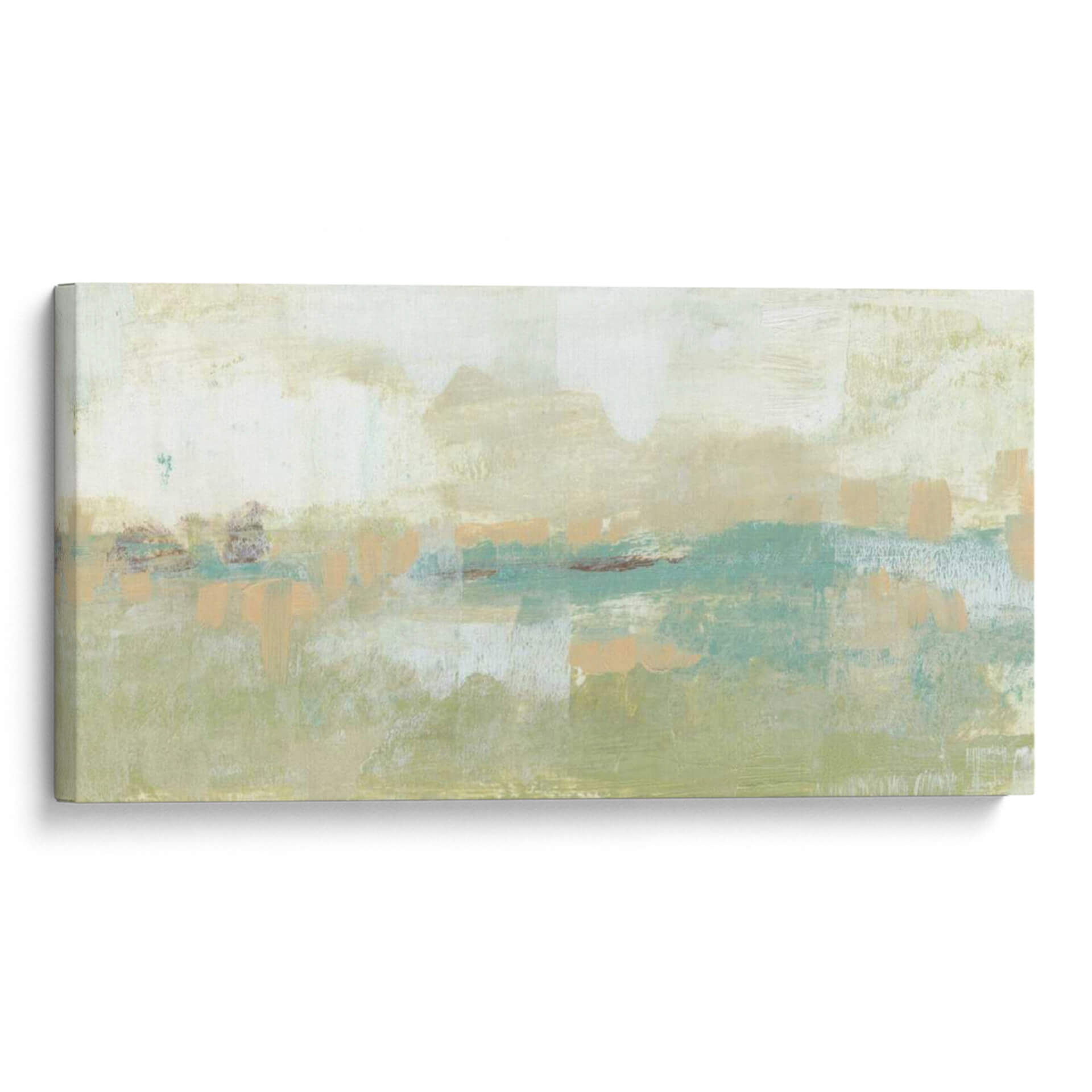 Sumérgete en la serenidad de "Paisaje Pastel I", una obra de arte abstracto contemporáneo de Jennifer Goldberger. Este cuadro decorativo captura la esencia de un paisaje etéreo a través de pinceladas suaves y una paleta de colores delicada que evoca calma y tranquilidad. Los tonos pastel de verde menta, melocotón suave y crema se mezclan armoniosamente, creando una atmósfera de paz que invita a la contemplación. Las texturas sutiles y las formas sugeridas invitan a la imaginación, transformando esta pieza en un punto focal suave pero cautivador para cualquier espacio. "Paisaje Pastel I" es ideal para añadir un toque de sofisticación y serenidad a tu sala de estar, dormitorio o estudio, fusionándose a la perfección con decoraciones modernas, minimalistas o bohemias. Descubre cómo esta composición abstracta puede infundir armonía y estilo en tu hogar, convirtiendo tu pared en un lienzo de emociones sutiles y belleza atemporal. Una elección perfecta para quienes buscan arte que calme el espíritu y eleve el ambiente.
