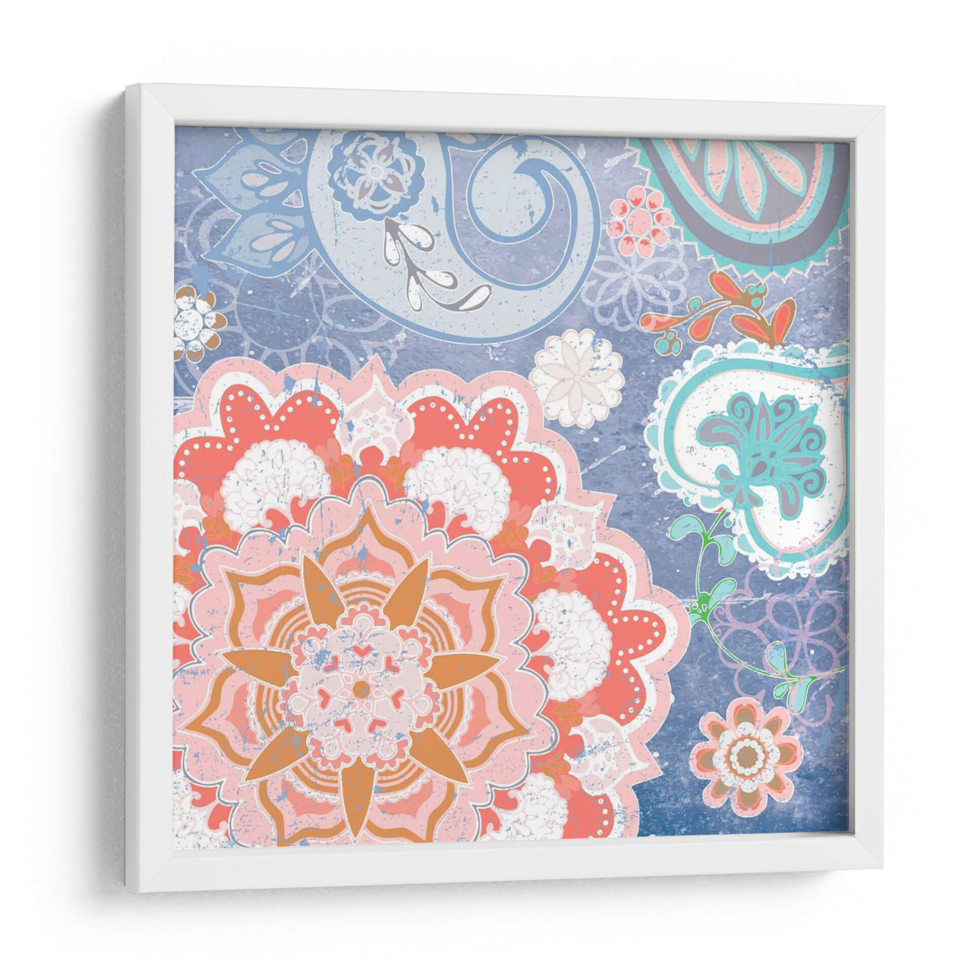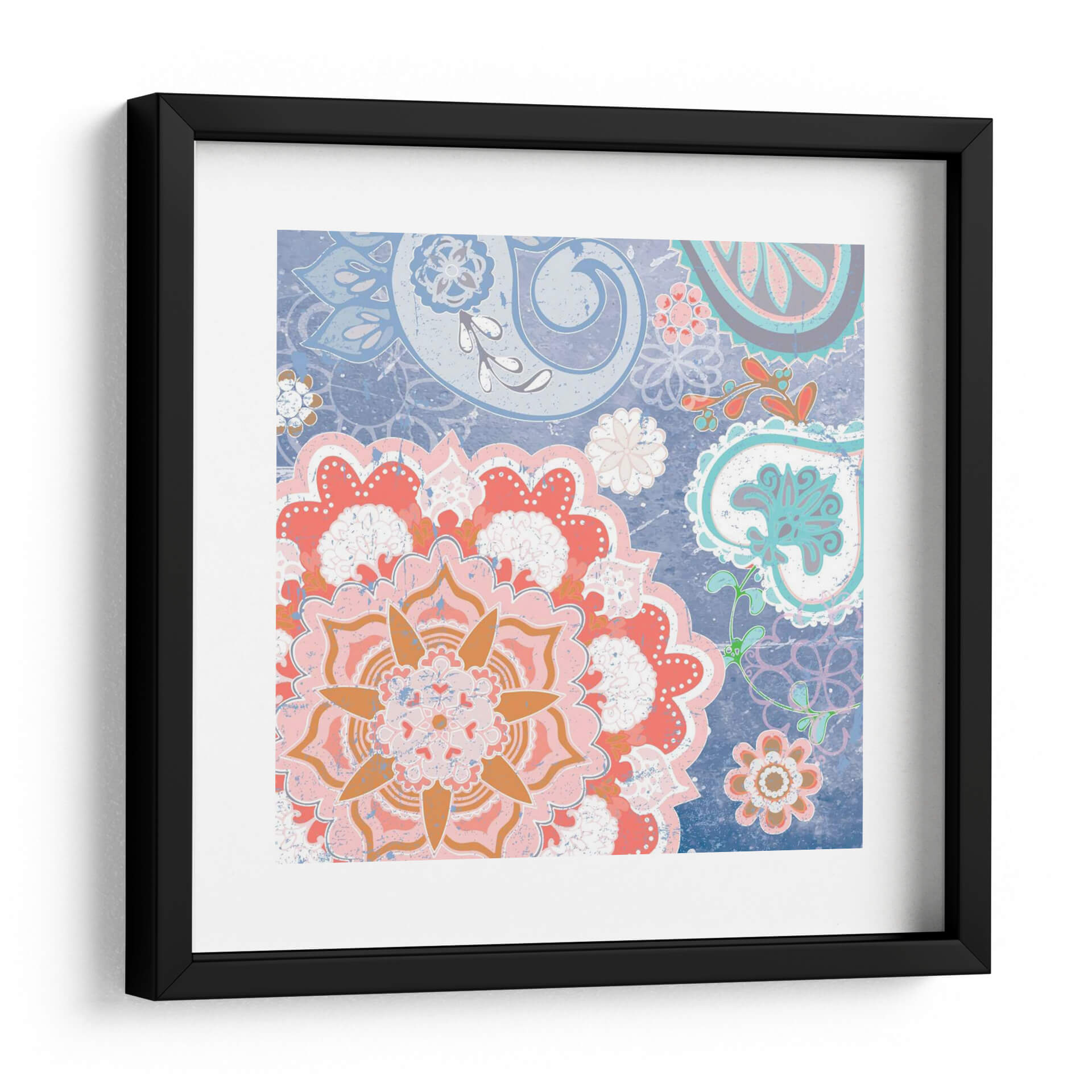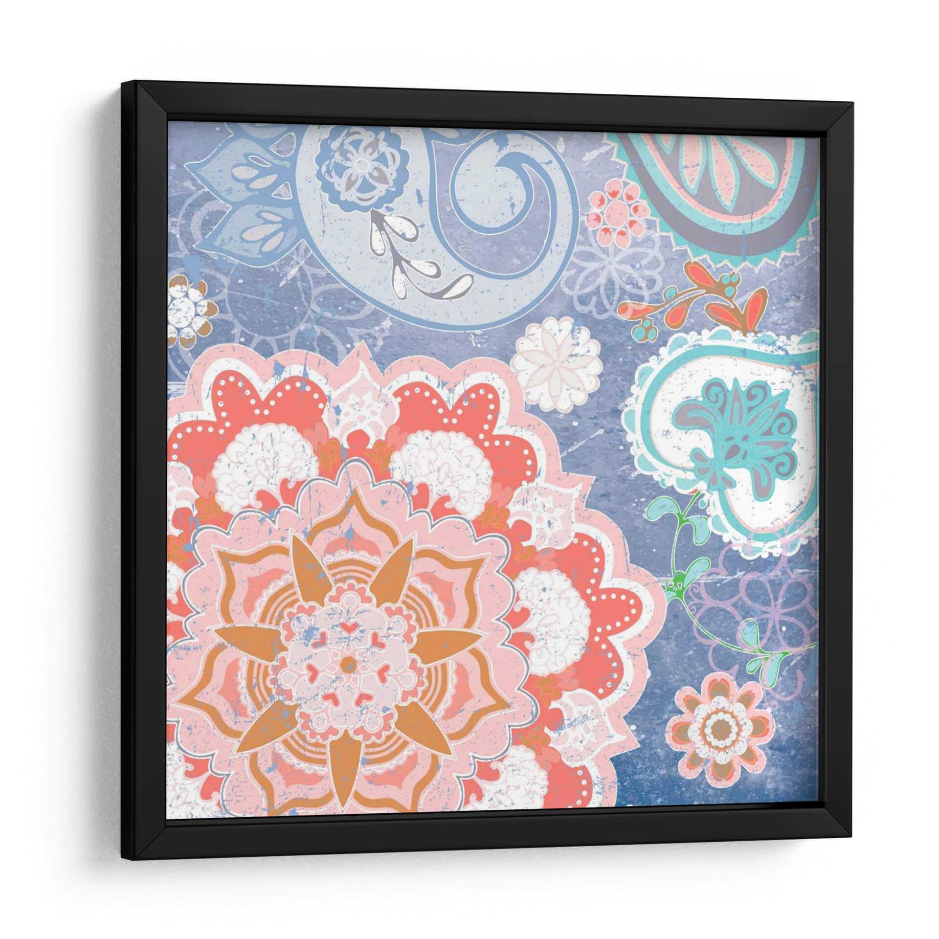 Transforma tu espacio con la vibrante energía de 'Paisley Faire Iv', una obra de arte digital que fusiona la delicadeza de los motivos florales con la audacia del estilo paisley. Los intrincados patrones se entrelazan en una composición cautivadora, dominada por una paleta de colores que evoca alegría y sofisticación. Tonos coral, rosa y naranja estallan contra un fondo azul profundo, creando un contraste visual impactante que atrae la mirada y estimula los sentidos. Cada pétalo y voluta está diseñado con un toque de textura, aportando una sensación de profundidad y detalle artesanal a esta pieza moderna. Es un cuadro decorativo ideal para quienes buscan añadir un toque de carácter y vitalidad a sus salas de estar, comedores o incluso oficinas, convirtiéndose en un punto focal que inspira conversaciones y admiración. 'Paisley Faire Iv' no es solo una decoración, es una expresión de estilo contemporáneo con raíces bohemias, perfecta para infundir calidez y personalidad en cualquier ambiente.