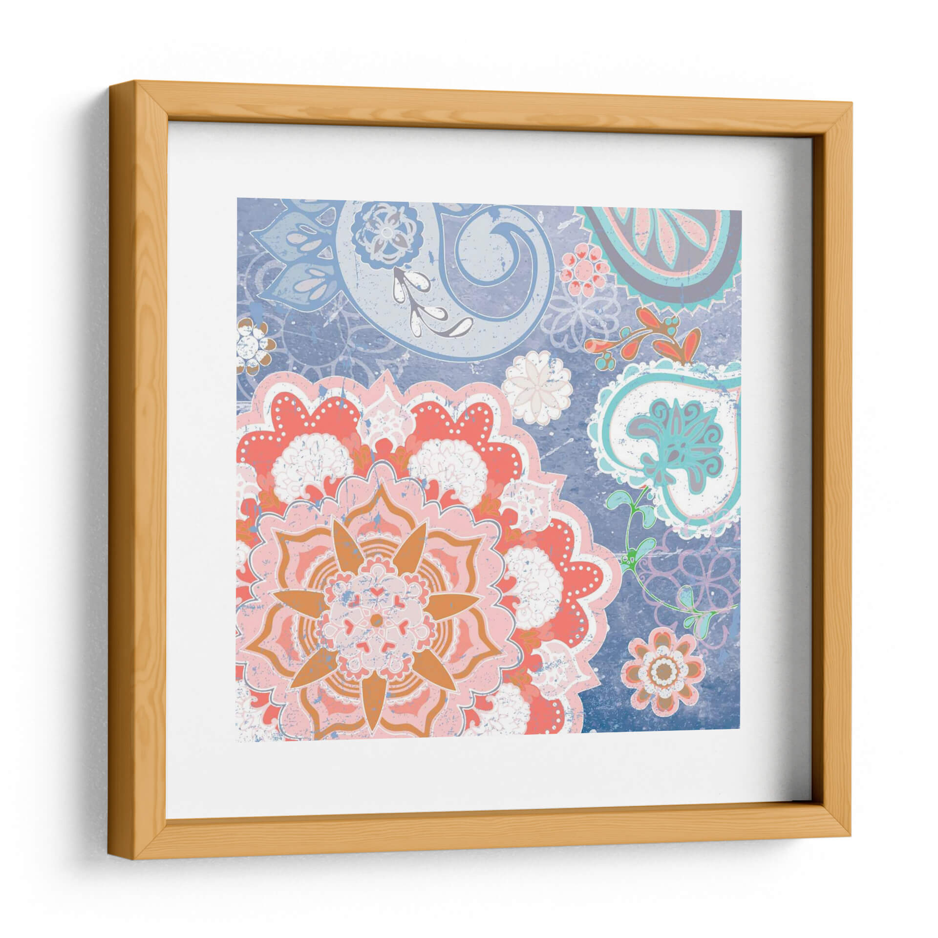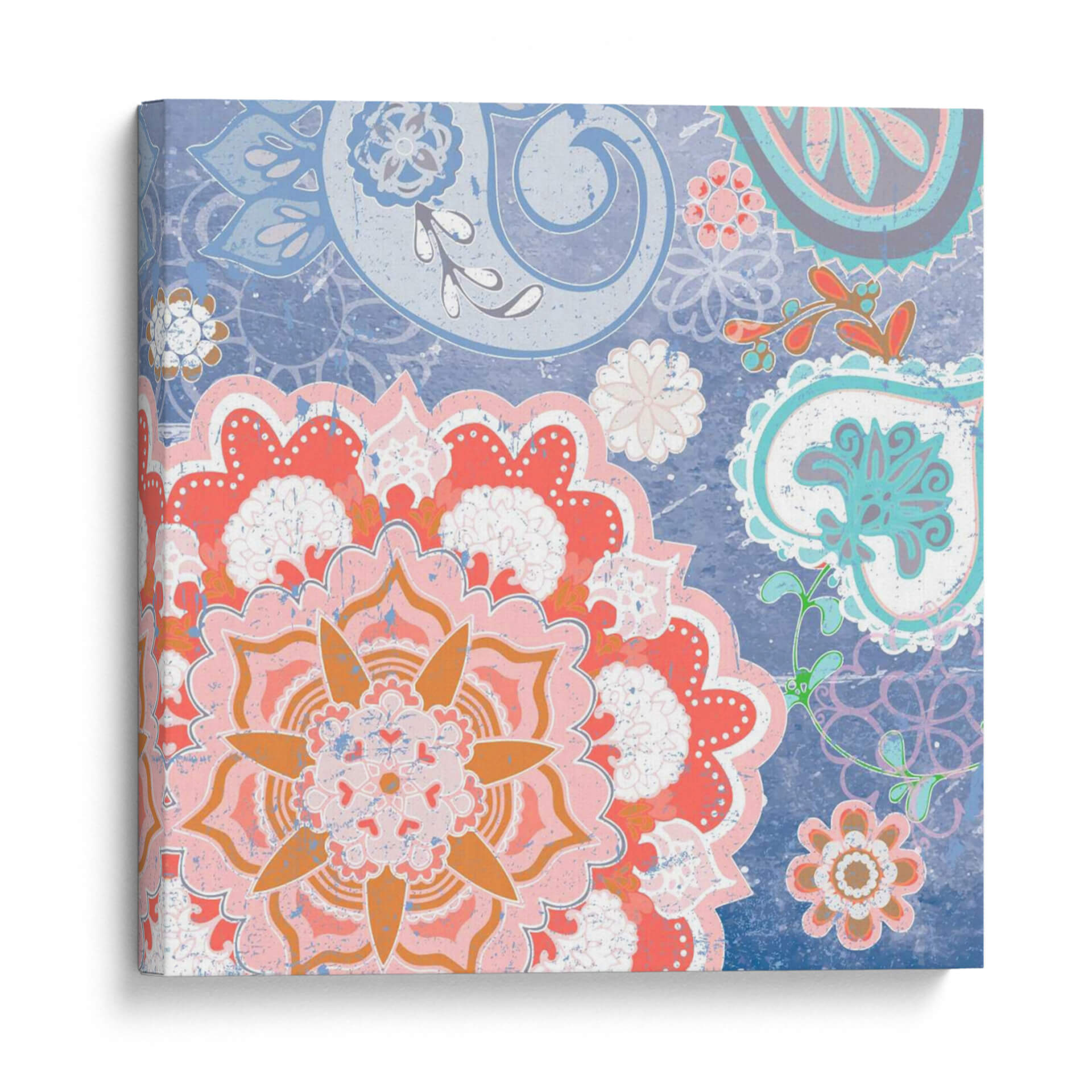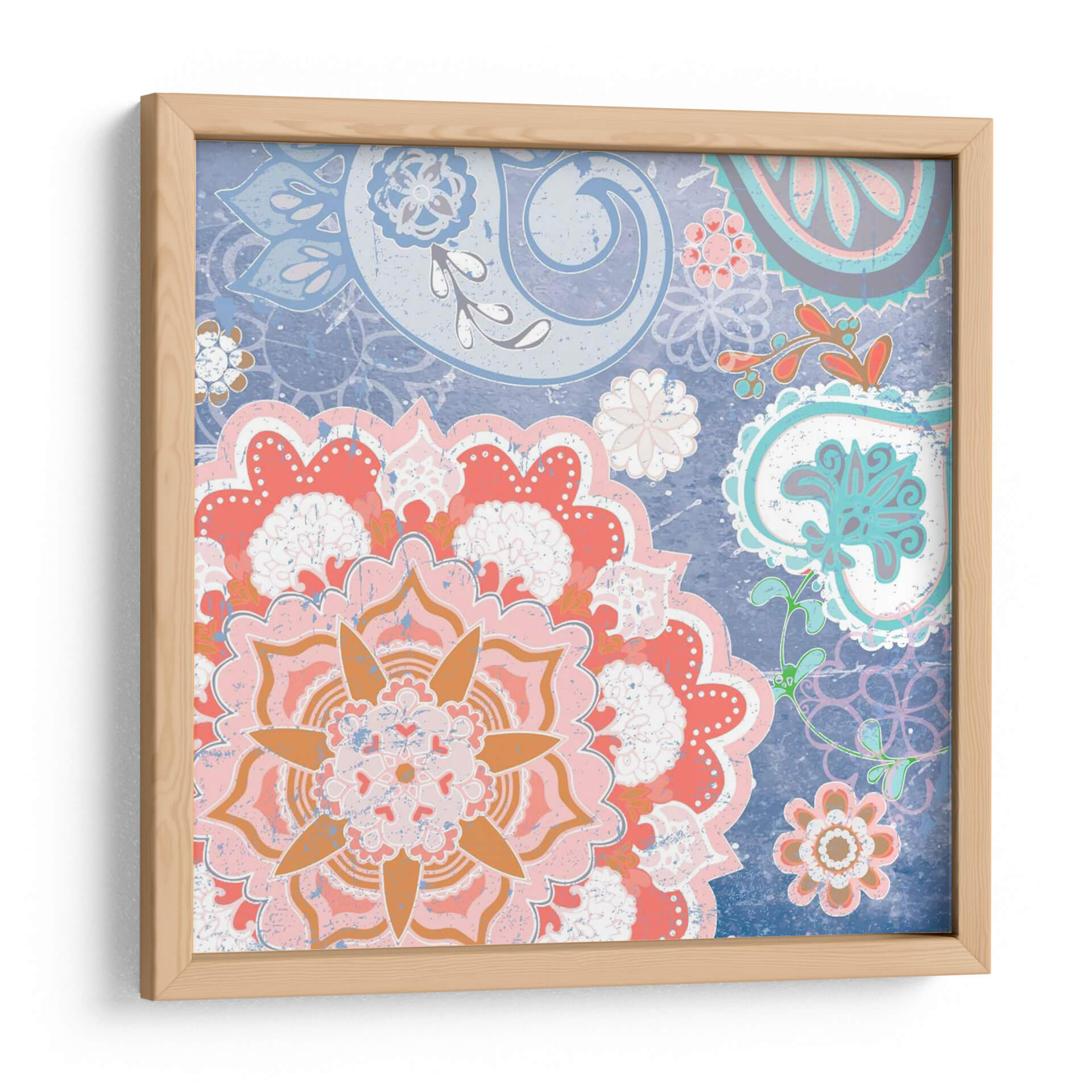 Transforma tu espacio con la vibrante energía de 'Paisley Faire Iv', una obra de arte digital que fusiona la delicadeza de los motivos florales con la audacia del estilo paisley. Los intrincados patrones se entrelazan en una composición cautivadora, dominada por una paleta de colores que evoca alegría y sofisticación. Tonos coral, rosa y naranja estallan contra un fondo azul profundo, creando un contraste visual impactante que atrae la mirada y estimula los sentidos. Cada pétalo y voluta está diseñado con un toque de textura, aportando una sensación de profundidad y detalle artesanal a esta pieza moderna. Es un cuadro decorativo ideal para quienes buscan añadir un toque de carácter y vitalidad a sus salas de estar, comedores o incluso oficinas, convirtiéndose en un punto focal que inspira conversaciones y admiración. 'Paisley Faire Iv' no es solo una decoración, es una expresión de estilo contemporáneo con raíces bohemias, perfecta para infundir calidez y personalidad en cualquier ambiente.