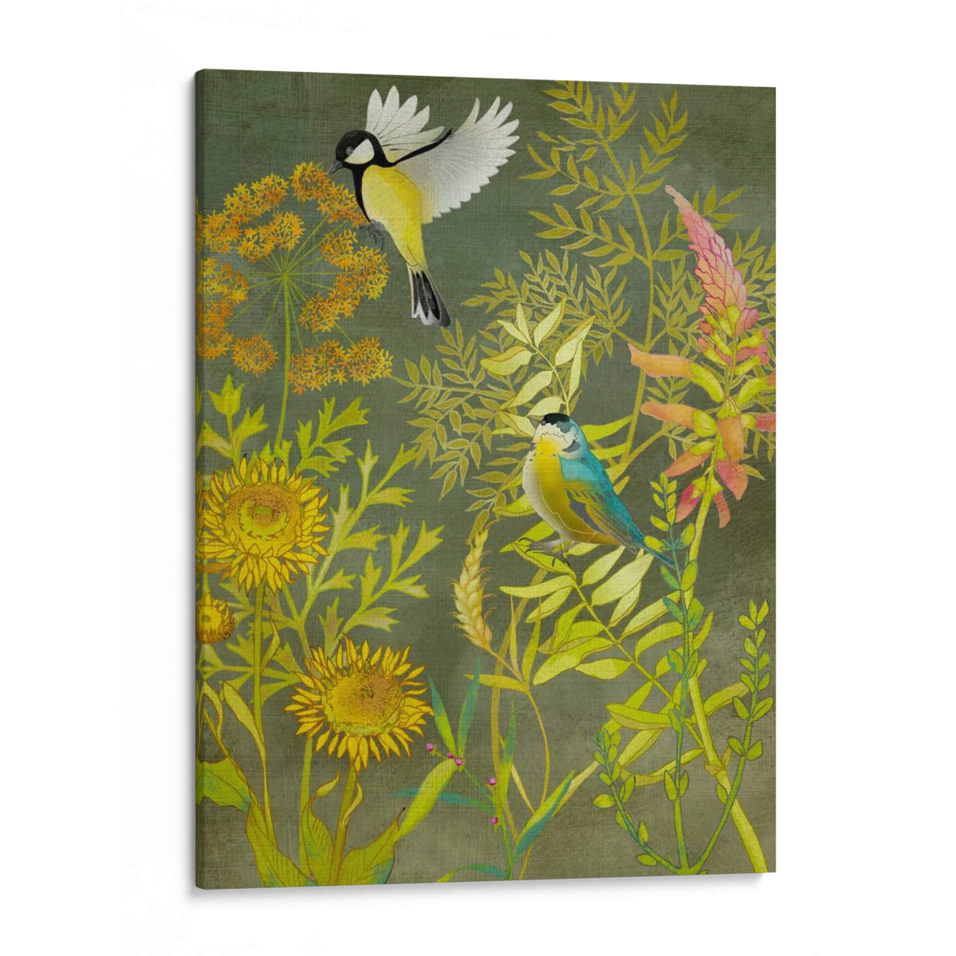 Sumérgete en la serenidad de la naturaleza con "Pájaro I", una obra de arte que captura la delicadeza y la vitalidad de la vida silvestre. Este cuadro decorativo presenta dos pájaros en pleno vuelo y posados entre una exuberante vegetación, destacando la belleza de las flores amarillas y las hojas verdes vibrantes. La paleta de colores, dominada por tonos verdes y amarillos terrosos con toques de rosa y azul, crea una atmósfera orgánica y relajante, perfecta para cualquier espacio que busque un respiro de la rutina diaria. La composición detallada y el estilo evocador de Chariklia Zarris invitan a la contemplación, transformando cualquier habitación en un santuario de paz y belleza natural. Ideal para salones, dormitorios o estudios, este cuadro decorativo añade un toque de encanto campestre y elegancia atemporal. Su diseño cuidadoso y su temática inspiradora lo convierten en la pieza central perfecta para quienes aprecian el arte que celebra la armonía del mundo natural. Añade esta pieza a tu colección y siente la conexión con la naturaleza en tu hogar.