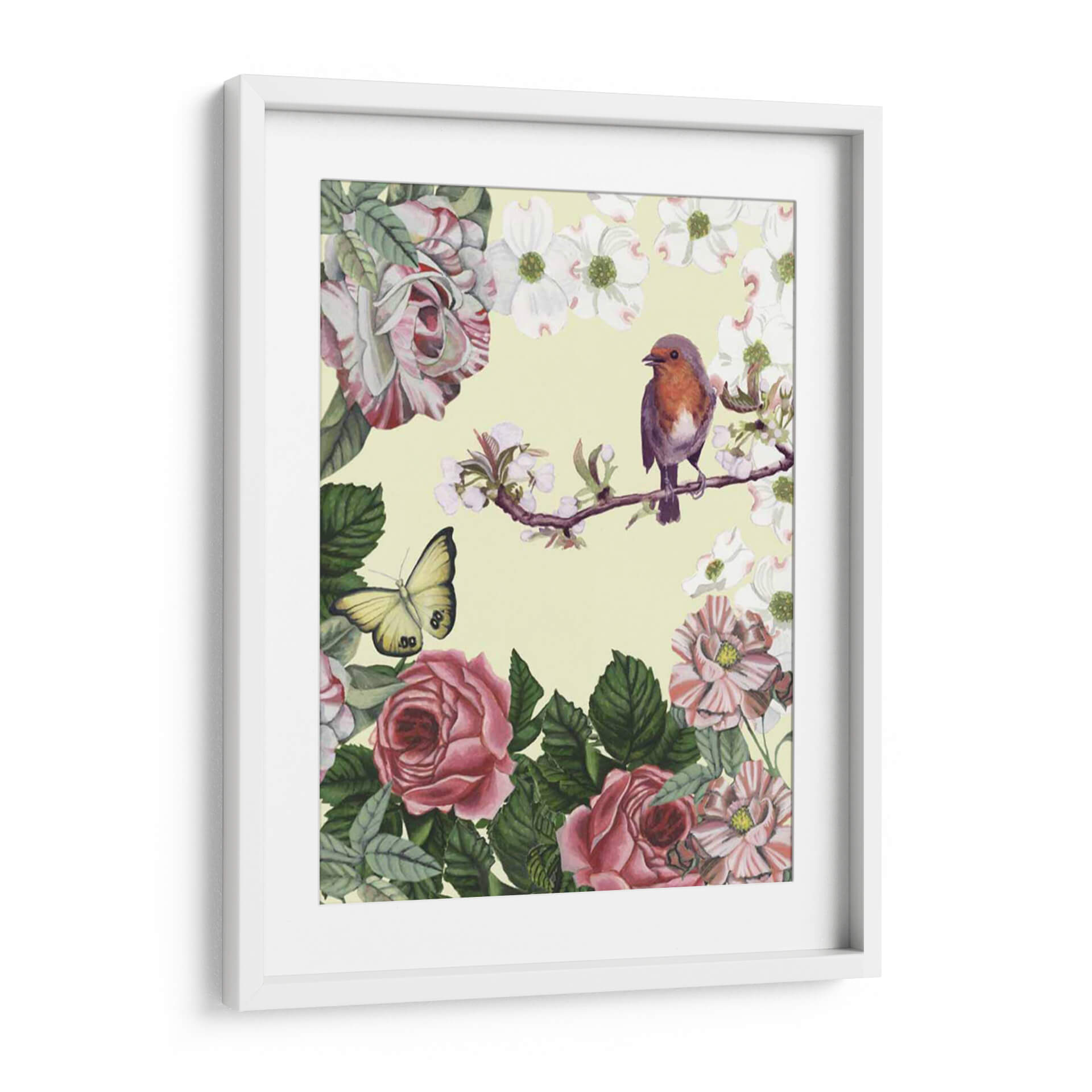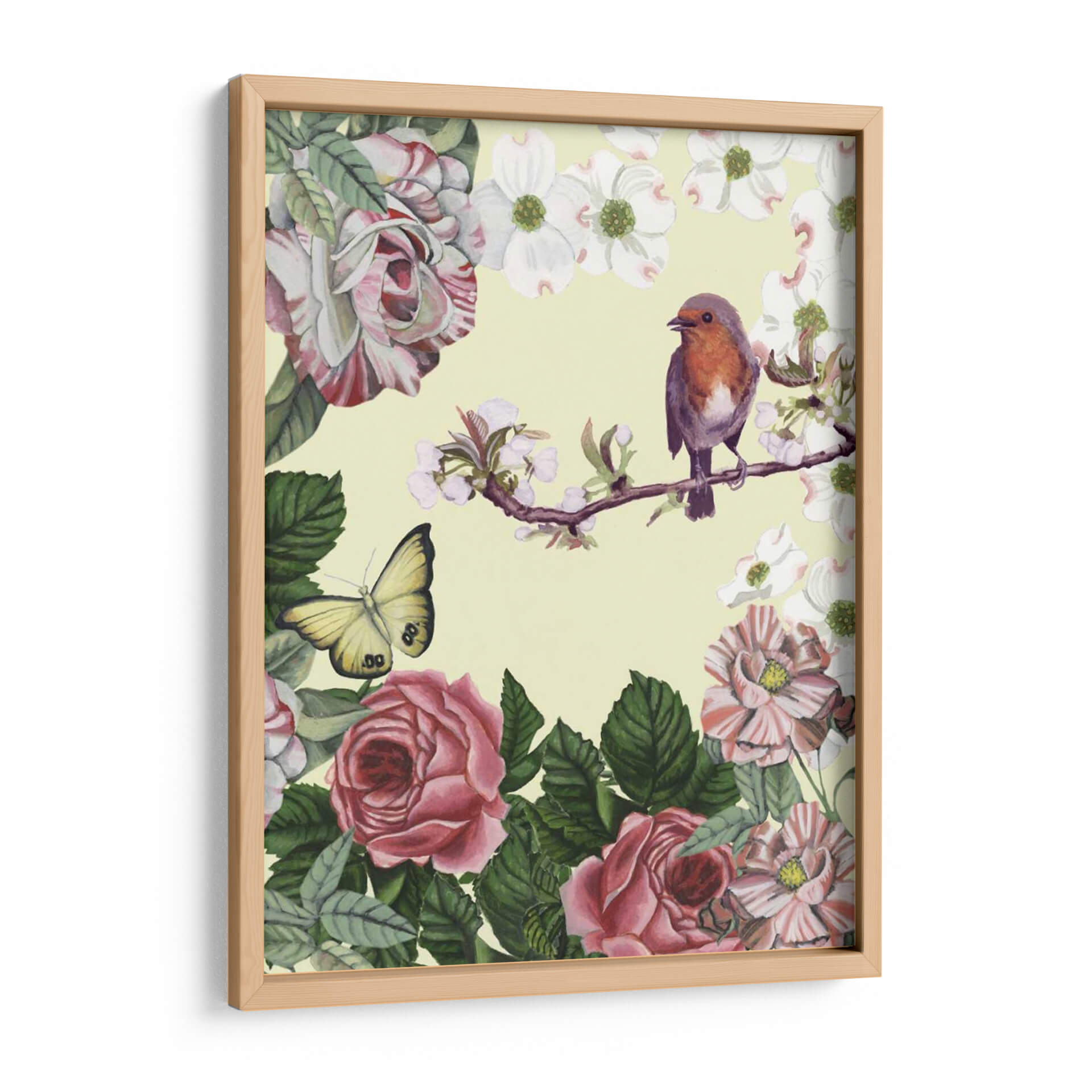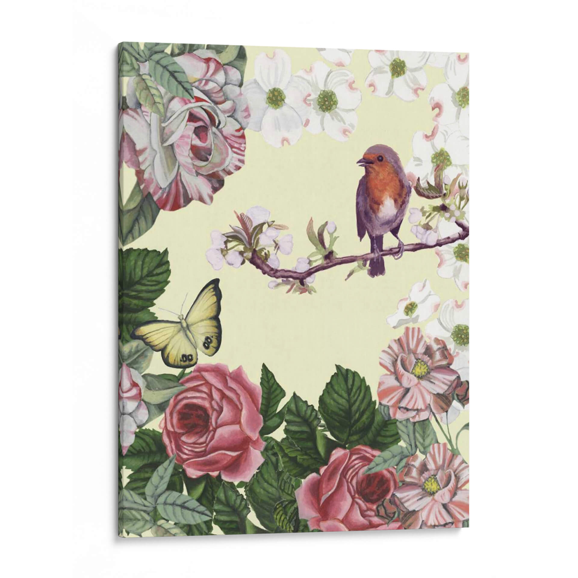 Sumérgete en la delicadeza y el encanto natural con "Pájaro Jardín II", una obra de arte cautivadora de Naomi McCavitt. Este cuadro decorativo te transporta a un oasis de tranquilidad, donde un pequeño pájaro petirrojo se posa en una rama florida, rodeado por la opulencia de rosas rojas y mariposas amarillas. La paleta de colores, dominada por suaves tonos pastel y verdes frondosos, crea una atmósfera serena y acogedora, perfecta para añadir un toque de vida y elegancia a cualquier espacio. El estilo detallado y casi pictórico de McCavitt da vida a cada pétalo y pluma, invitándote a admirar la belleza efímera de la naturaleza. Ideal para dormitorios, salas de estar o cualquier rincón que necesite un respiro de calma y belleza. Este cuadro decorativo es una invitación a contemplar la armonía del jardín, un recordatorio de la serenidad que podemos encontrar en los pequeños detalles. Transforma tu hogar u oficina con la dulzura atemporal de esta pieza.