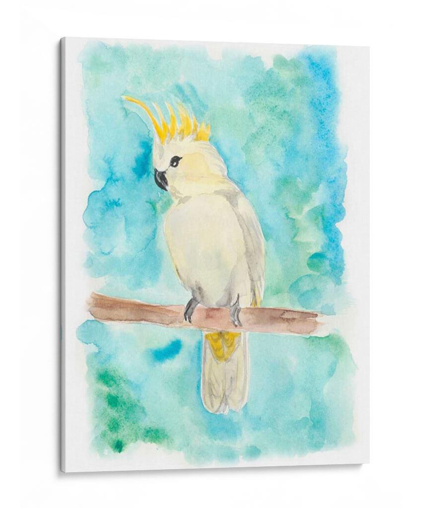 Atrae la serenidad y la belleza de la naturaleza a tu hogar con "Pájaro Tropical Dulce II", una cautivadora obra de arte en acuarela de la reconocida artista Regina Moore. Esta pieza evoca una atmósfera de tranquilidad y encanto tropical, presentando un majestuoso cacatúa de cresta amarilla posado elegantemente sobre una rama. Los vibrantes tonos turquesa y esmeralda del fondo se mezclan suavemente, creando un ambiente etéreo que complementa la delicada representación del ave. La técnica de acuarela de Moore aporta una ligereza y fluidez a la composición, resaltando la textura suave de las plumas y la vivacidad de los detalles amarillos. Este cuadro decorativo es ideal para añadir un toque de color y vida a cualquier espacio, desde una sala de estar moderna hasta un dormitorio acogedor o una oficina inspiradora. Su estilo figurativo con un toque impresionista lo convierte en una pieza versátil que puede enriquecer diversas decoraciones. Imagina este pájaro exótico aportando una sensación de calma y un recordatorio de la belleza natural a tu entorno diario. "Pájaro Tropical Dulce II" no es solo una imagen, es una ventana a un paraíso sereno, perfecta para quienes buscan arte que hable al alma y eleve la decoración de su hogar.