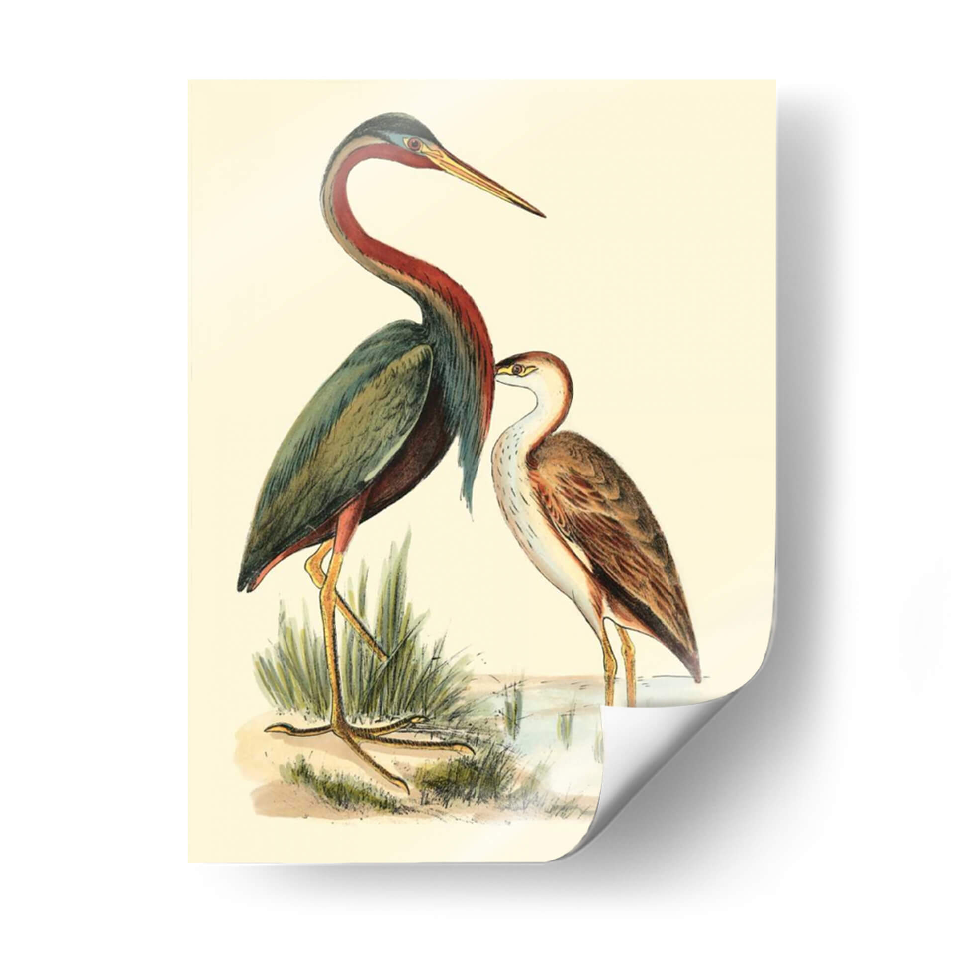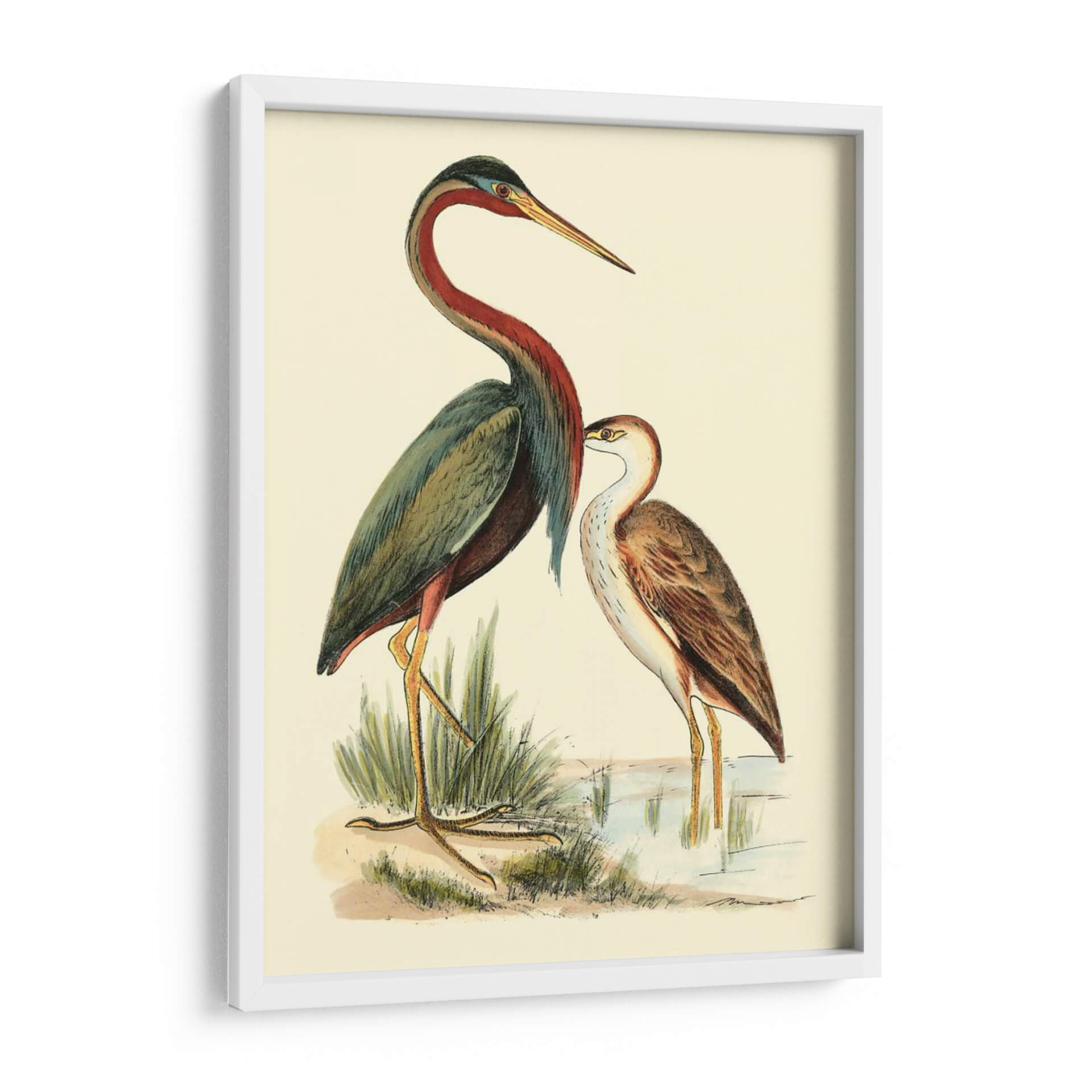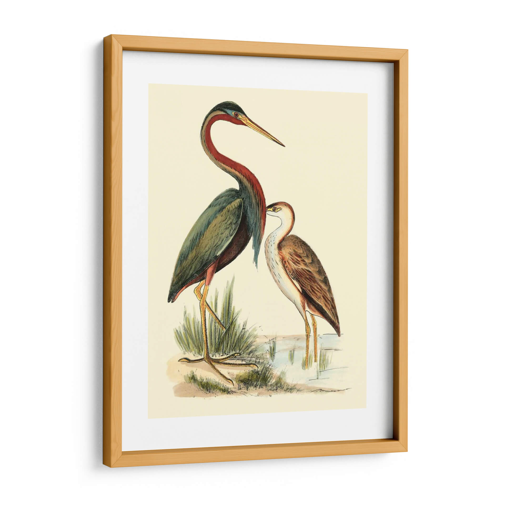 Sumérgete en la serenidad del mundo natural con "Pájaros De Agua III", una cautivadora obra de arte de H.L. Meyer. Este cuadro decorativo presenta una exquisita ilustración de dos aves acuáticas, detalladamente representadas en un entorno sereno junto a un cuerpo de agua y vegetación de ribera. La paleta de colores, dominada por tonos tierra, verdes apagados y acentos de rojo burdeos y azul, evoca una sensación de tranquilidad y conexión con la naturaleza. El estilo de la ilustración, que recuerda a las clásicas láminas de ornitología, aporta un toque de elegancia atemporal y un aire de estudio científico. La composición cuidadosamente equilibrada, con las aves como protagonistas, invita a la contemplación y al aprecio por la delicadeza de la vida silvestre. Ideal para quienes buscan infundir calma y sofisticación en su hogar u oficina, este cuadro decorativo es una ventana a la belleza serena de un ecosistema acuático. Añade un toque de naturaleza y arte clásico a tus espacios con esta pieza única que inspira paz y admiración.
