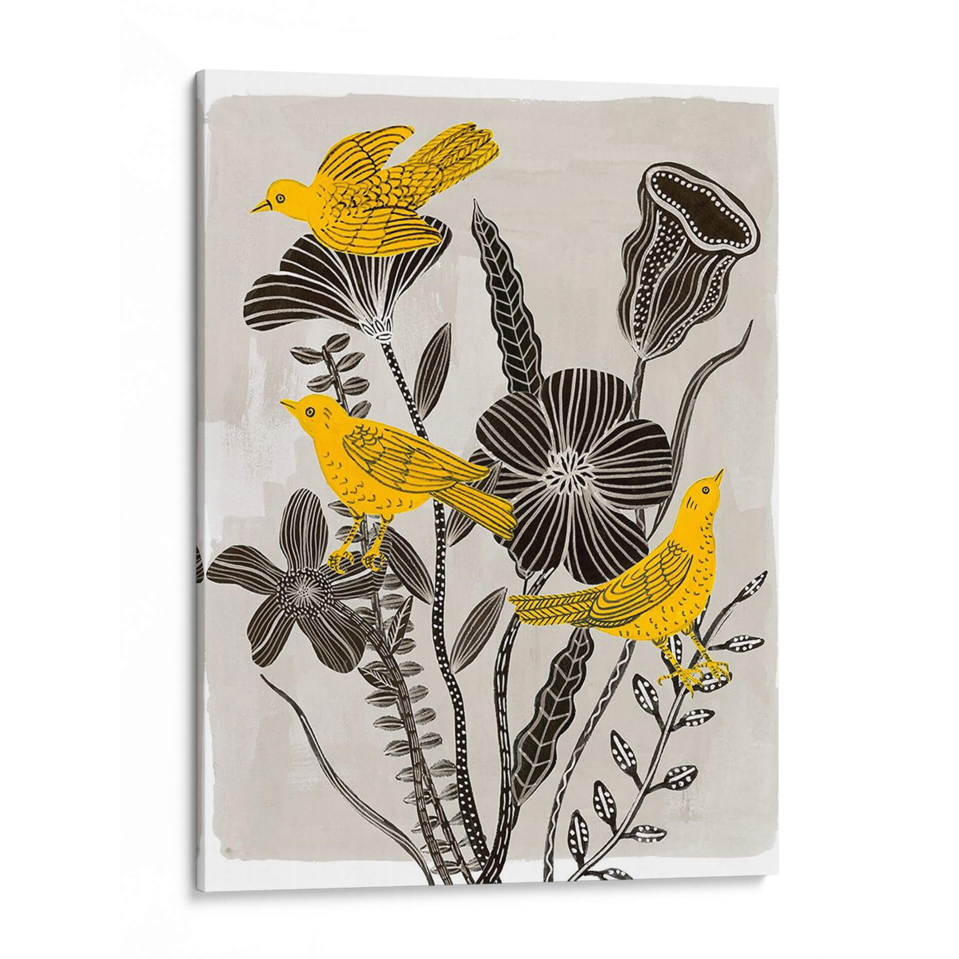 Embárcate en un viaje visual al corazón de la naturaleza con "Pájaros En Mi Jardín I", una cautivadora obra de arte de Melissa Wang. Este cuadro decorativo presenta tres vibrantes pájaros amarillos posados entre una exuberante y estilizada flora en tonos grises y negros. La composición, con sus líneas audaces y un toque de acuarela texturizada, crea una atmósfera de serenidad y encanto natural. Los detallados patrones en las alas de los pájaros y en los pétalos de las flores, junto con el contraste entre los vivos acentos amarillos y el fondo neutro, dotan a la pieza de una profundidad y un dinamismo únicos. Ideal para añadir un toque de color y vida a cualquier espacio, desde una sala de estar moderna hasta un rincón de lectura acogedor o una oficina que busca inspiración. Esta pieza no es solo decoración, es una ventana a un mundo de tranquilidad y belleza, perfecta para aquellos que aprecian el arte contemporáneo con un toque orgánico y alegre. Deja que "Pájaros En Mi Jardín I" revolucione tu hogar con su estética única y su evocadora presencia.