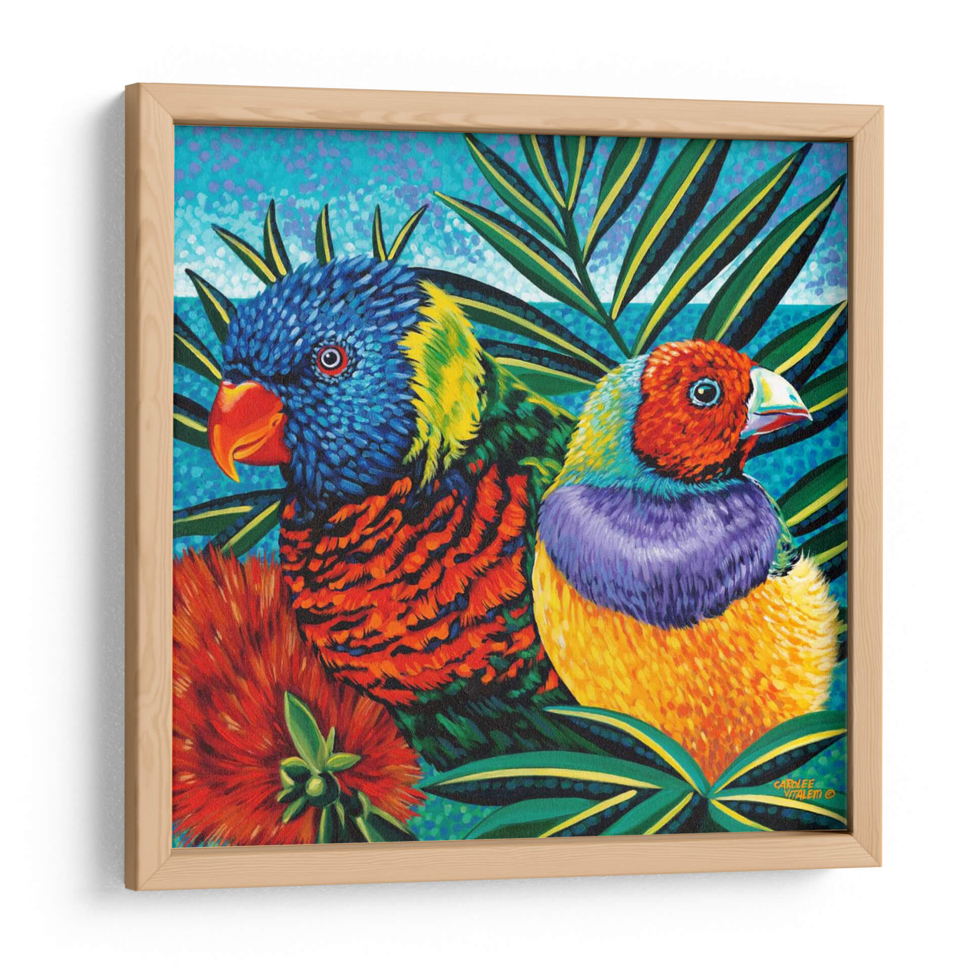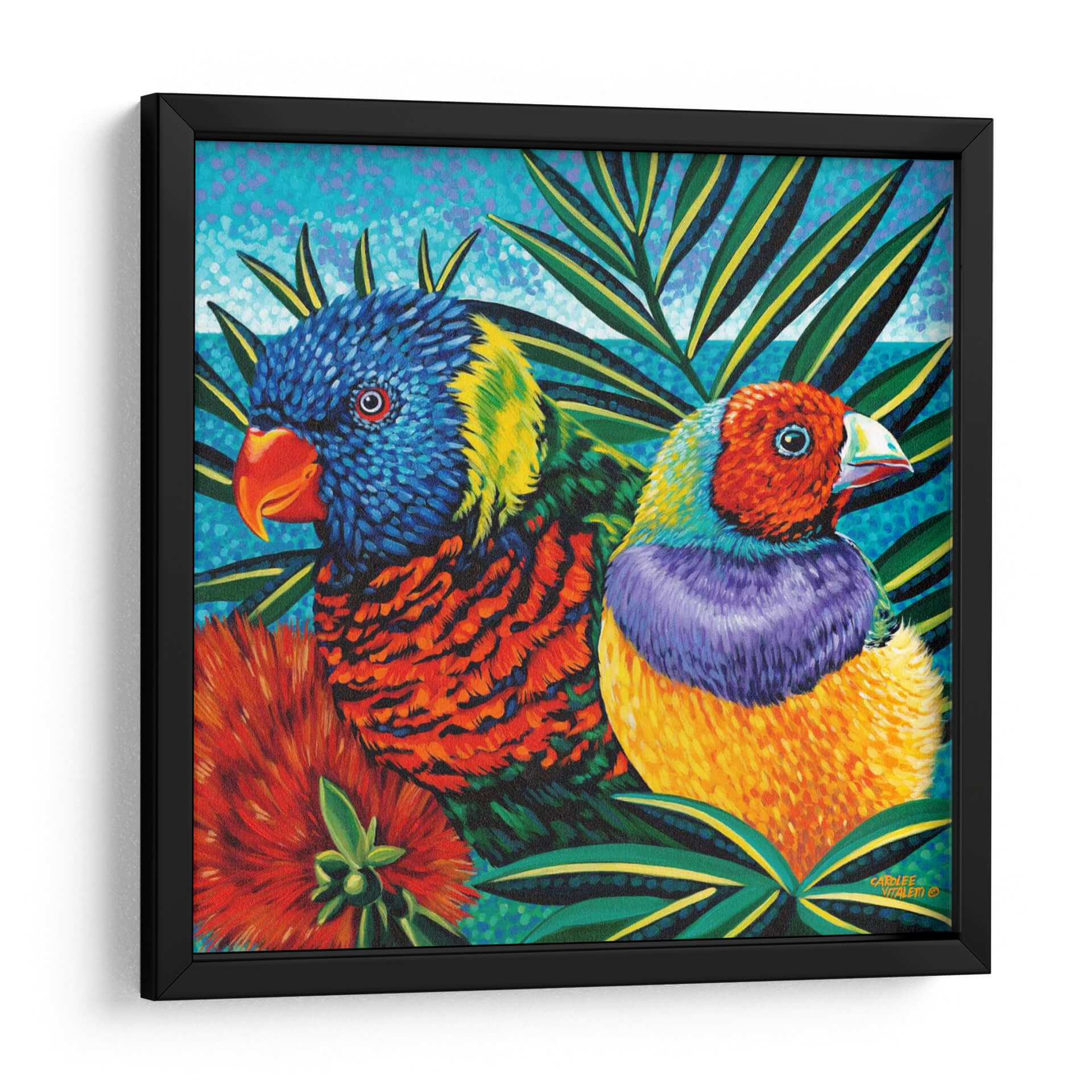Sumérgete en la exuberante belleza de "Pájaros En Paradise Ii" de Carolee Vitaletti, una obra de arte vibrante que captura la esencia de la vida tropical con una explosión de color y detalle. Este cuadro decorativo presenta un primer plano de dos aves exóticas, cuyas plumajes intrincados y llenos de vida se despliegan en un tapiz de azules intensos, naranjas ardientes, verdes esmeralda y púrpuras profundos. La técnica pictórica, caracterizada por pinceladas expresivas y una textura palpable, dota a la obra de una energía palpable, mientras que la composición, dominada por la flora exuberante y un fondo de tonos acuosos, transporta al espectador a un paraíso terrenal. Ideal para quienes buscan infundir alegría y vitalidad en sus espacios, este cuadro decorativo es perfecto para salas de estar, comedores o cualquier rincón que desee una inyección de color y naturaleza. Transforma tu hogar en un santuario de inspiración con esta pieza única que evoca la serenidad y la magnificencia del mundo natural, convirtiéndose en un punto focal cautivador y una conversación garantizada. Descubre la magia de la naturaleza a través de la visión artística de Vitaletti.