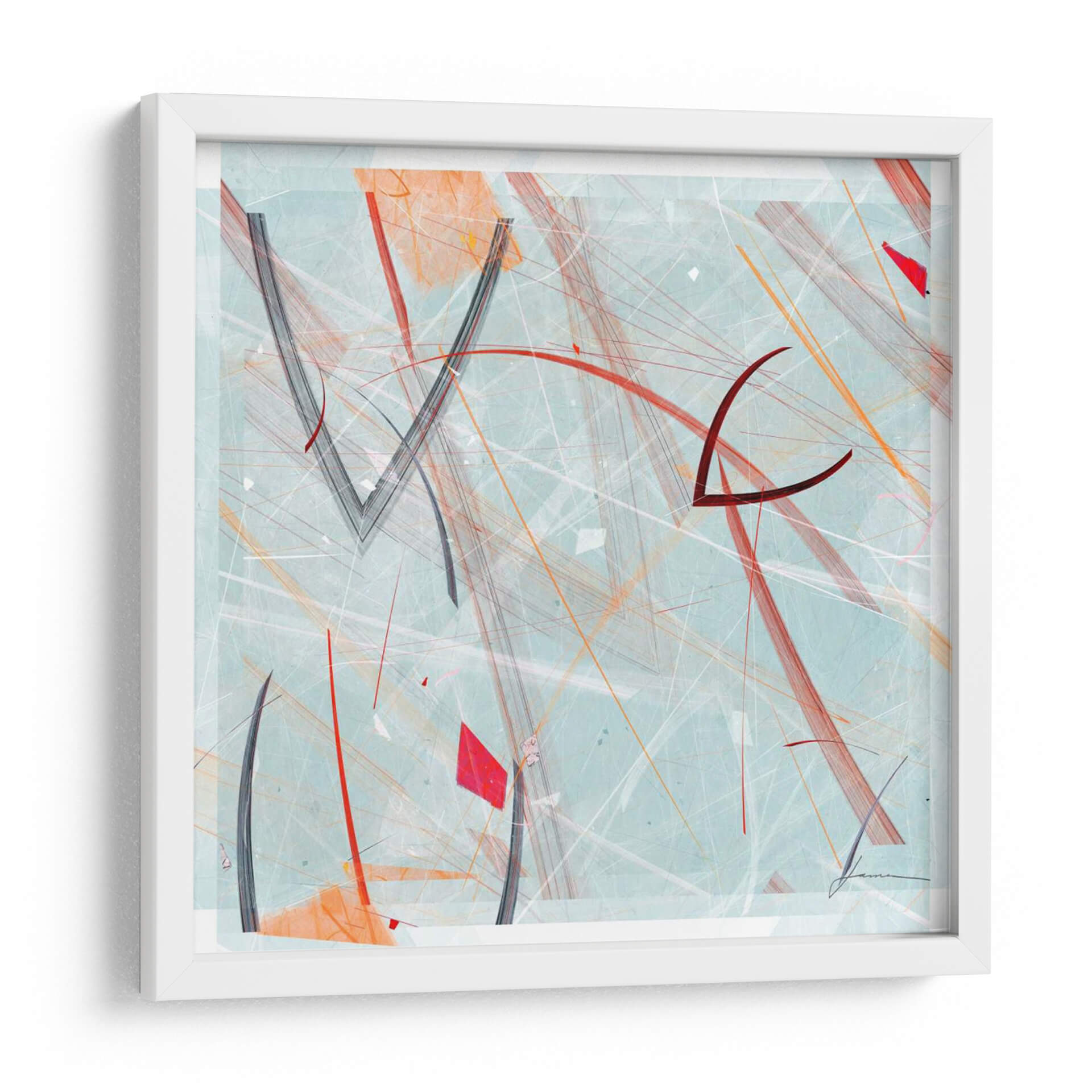 Sumérgete en la vibrante energía de "Panel De Vectores Iii", una obra de arte abstracto del talentoso artista James Burghardt. Este cuadro decorativo digital captura la mirada con su intrincada red de líneas dinámicas y formas geométricas audaces, presentadas sobre un sereno fondo azul claro. Los trazos de color naranja y rojo se entrelazan con grises profundos y blancos nítidos, creando una composición visualmente estimulante que evoca movimiento y profundidad. La delicada textura subyacente añade una capa de sofisticación, invitando a una contemplación más cercana. "Panel De Vectores Iii" es ideal para aquellos que buscan añadir un toque contemporáneo y audaz a su hogar u oficina. Su estilo abstracto lo convierte en una pieza versátil, perfecta para salas de estar modernas, estudios creativos o cualquier espacio que necesite un acento de color y diseño. Este cuadro no solo decora, sino que también inspira conversaciones y refleja una apreciación por el arte moderno y la estética vanguardista. Transforma tu entorno con esta pieza única que equilibra a la perfección la complejidad y la elegancia.