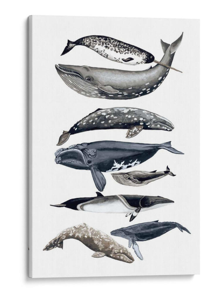 Sumérgete en la majestuosidad del océano con "Pantalla De Ballena Ii" de Naomi McCavitt, una obra de arte que captura la gracia y el poder de estos gigantes marinos. Este cuadro decorativo presenta una colección de ballenas ilustradas con un detalle exquisito, cada una representando diferentes especies y poses, evocando una sensación de asombro y respeto por la vida marina. La paleta de colores, dominada por tonos grises, blancos y negros, crea una atmósfera serena y sofisticada, permitiendo que la obra se integre armoniosamente en una variedad de estilos decorativos. El estilo realista y a la vez artístico de la ilustración añade un toque de elegancia contemporánea. Ideal para salones, dormitorios o estudios, este lienzo decorativo es perfecto para los amantes del mar, la naturaleza o para aquellos que buscan una pieza de conversación única y tranquilizadora. Transforma tu espacio con la serenidad y la imponencia del mundo submarino.