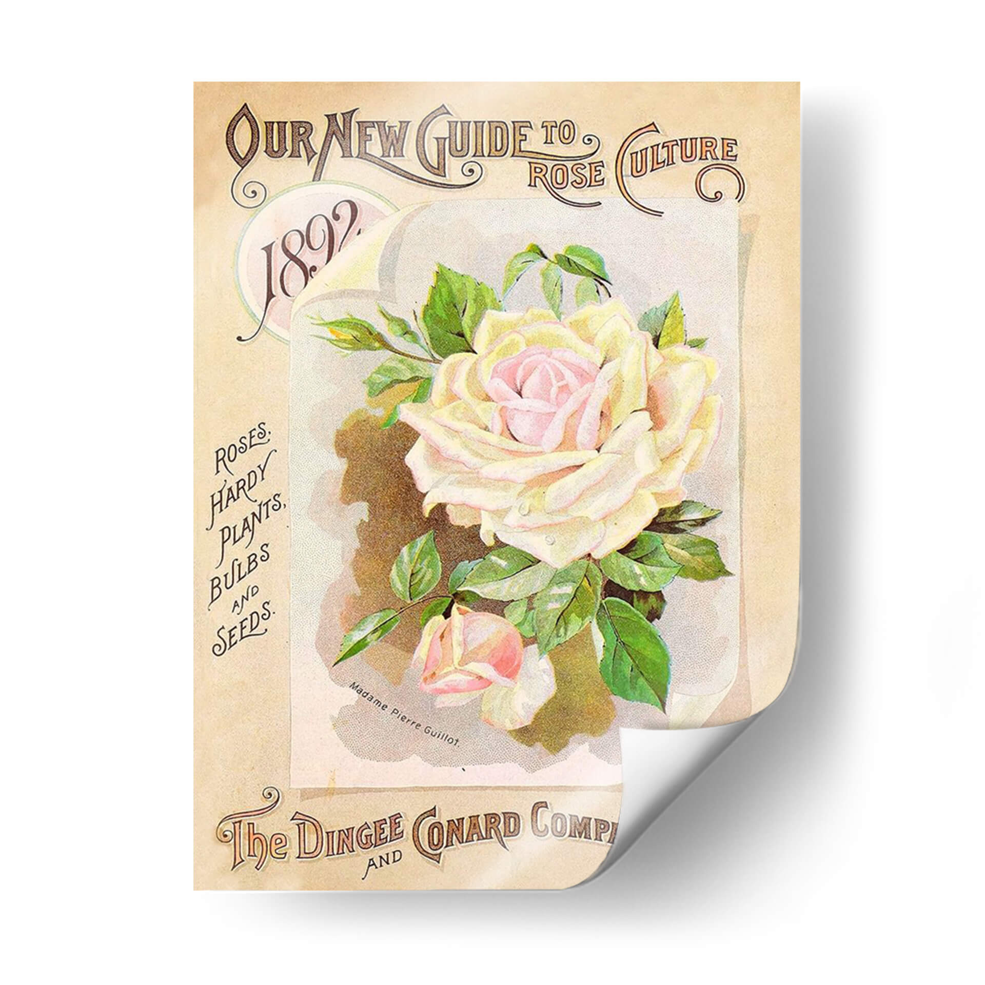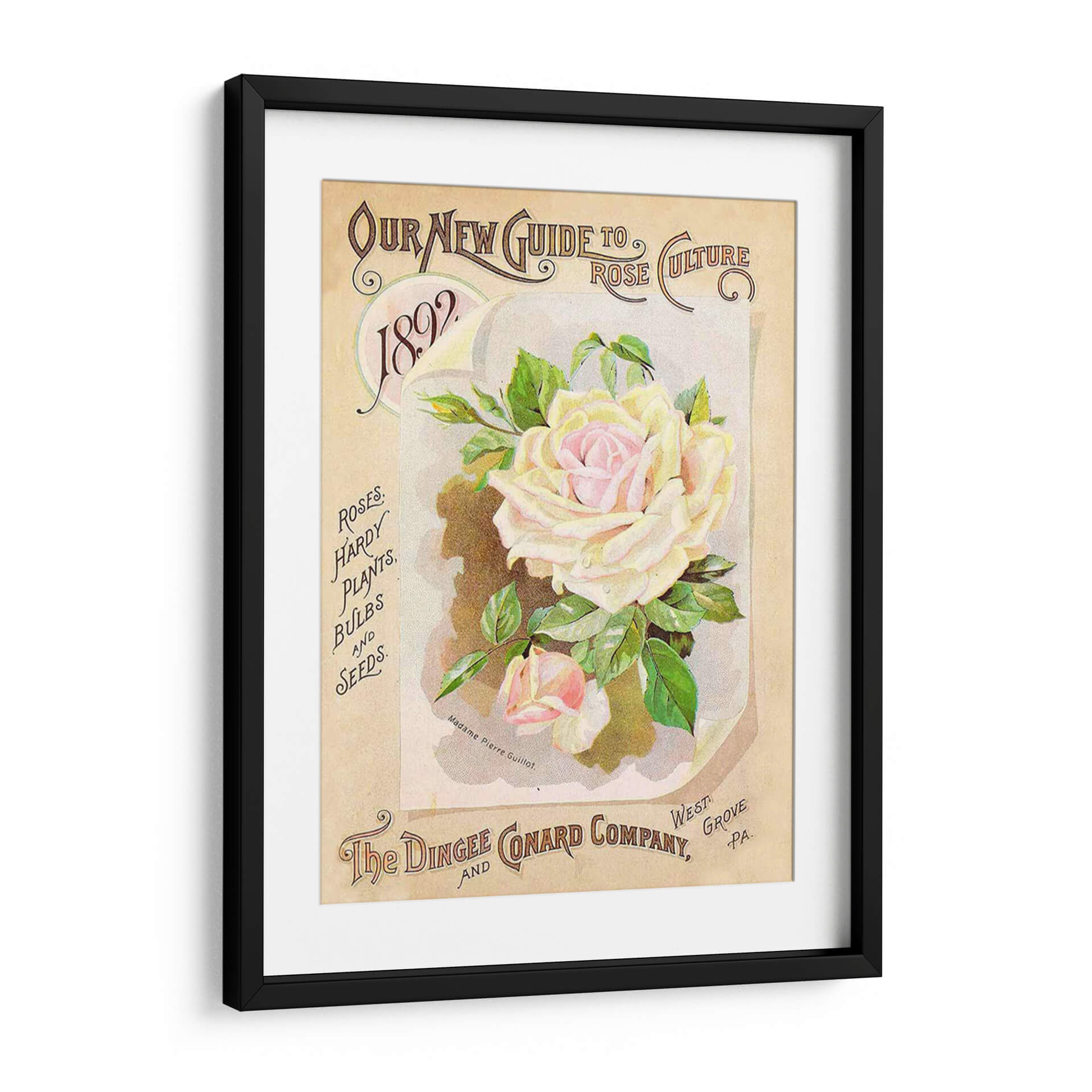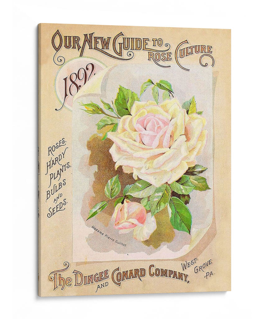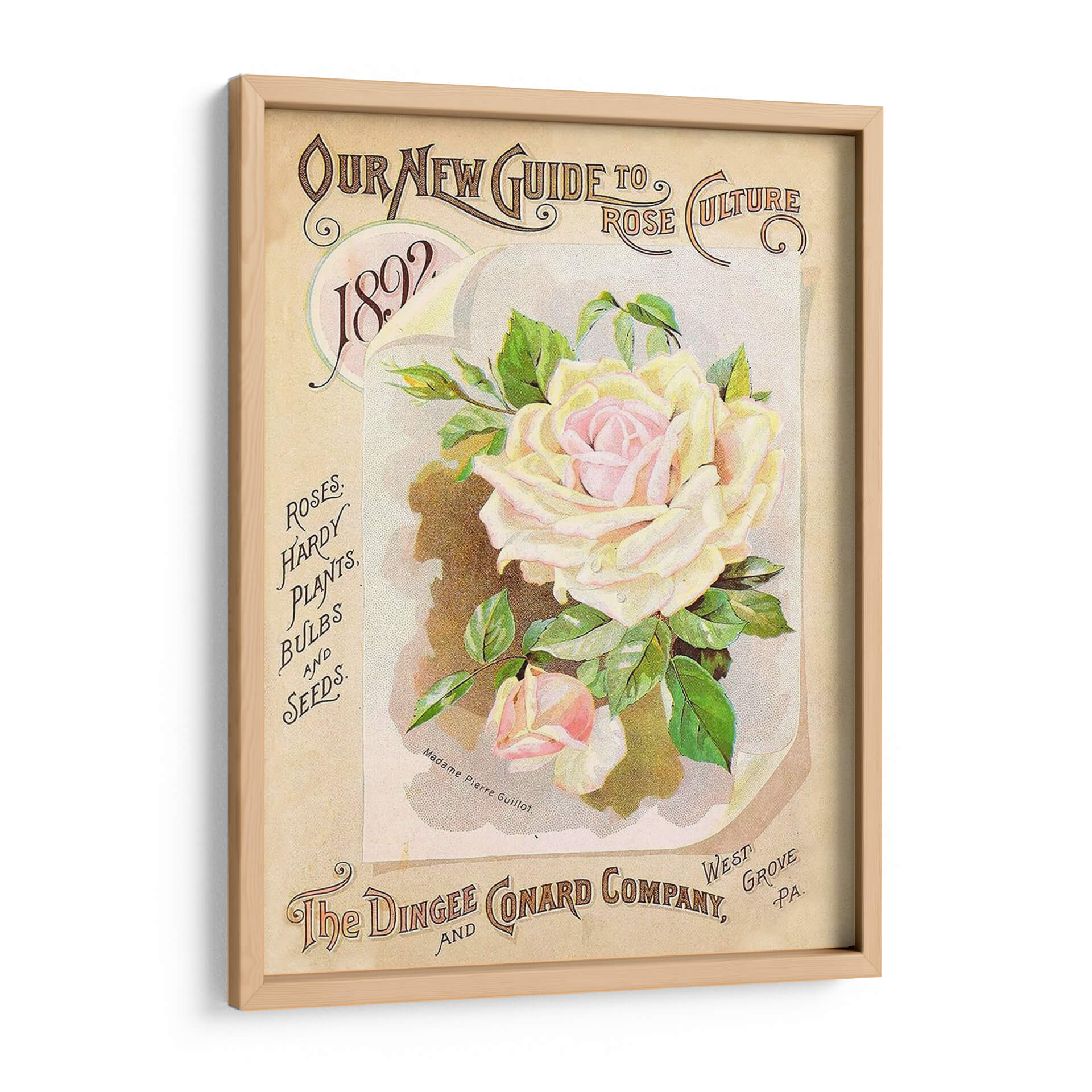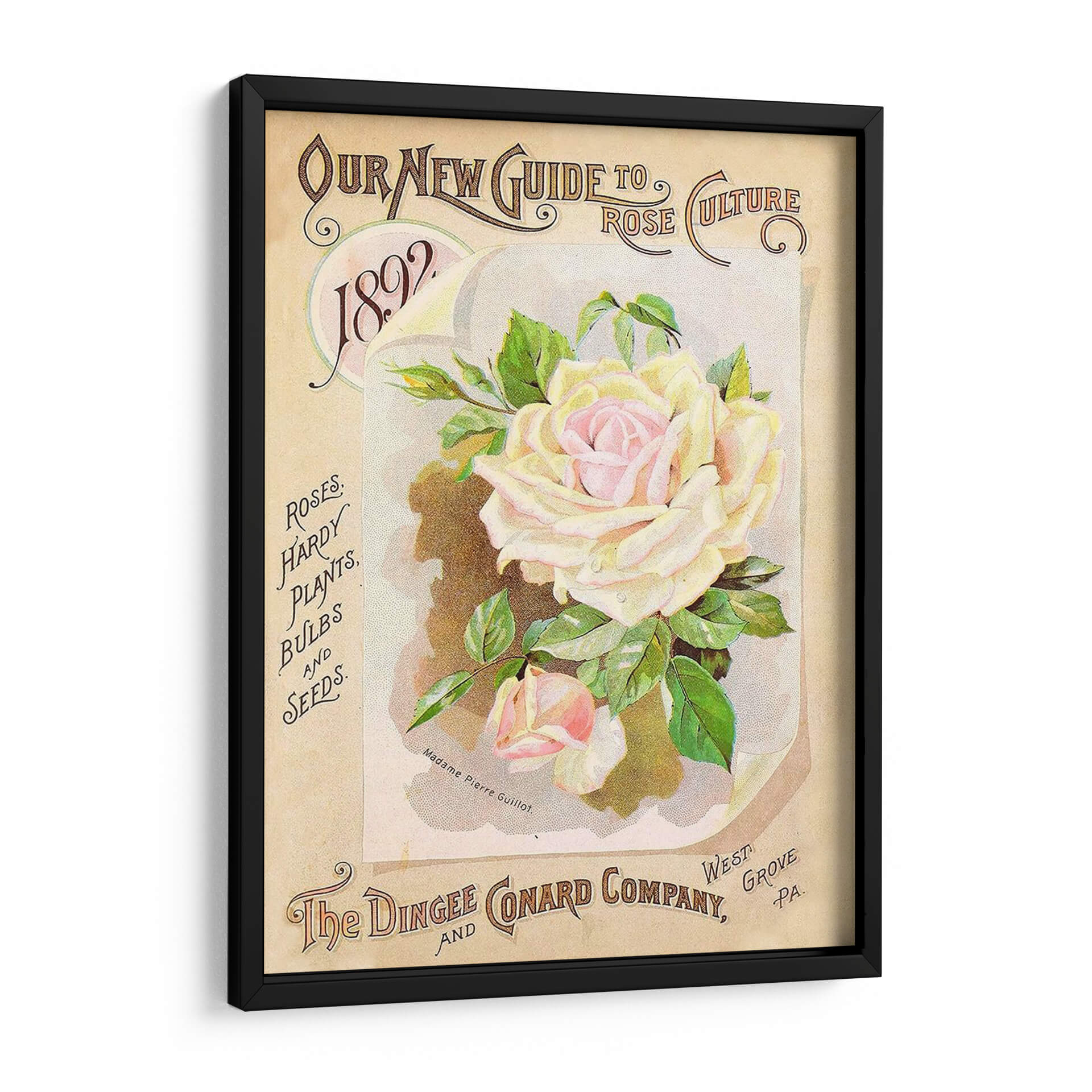 Sumérgete en la delicadeza y el encanto vintage con este exquisito cuadro decorativo inspirado en "Paquetes De Semillas Antiguos Ix". La obra presenta una detallada ilustración de rosas, evocando la nostalgia de los catálogos botánicos del siglo XIX. Los pétalos de la rosa principal despliegan un suave degradado de blanco cremoso a un delicado rosa pálido en su centro, con gotas de rocío que añaden un toque de realismo y frescura. Las hojas verdes, vibrantes y detalladas, enmarcan la flor central, complementadas por un capullo secundario que insinúa el ciclo de la vida y la belleza efímera. El fondo texturizado en tonos sepia y beige, junto con la tipografía antigua que anuncia "Our New Guide to Rose Culture" y "The Dingee Conard Company", transporta al espectador a una época de elegancia botánica y coleccionismo. Este cuadro decorativo es perfecto para quienes buscan añadir un aire de sofisticación clásica y un toque de naturaleza atemporal a su hogar u oficina. Ideal para espacios que buscan calidez, como salones, estudios o incluso dormitorios, aportando una sensación de tranquilidad y aprecio por la botánica.