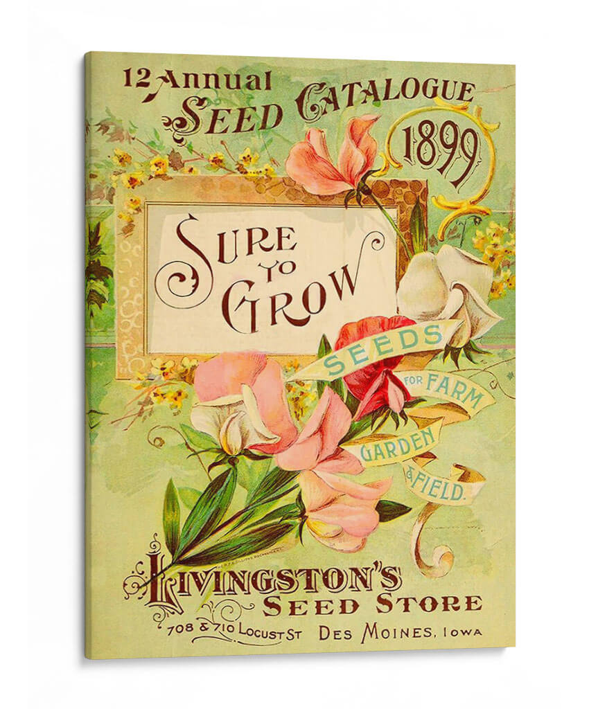 Sumérgete en la nostalgia y la belleza botánica con este evocador cuadro decorativo, "Paquetes De Semillas Antiguos Viii". Esta obra, inspirada en los catálogos de semillas de finales del siglo XIX, captura la esencia de una época pasada con un encanto rústico y elegante. La composición presenta delicadas flores de guisante en tonos pastel de rosa y blanco, entrelazadas con follaje verde vibrante y detalles ornamentales que evocan la gráfica vintage. El texto central "Sure to Grow" y "Seeds for Farm Garden & Field" junto a la fecha "1899" y el nombre "Livingston's Seed Store" añaden un toque histórico y auténtico. La paleta de colores, dominada por verdes suaves, rosas delicados y toques de amarillo, crea una atmósfera serena y acogedora, perfecta para añadir un aire de tranquilidad campestre a cualquier rincón de tu hogar u oficina. Este cuadro decorativo es ideal para espacios que buscan un toque de historia, naturaleza y estilo retro, aportando calidez y carácter.