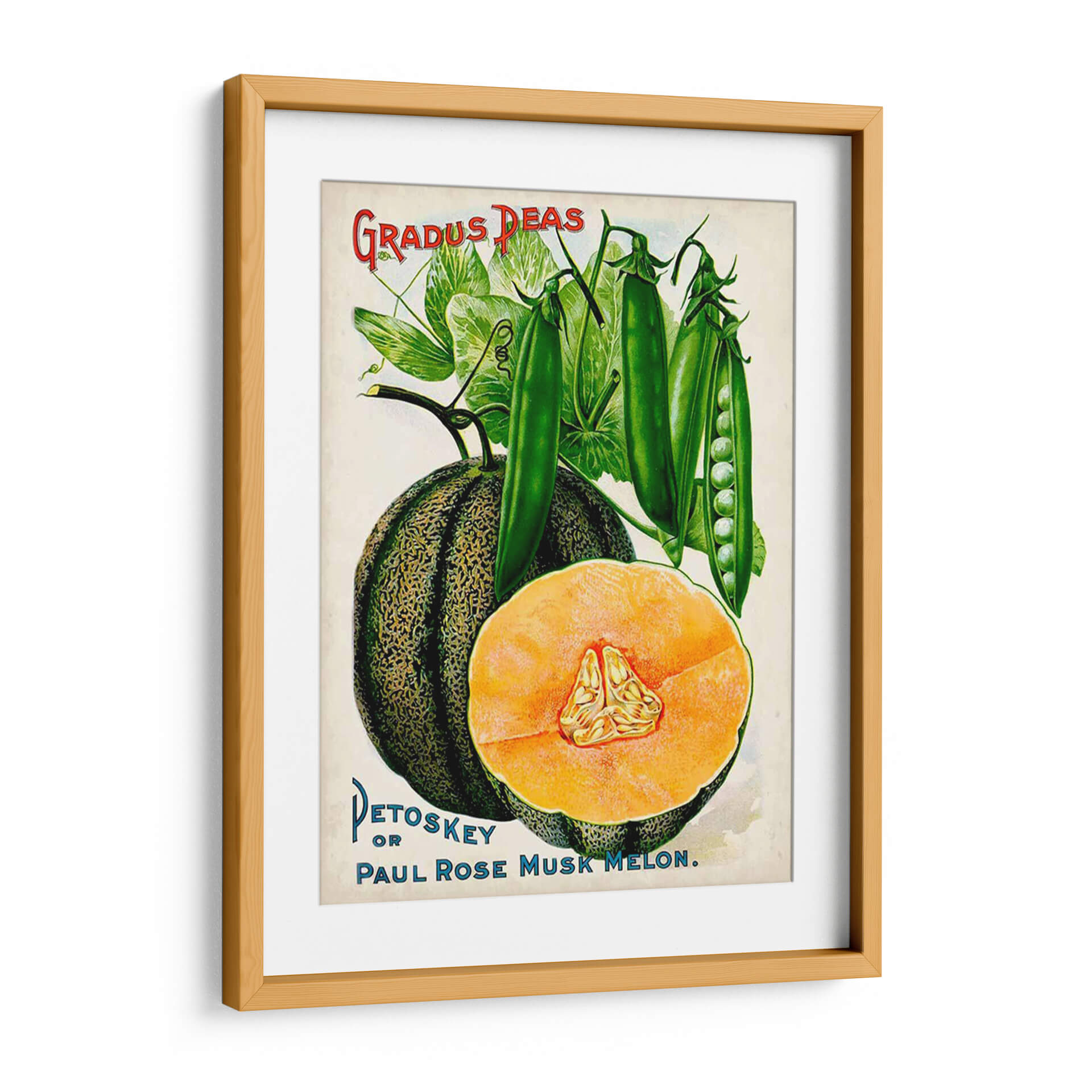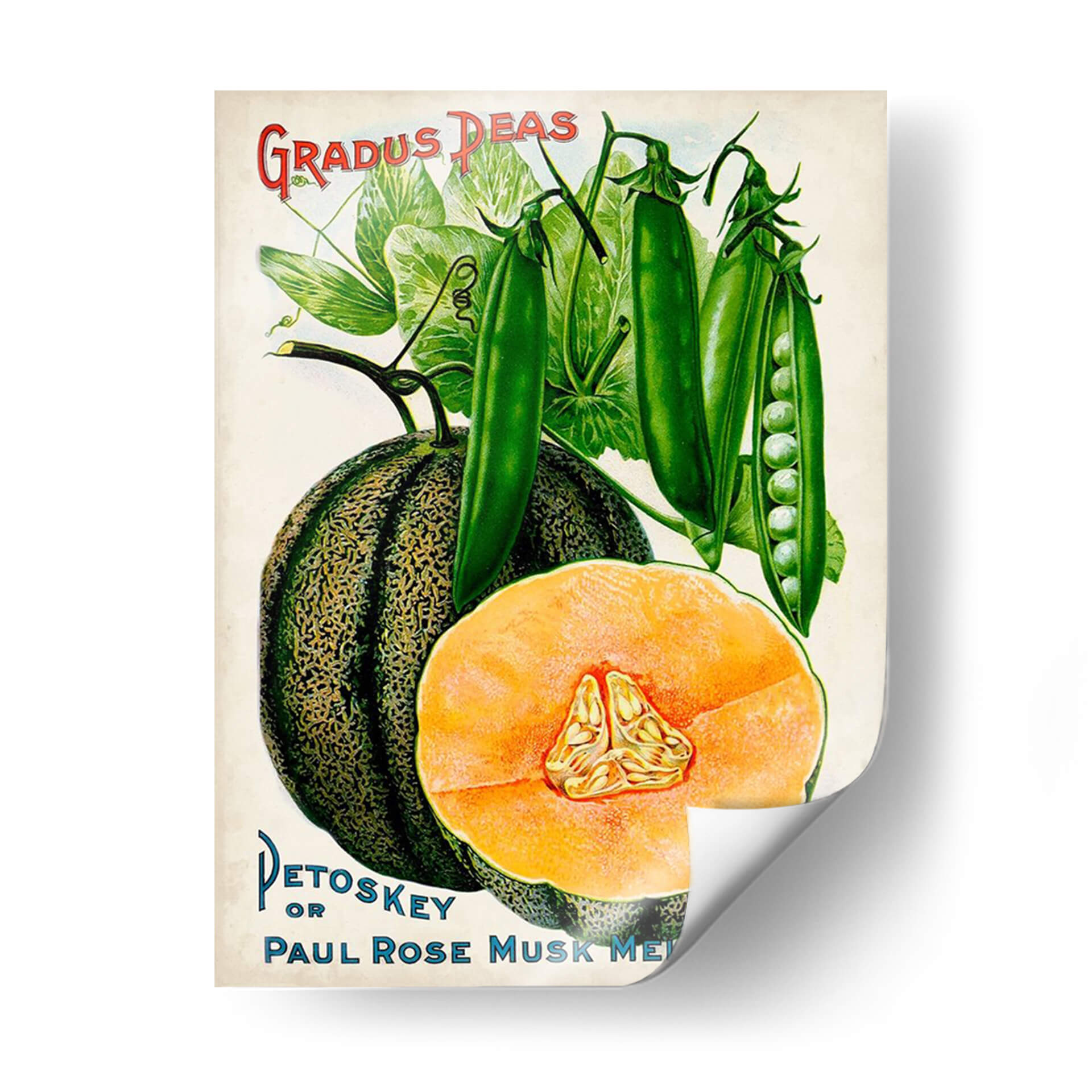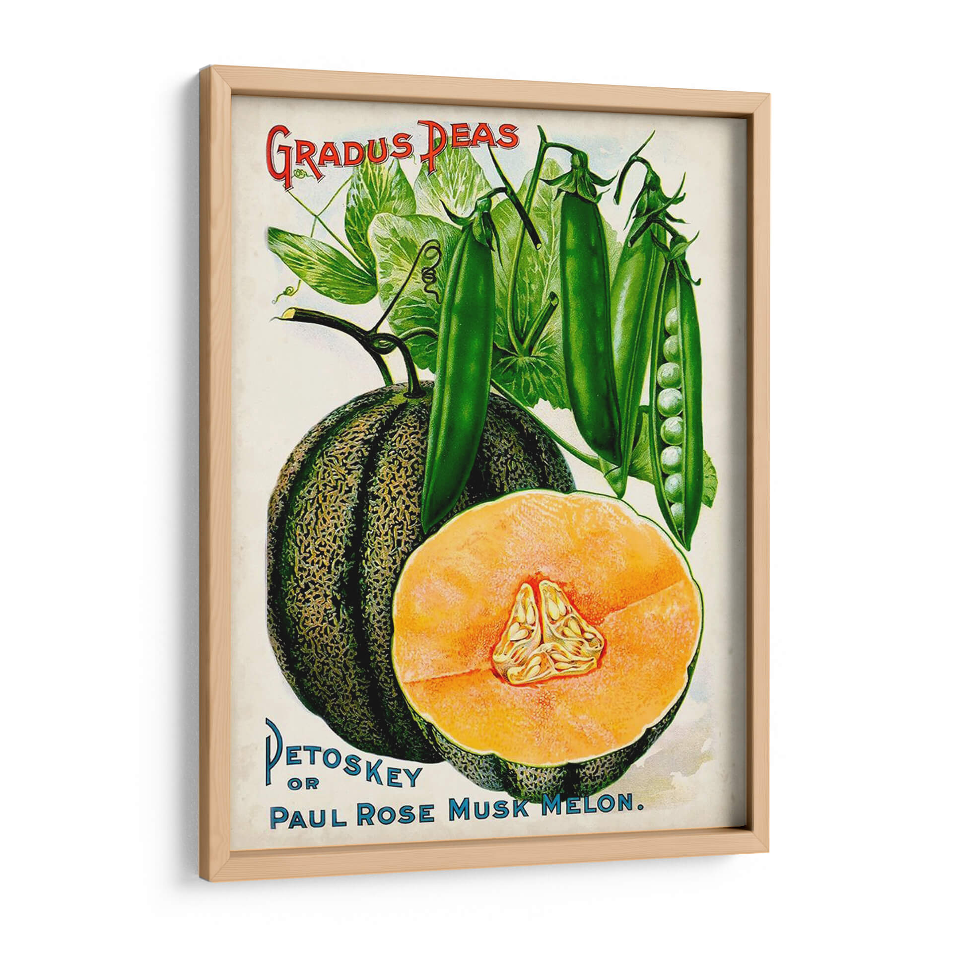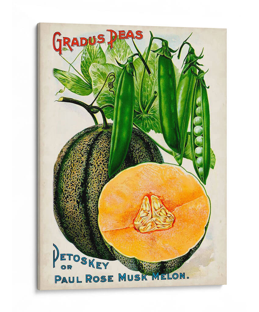 Embellece tu espacio con este encantador cuadro decorativo que presenta una vibrante ilustración de "Paquetes De Semillas Antiguos X". La obra captura la esencia de la naturaleza y la agricultura con un estilo vintage que evoca nostalgia y aprecio por los detalles botánicos. Dominan los verdes intensos de las vainas de guisantes y el follaje exuberante, contrastando bellamente con el tono anaranjado y la textura detallada de un melón cortado, revelando su pulpa jugosa y semillas. La composición, con su estética de anuncio antiguo de semillas, aporta un toque retro y auténtico, ideal para cocinas, comedores o cualquier rincón que necesite un acento de frescura y color. Este cuadro decorativo es perfecto para amantes de la jardinería, la botánica o simplemente para aquellos que aprecian el arte con un carácter histórico y naturalista. Añade un toque de encanto rústico y un recordatorio de la abundancia de la tierra a tu hogar u oficina. Es una pieza que invita a la contemplación y celebra la belleza sencilla de los productos de la huerta.