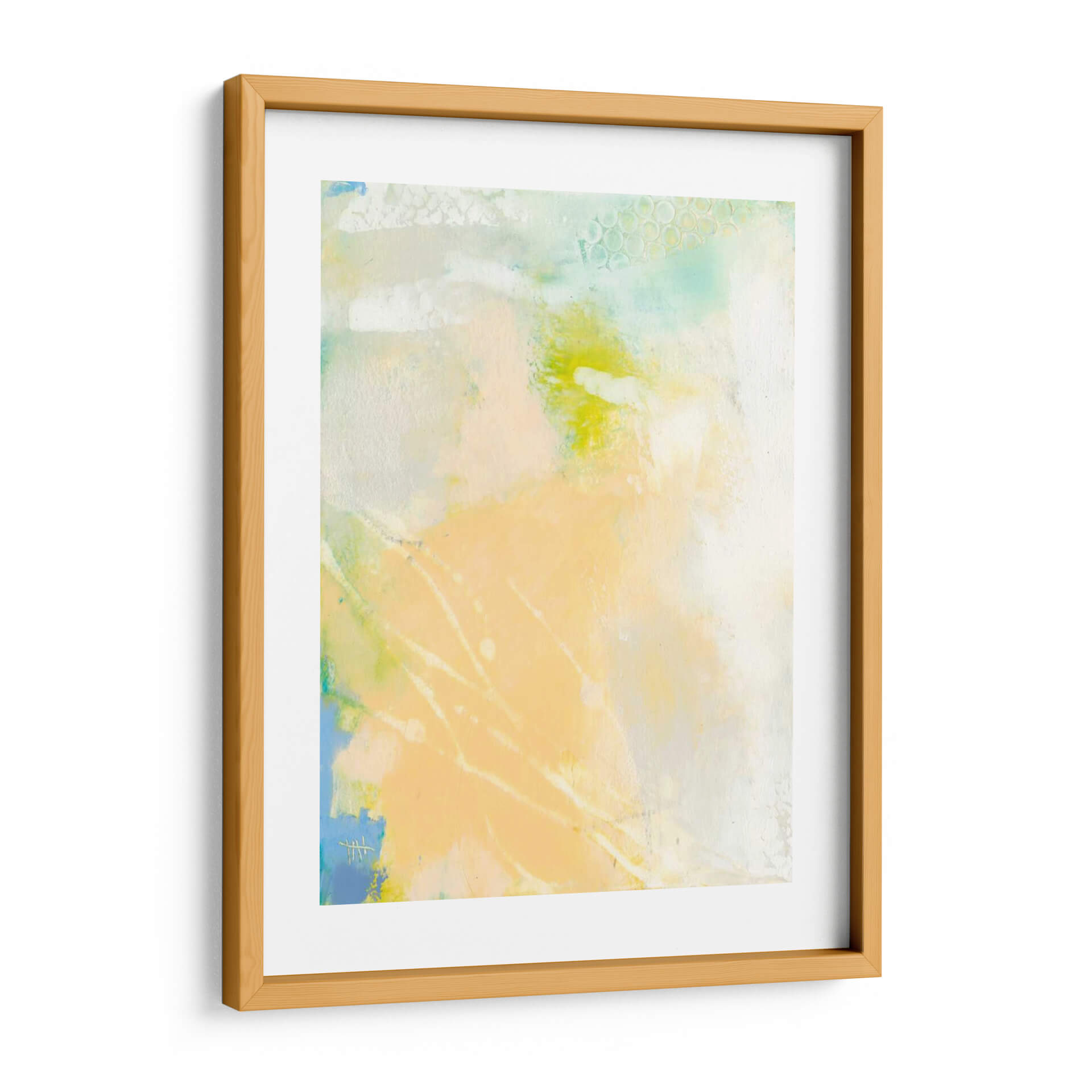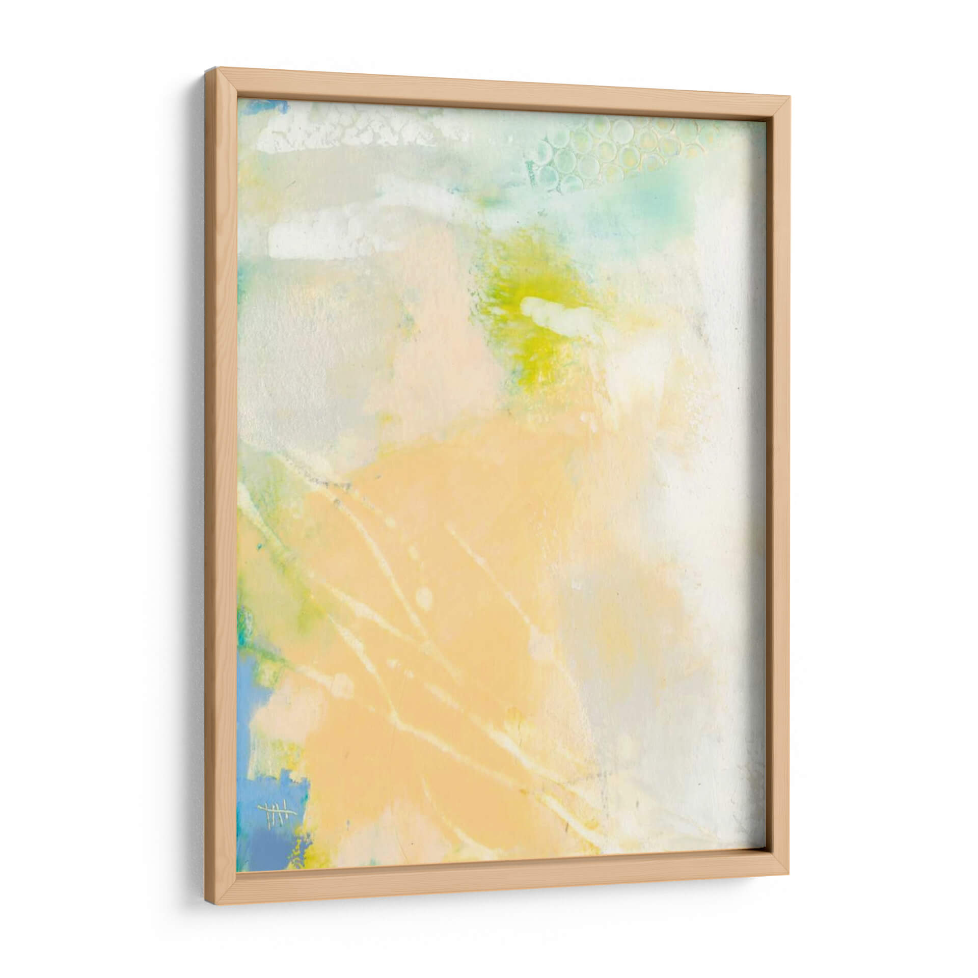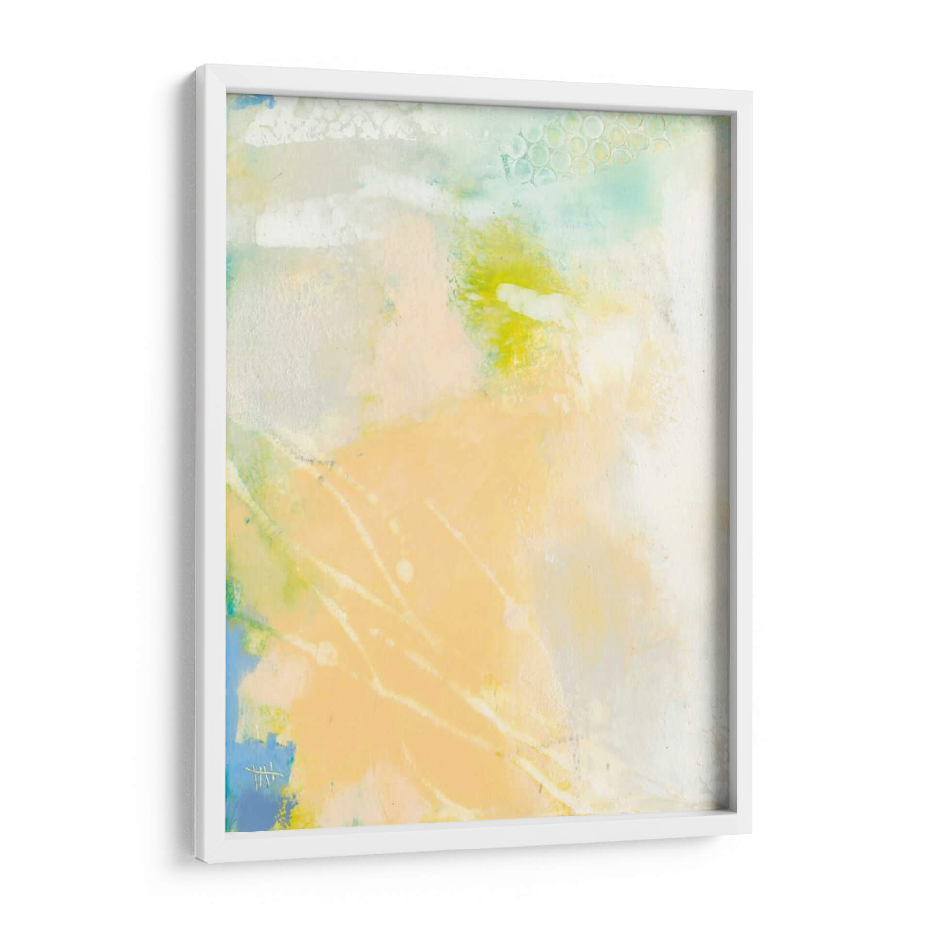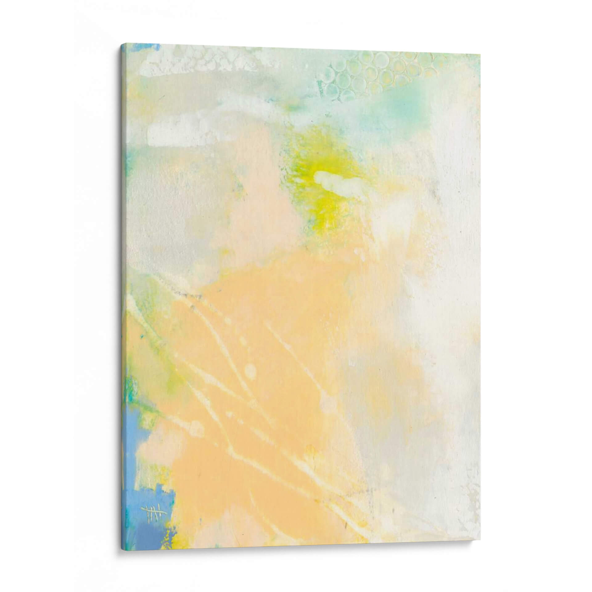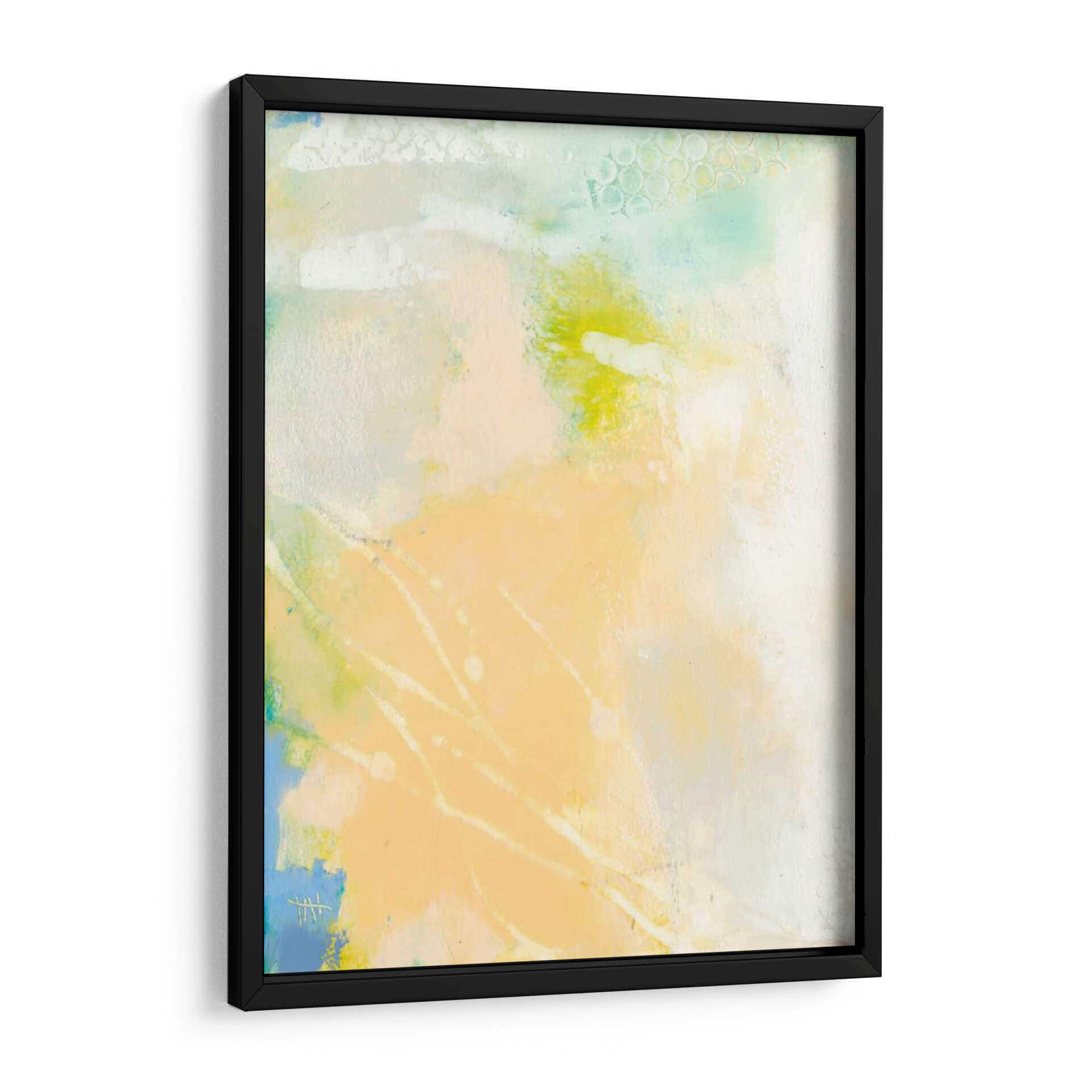 Sumérgete en la serenidad etérea de "Pastel Lux I", una obra de arte abstracta que irradia calma y sofisticación. Esta pieza, creada por la talentosa artista Sue Jachimiec, es una sinfonía de tonos pastel suaves, donde pinceladas delicadas se entrelazan con formas orgánicas y texturas sutiles. Predominan los tonos melocotón y amarillo pálido, bañados por toques de azul cielo y verde menta, creando una atmósfera luminosa y aireada que evoca la ligereza de un amanecer o la suavidad de una brisa marina. La composición fluida y los elementos abstractos invitan a la contemplación, permitiendo que cada espectador interprete su propia narrativa. "Pastel Lux I" es ideal para quienes buscan infundir un aire de tranquilidad y elegancia contemporánea en su hogar u oficina. Este cuadro decorativo es perfecto para espacios que necesitan un toque de sutileza y refinamiento, como un dormitorio sereno, un salón acogedor o un estudio tranquilo. Su estilo abstracto moderno lo convierte en un complemento versátil para diversas decoraciones, desde minimalistas hasta bohemias. Añade esta pieza única a tu colección y transforma tu pared en un lienzo de paz y belleza.