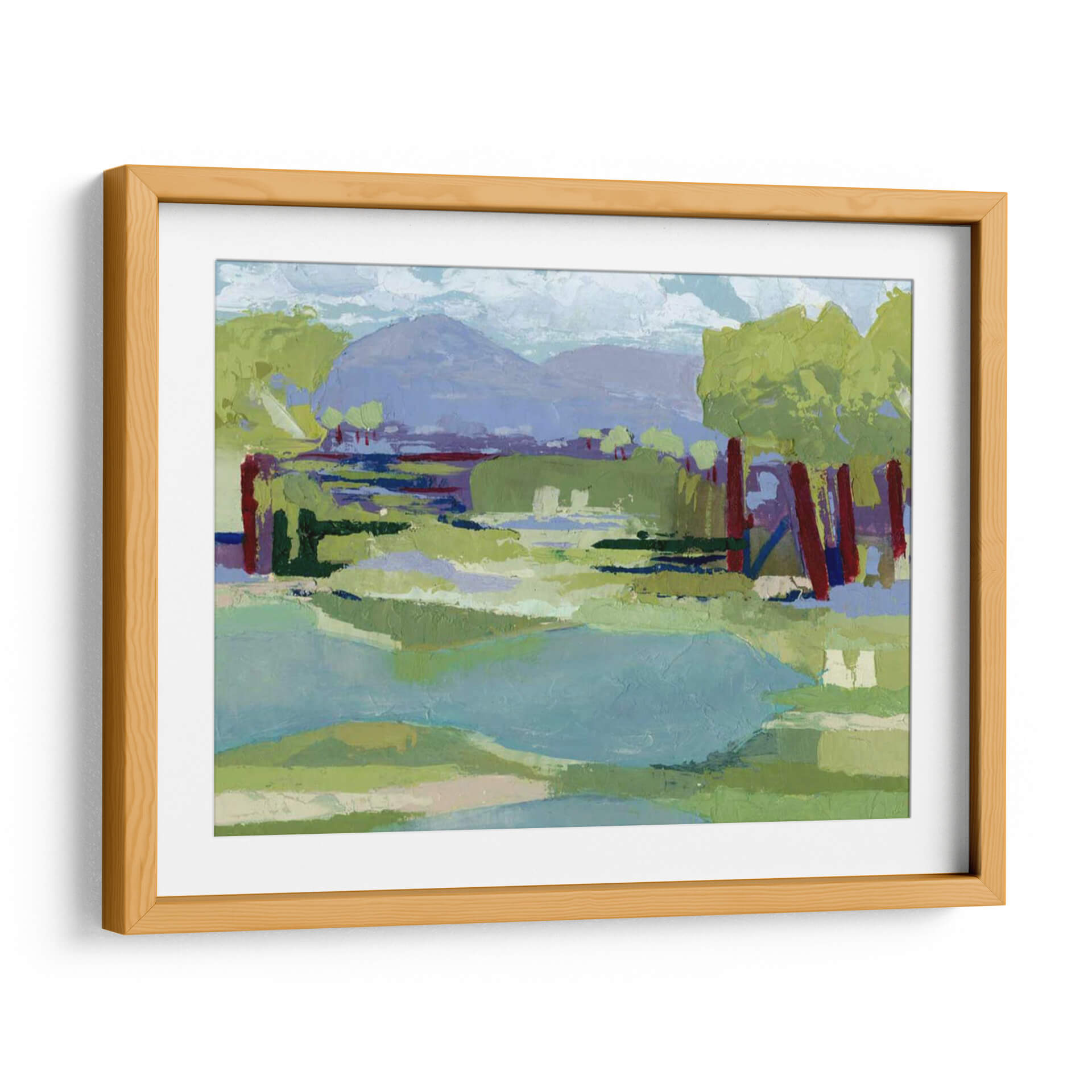 Sumérgete en la serena belleza de "Pastel Marsh Ii" de Grace Popp, una obra de arte contemporáneo que evoca la tranquilidad de un paisaje de humedal. Esta cautivadora pieza presenta una composición impresionista de formas y colores vibrantes, donde verdes exuberantes, azules serenos y tonos pastel se entrelazan para crear una atmósfera pacífica. Las pinceladas expresivas capturan la esencia de la naturaleza, desde las suaves colinas y montañas distantes hasta el reflejo del agua en primer plano. El estilo abstracto y la paleta de colores cuidadosamente seleccionada hacen de este cuadro decorativo una adición versátil para cualquier espacio, aportando un toque de sofisticación y calma. Ideal para salones, dormitorios u oficinas que buscan infundir una sensación de armonía y conexión con el entorno natural. "Pastel Marsh Ii" no es solo una pieza de arte, es una invitación a la contemplación y al disfrute de la belleza efímera del paisaje.