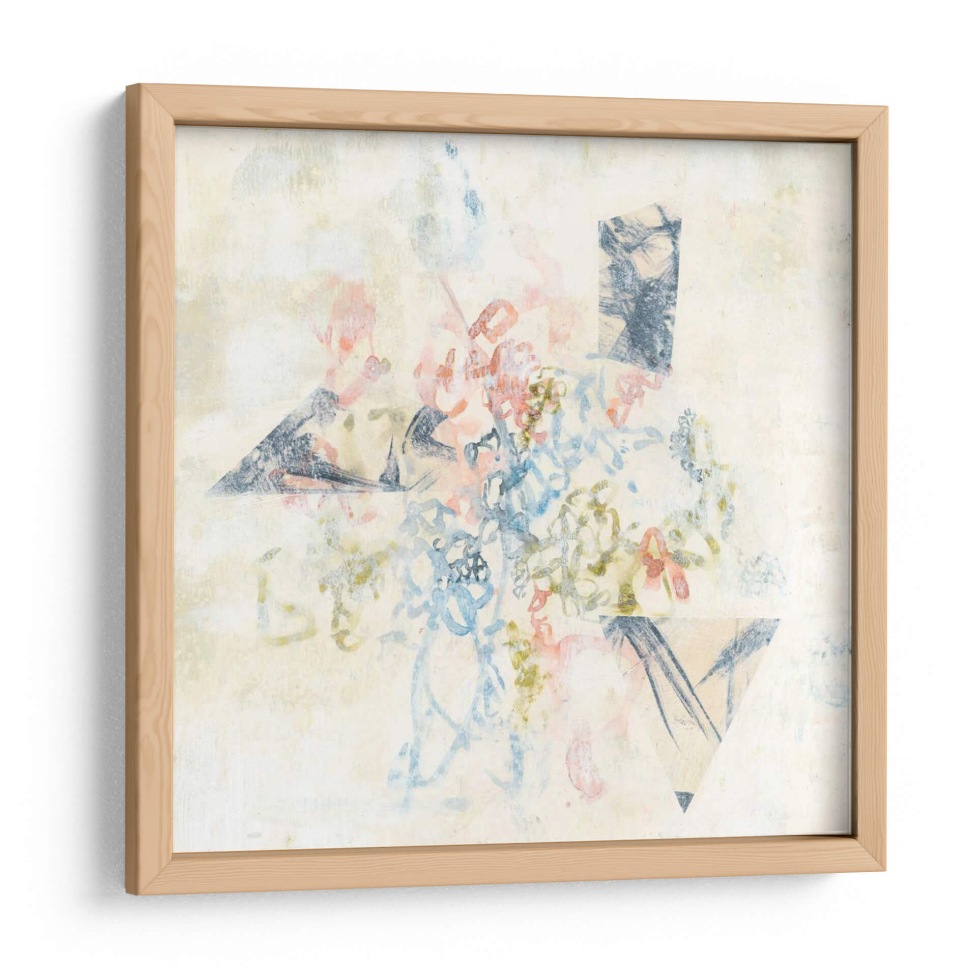 Sumérgete en la delicadeza y el encanto de "Pastel Scribble II" de Jennifer Goldberger, un cuadro decorativo abstracto que evoca una sensación de ensueño y creatividad. Esta obra captura la mirada con su paleta de colores suaves, donde predominan los tonos pastel de rosa, azul y amarillo pálido, salpicados con toques de gris y blanco roto. Las líneas fluidas y gestuales se entrelazan con formas geométricas sutiles, como un triángulo y un rectángulo sombreado, creando una composición dinámica pero serena. La técnica de "scribble" o garabato, ejecutada con una aparente espontaneidad, aporta una textura visual intrigante y una profundidad emocional que invita a la contemplación. Es una pieza ideal para añadir un toque de sofisticación artística y tranquilidad a cualquier espacio, desde una sala de estar moderna hasta un estudio creativo o un dormitorio acogedor. "Pastel Scribble II" no es solo una decoración, sino una invitación a interpretar y sentir, perfecta para quienes buscan arte contemporáneo que inspire y conecte.