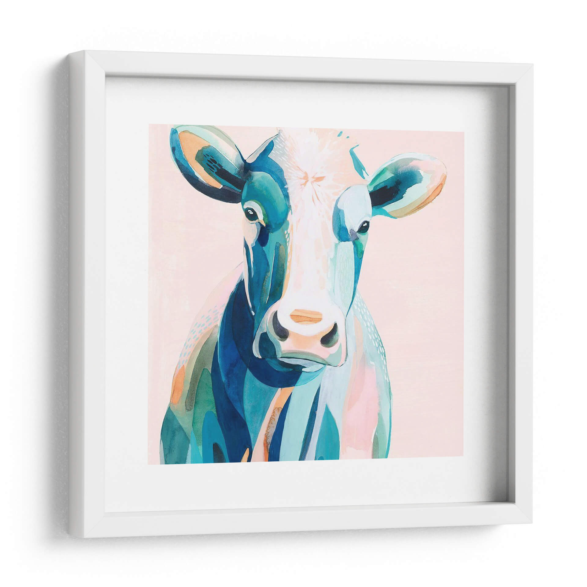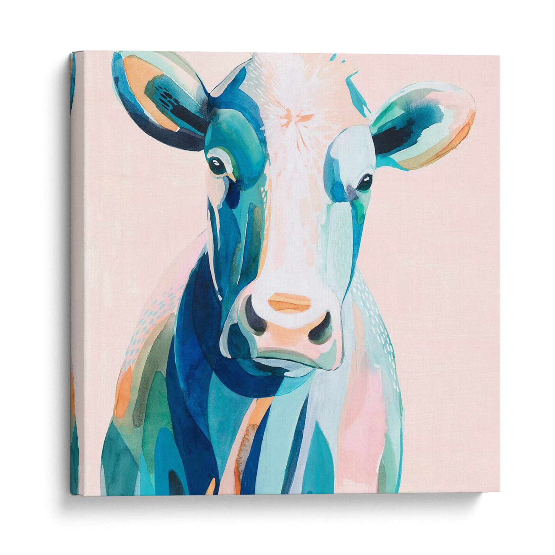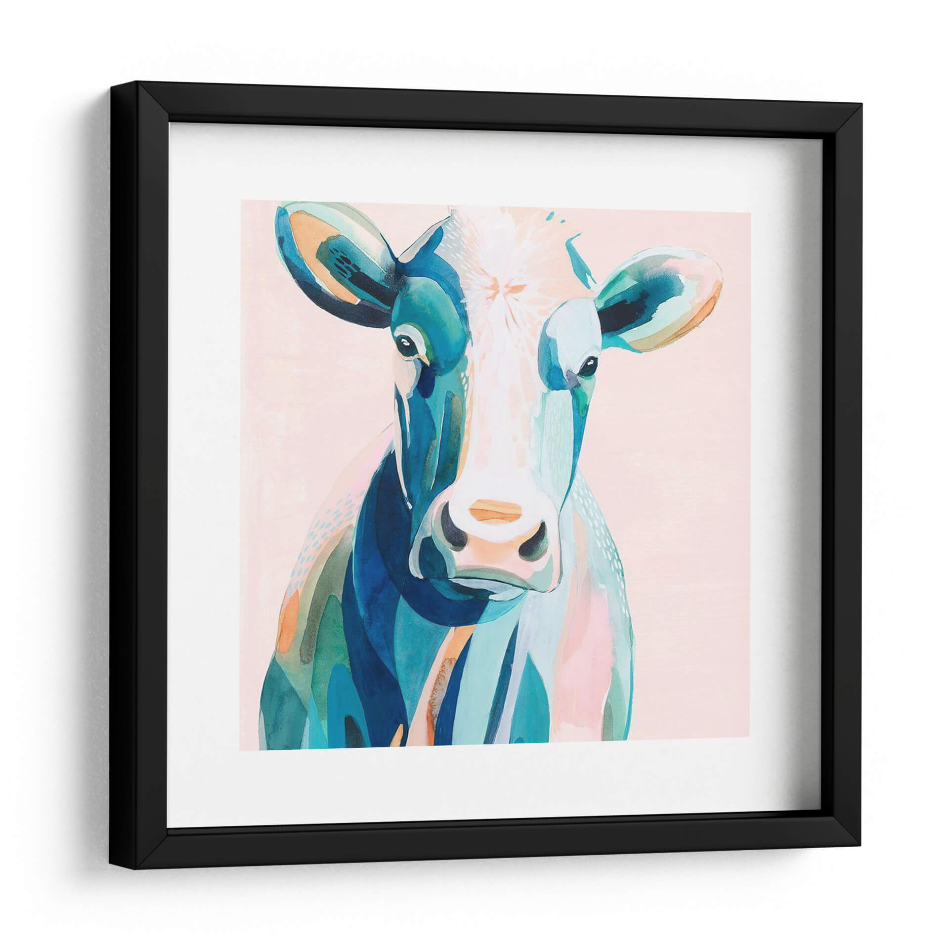 Embellece tu hogar con "Pasto Pastel I", una cautivadora obra de arte digital de la talentosa artista Grace Popp. Esta pieza representa un retrato estilizado de una vaca, ejecutado con pinceladas sueltas y una vibrante paleta de colores que fusiona tonos fríos de azul y verde con suaves toques de rosa pastel y naranja. La composición se centra en el rostro del animal, creando una conexión íntima con el espectador. El estilo abstracto moderno, con sus formas fluidas y la delicada textura del fondo, confiere a la obra una atmósfera de serenidad y originalidad. "Pasto Pastel I" es perfecta para añadir un toque de color y personalidad a cualquier espacio, desde una sala de estar contemporánea hasta un dormitorio acogedor o una cocina de estilo rústico chic. Su versatilidad cromática la hace ideal para complementar decoraciones modernas, bohemias o incluso escandinavas. Descubre la belleza de este cuadro decorativo y transforma tu ambiente con una pieza que combina la ternura de la figura representada con la audacia de la expresión artística de Grace Popp, convirtiéndose en un punto focal lleno de encanto y carácter.