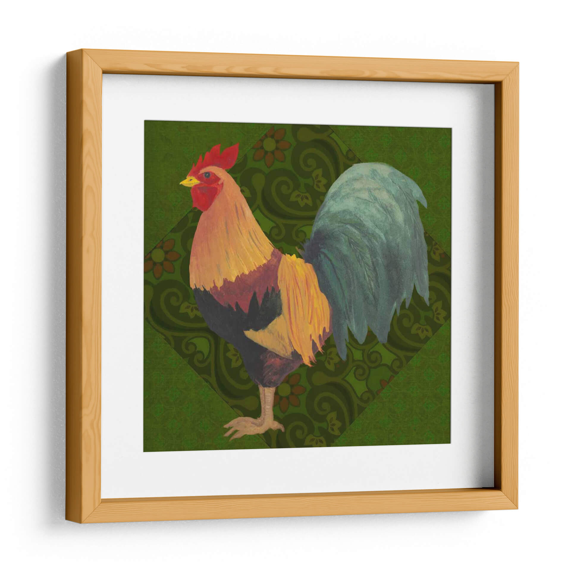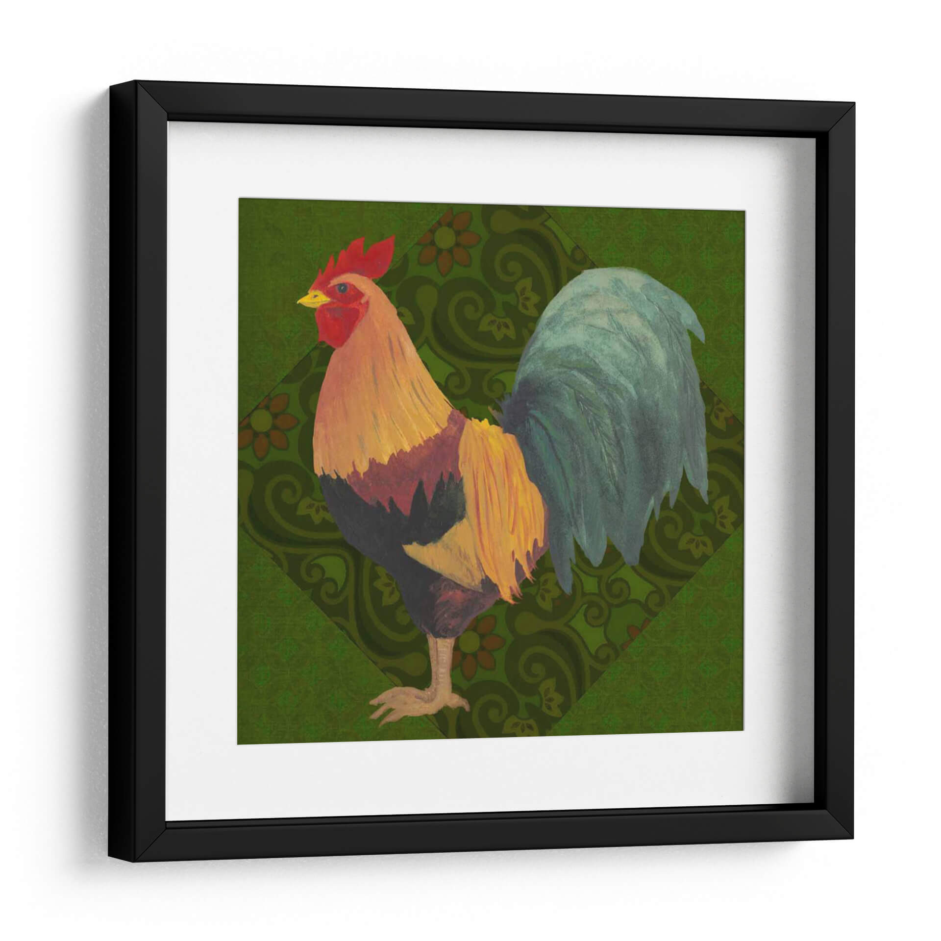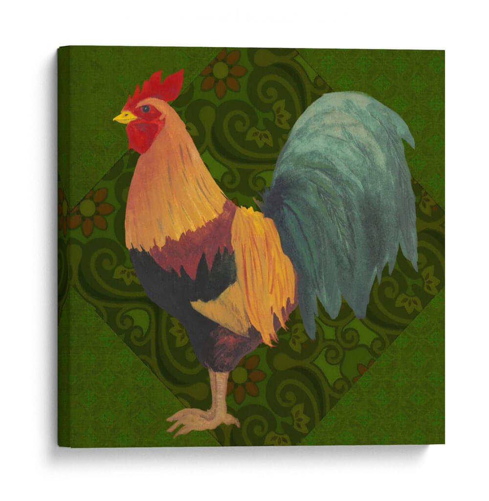 Aporta un toque de color y vitalidad a tu hogar con "Patio Pájaro Ii", una obra de arte exquisita del artista Grace Popp. Este cuadro decorativo presenta un gallo vibrante, capturado en todo su esplendor con plumas detalladas en tonos dorados, rojos intensos y verdes profundos. El fondo, adornado con un patrón geométrico sutil de inspiración botánica en un verde exuberante, complementa a la perfección la figura central, creando una composición visualmente rica y armoniosa. El estilo artístico, que combina elementos de la ilustración clásica con un toque contemporáneo, evoca una sensación de encanto rústico y sofisticación natural. La obra irradia una energía positiva y una conexión con la naturaleza, lo que la convierte en una pieza ideal para dar vida a cualquier espacio. Ya sea que busques añadir un acento audaz a tu sala de estar, un punto de interés en tu comedor, o un toque de carácter a tu oficina, "Patio Pájaro Ii" es la elección perfecta para aquellos que aprecian la belleza de la fauna y el arte con personalidad. Descubre cómo este cuadro puede transformar tu ambiente.