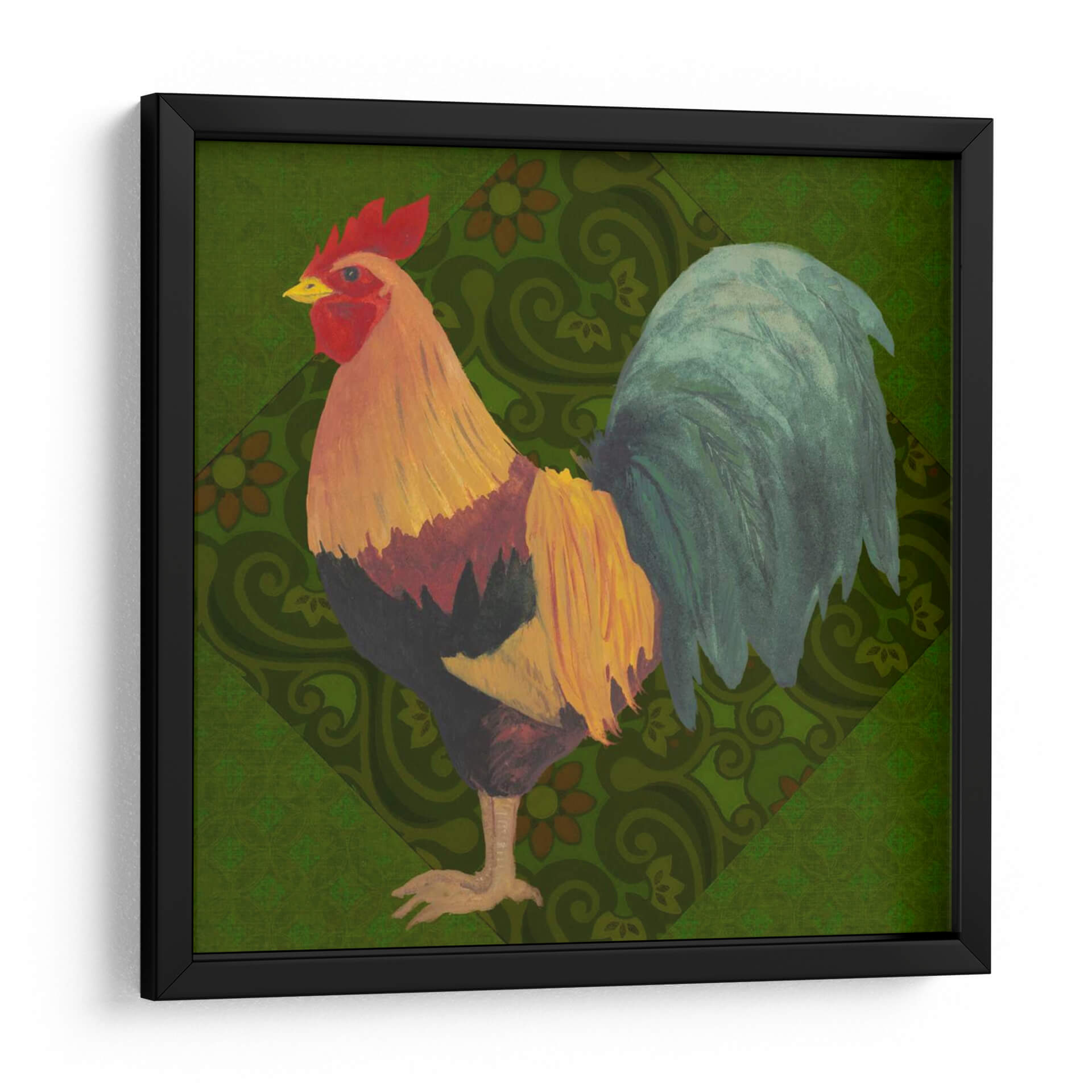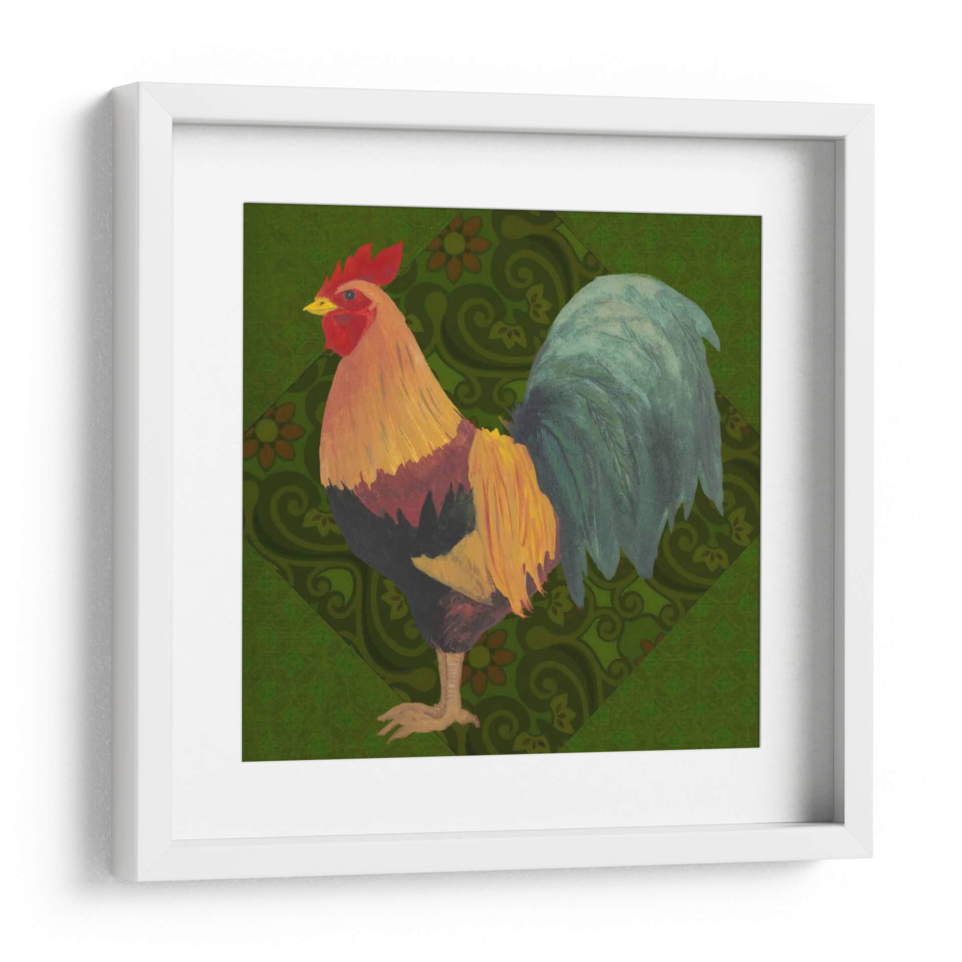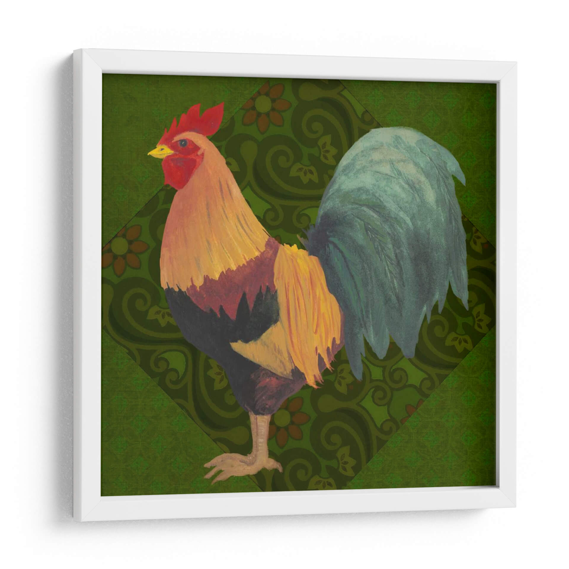 Aporta un toque de color y vitalidad a tu hogar con "Patio Pájaro Ii", una obra de arte exquisita del artista Grace Popp. Este cuadro decorativo presenta un gallo vibrante, capturado en todo su esplendor con plumas detalladas en tonos dorados, rojos intensos y verdes profundos. El fondo, adornado con un patrón geométrico sutil de inspiración botánica en un verde exuberante, complementa a la perfección la figura central, creando una composición visualmente rica y armoniosa. El estilo artístico, que combina elementos de la ilustración clásica con un toque contemporáneo, evoca una sensación de encanto rústico y sofisticación natural. La obra irradia una energía positiva y una conexión con la naturaleza, lo que la convierte en una pieza ideal para dar vida a cualquier espacio. Ya sea que busques añadir un acento audaz a tu sala de estar, un punto de interés en tu comedor, o un toque de carácter a tu oficina, "Patio Pájaro Ii" es la elección perfecta para aquellos que aprecian la belleza de la fauna y el arte con personalidad. Descubre cómo este cuadro puede transformar tu ambiente.