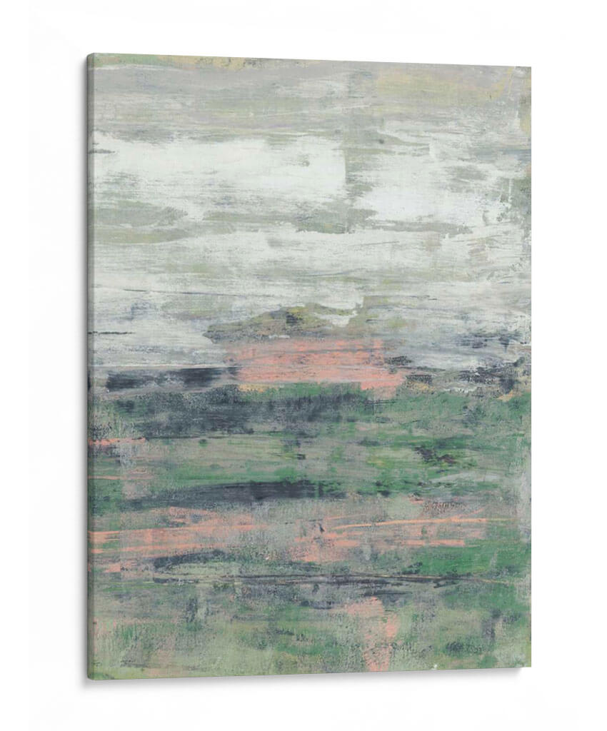 Sumérgete en la serena belleza de "Paynes Blush II", una obra de arte abstracta de Jennifer Goldberger que evoca la tranquilidad de un paisaje etéreo. Las capas de pintura texturizada crean una profundidad visual cautivadora, con pinceladas horizontales que sugieren la calma de la naturaleza al amanecer o al atardecer. La paleta de colores, dominada por suaves tonos verdes, grises y toques de un delicado rubor rosado, infunde una atmósfera de paz y contemplación. Esta pieza es ideal para transformar cualquier espacio en un santuario personal, aportando sofisticación y un toque de color sutil pero significativo. Perfecta para decorar salones, dormitorios o estudios, este cuadro decorativo abstracto se integra armoniosamente con estilos de decoración modernos, minimalistas o bohemios, invitando a la reflexión y al bienestar. "Paynes Blush II" no es solo una obra de arte, es una invitación a la calma y a la conexión con la belleza sutil del mundo que nos rodea, convirtiendo tu hogar en un lienzo de serenidad y elegancia contemporánea.
