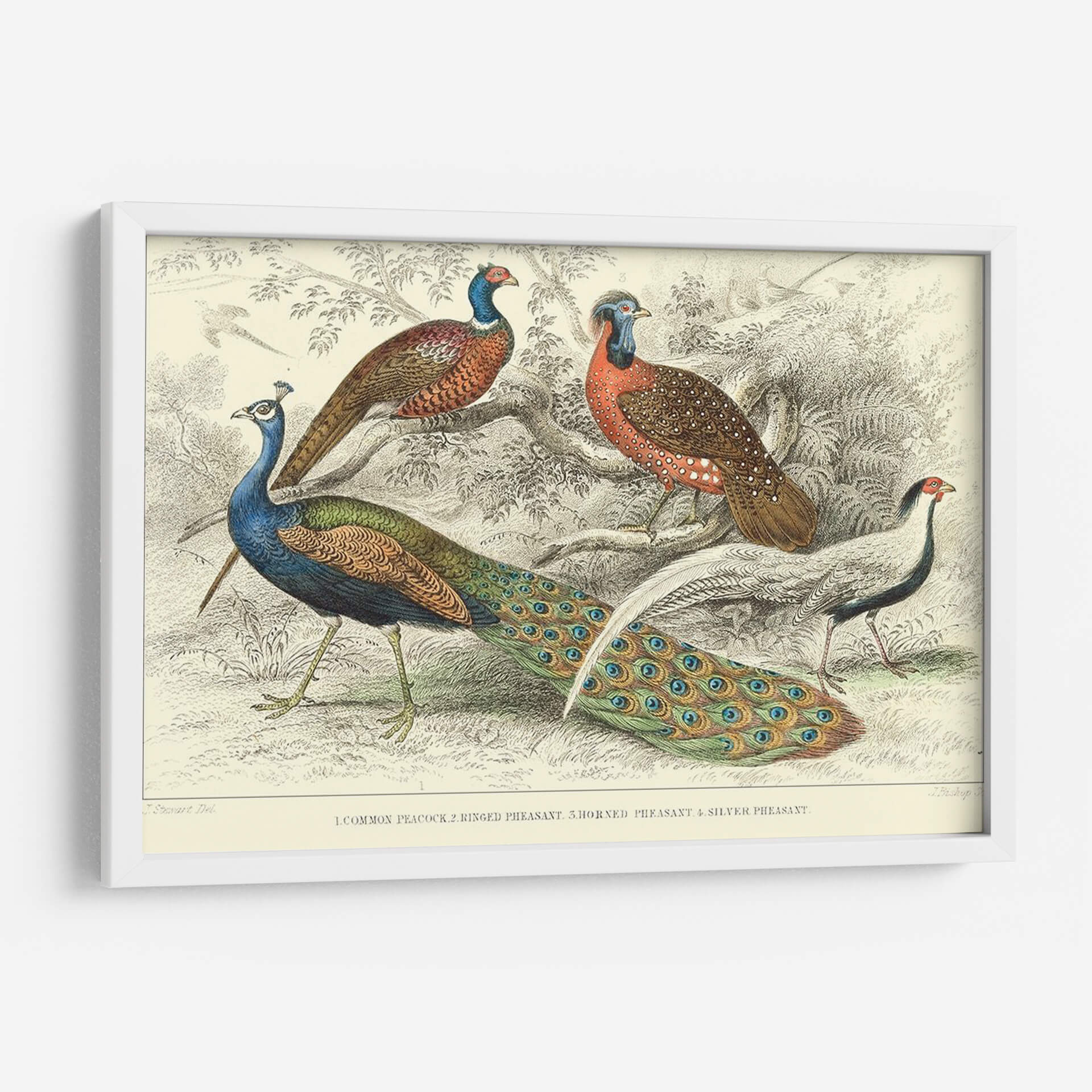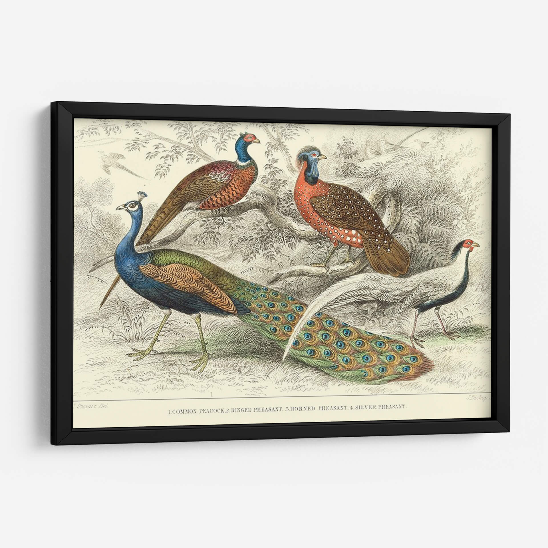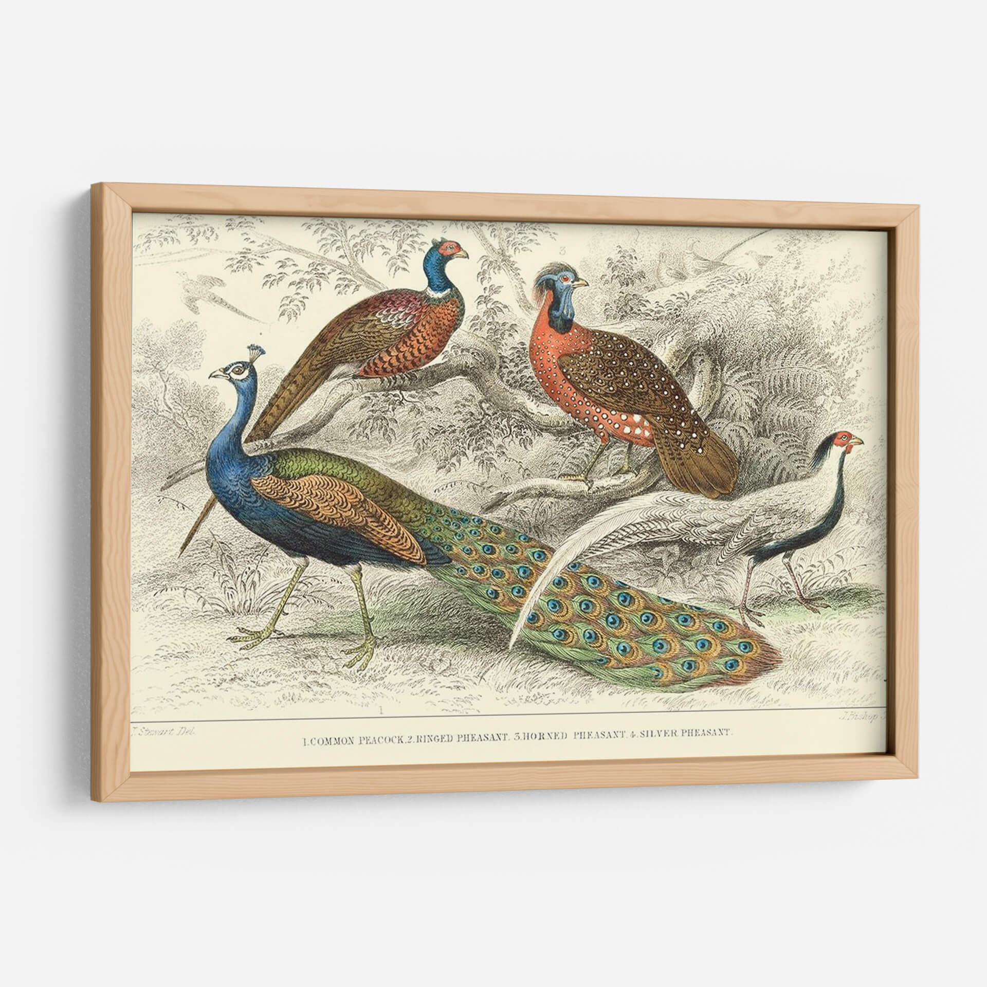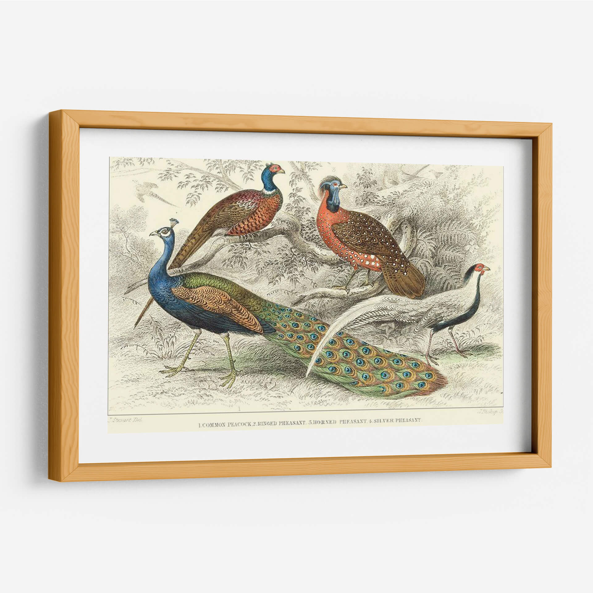 Embellece tu hogar con este exquisito cuadro decorativo "Peacock Y Faisanes", una obra maestra que captura la majestuosidad de las aves en su hábitat natural. La pieza presenta un pavo real azul y verde vibrante en primer plano, desplegando su cola con intrincados diseños oculares, acompañado por varios faisanes en tonos terracota y grises, posados elegantemente entre ramas y follaje detallado. La paleta de colores, dominada por azules profundos, verdes esmeralda, naranjas cálidos y sutiles tonos tierra, crea una atmósfera rica y detallada, evocando una sensación de elegancia clásica y conexión con la naturaleza. El estilo de ilustración, reminiscentes de grabados antiguos, añade un toque de sofisticación y valor histórico. Este cuadro decorativo es ideal para añadir un punto focal de belleza natural y color a salas de estar, comedores o estudios, transformando cualquier espacio en un santuario de estilo y serenidad. Su detallada composición y la gracia de las aves lo convierten en una pieza de conversación que aportará distinción y un aire de tranquilidad a tu decoración.
