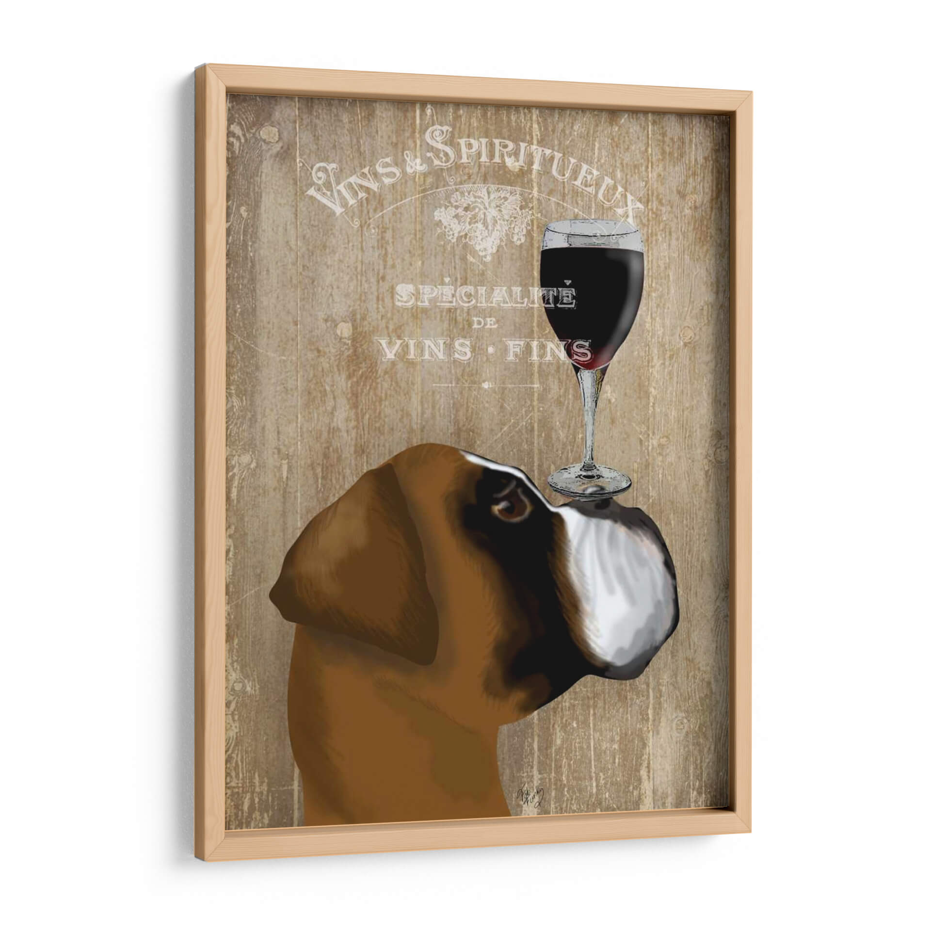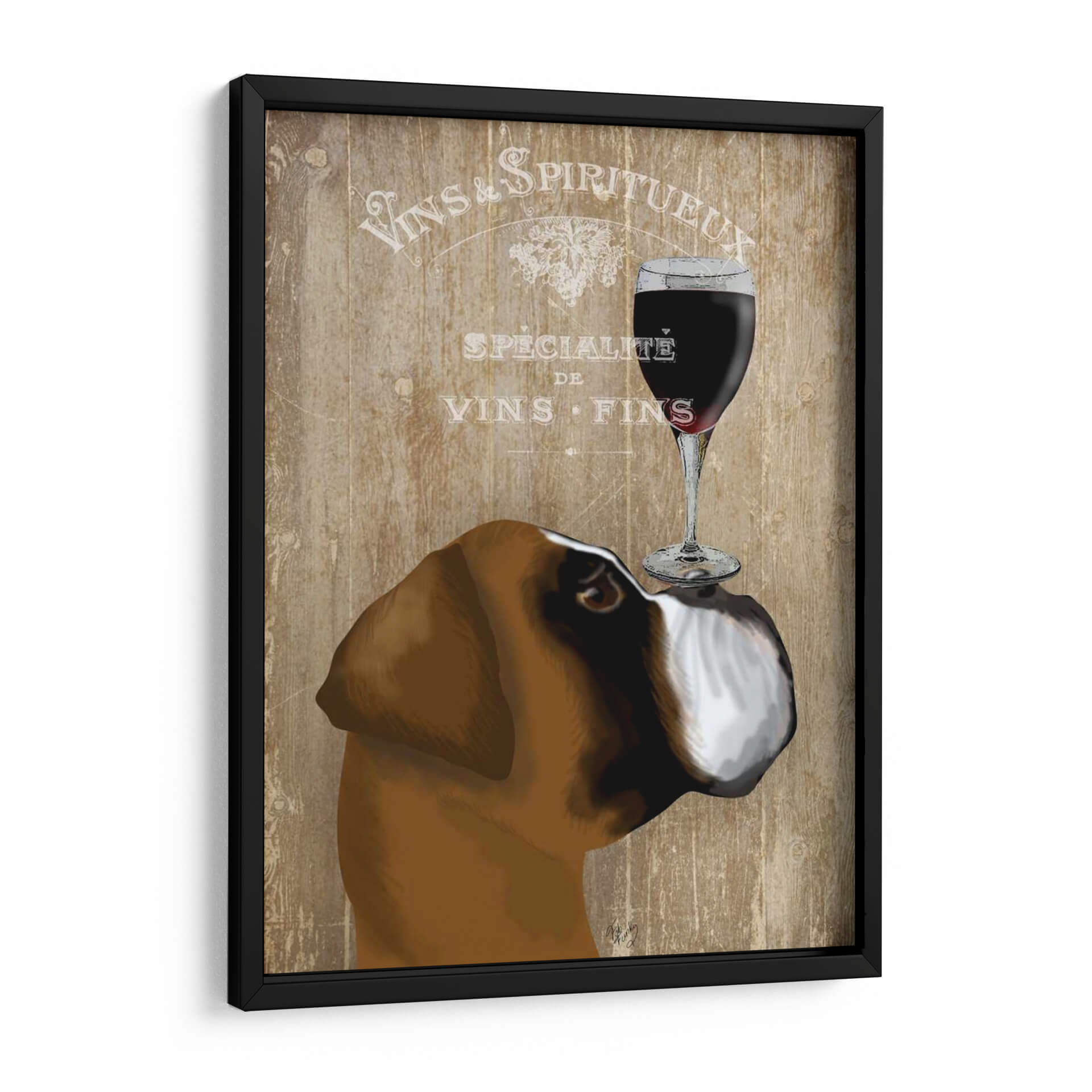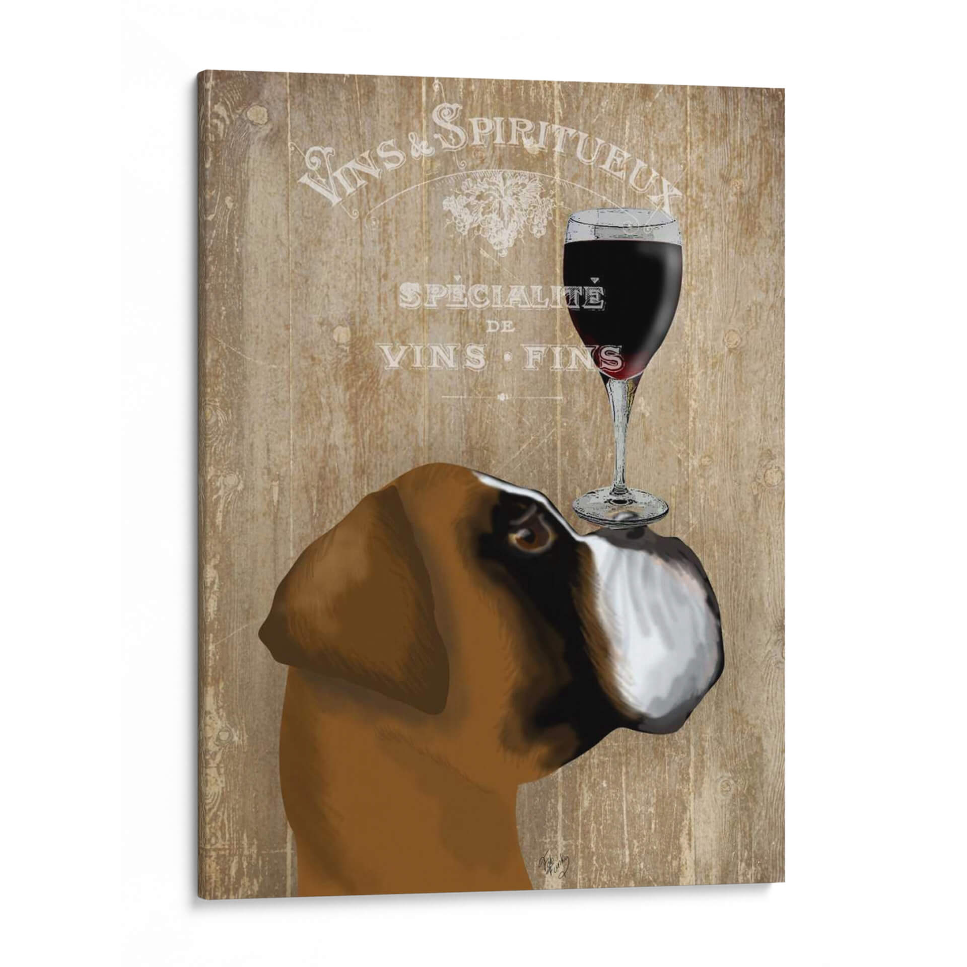 Descubre la obra de arte "Perro Au Vin Boxeador", una pieza cautivadora del artista Fab Funky que combina un estilo rústico con un toque de humor. Este cuadro decorativo presenta un primer plano detallado de un perro Boxer, con su pelaje marrón y blanco bellamente texturizado, mirando con curiosidad hacia un elegante cáliz de vino tinto. El fondo simula una superficie de madera envejecida, adornada con una tipografía francesa que evoca las bodegas y los placeres del buen vino. La paleta de colores se centra en tonos tierra, marrones cálidos y el vibrante rojo del vino, creando una atmósfera acogedora y sofisticada. El estilo artístico, que mezcla elementos de ilustración y diseño gráfico vintage, resulta en una pieza única y con personalidad. "Perro Au Vin Boxeador" es ideal para añadir un punto focal interesante y lleno de carácter a cocinas, comedores, bares o cualquier espacio que busque un toque de originalidad y calidez. Su composición equilibrada y la expresión del perro invitan a la conversación, convirtiéndolo en un elemento decorativo que despierta emociones y atrae miradas. Perfecta para amantes del vino, apasionados de los perros y aquellos que aprecian el arte contemporáneo con un toque divertido.