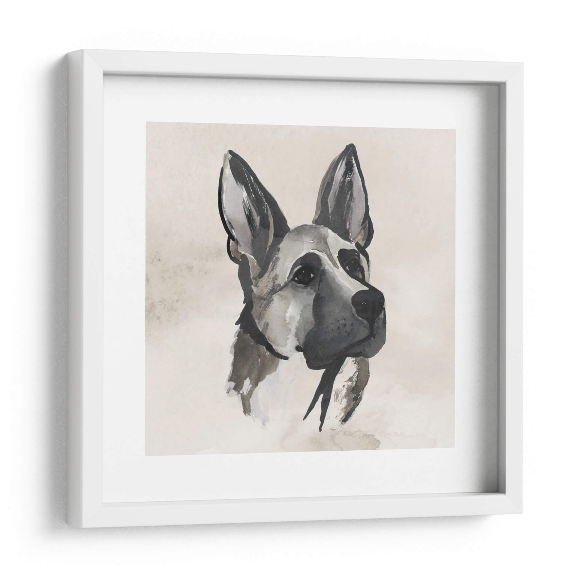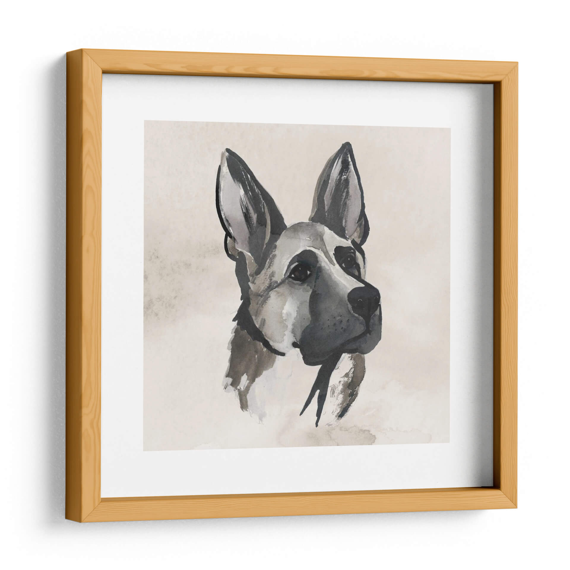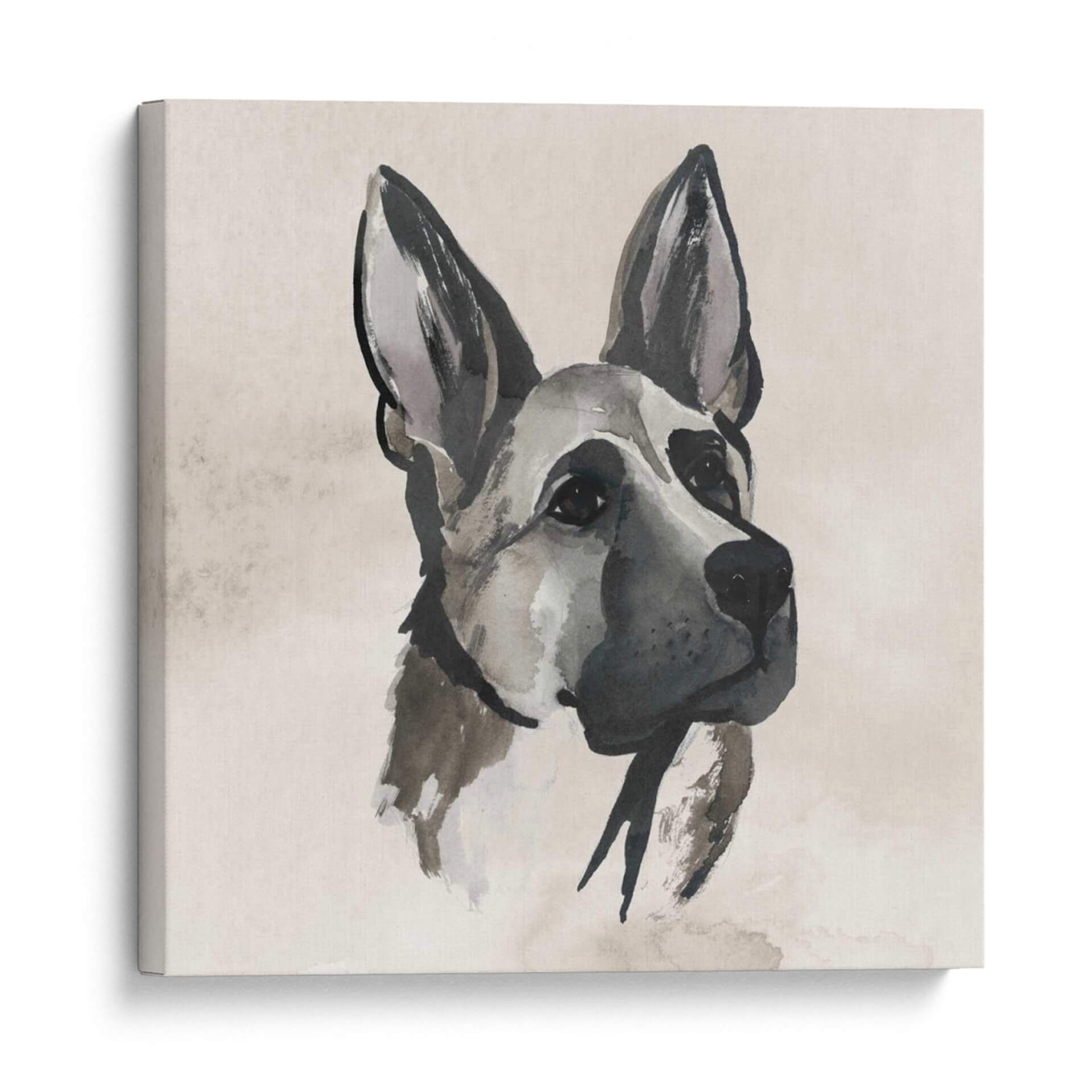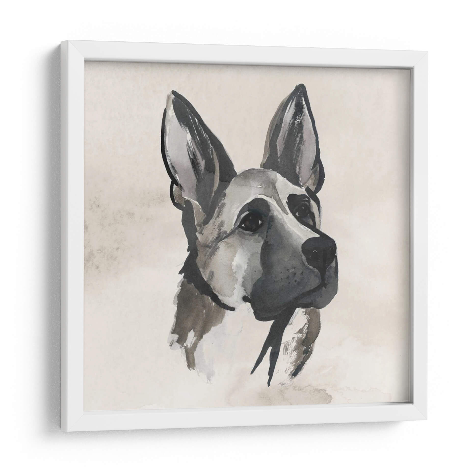 Este cautivador cuadro decorativo, 'Perros Entintados IV' de Grace Popp, captura la esencia de un majestuoso perro con una técnica de acuarela distintiva y audaz. Las pinceladas sueltas y expresivas dan vida a la figura, mientras que la paleta de colores en grises, negros y toques sutiles de sepia crea una atmósfera introspectiva y elegante. La composición se centra en el rostro del animal, resaltando sus penetrantes ojos y sus orejas alertas, transmitiendo una sensación de lealtad y nobleza. El fondo texturizado en tonos neutros añade profundidad y permite que el retrato del perro sea el protagonista indiscutible. Esta obra de arte contemporáneo es ideal para añadir un toque de carácter y sofisticación a cualquier espacio, desde una sala de estar moderna hasta un estudio o una oficina. Su estilo versátil se adapta a diversas decoraciones, aportando un punto focal intrigante sin ser abrumador. 'Perros Entintados IV' es una pieza que evoca emociones de compañía y admiración por el reino animal, perfecta para amantes de los perros y apreciadores del arte con alma.