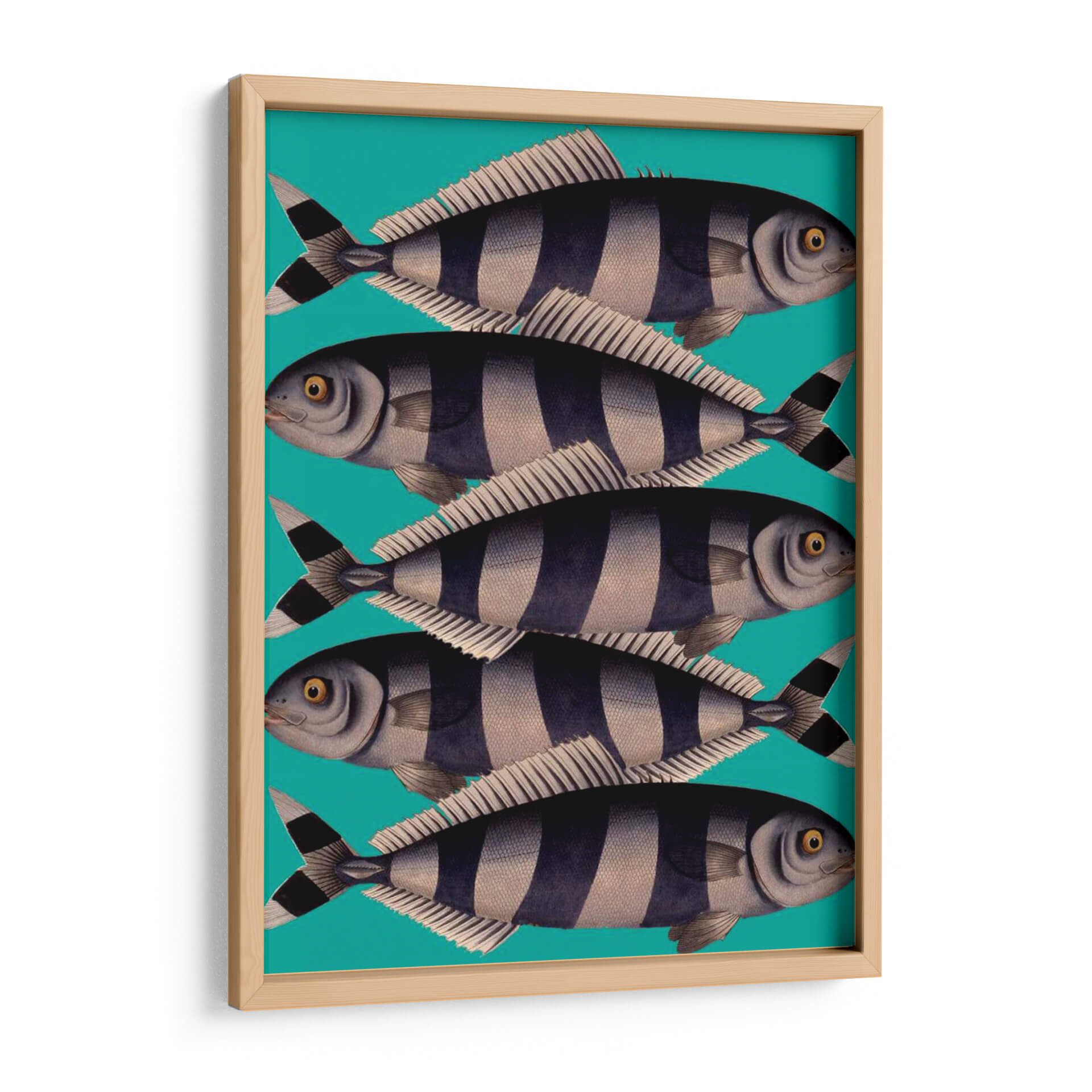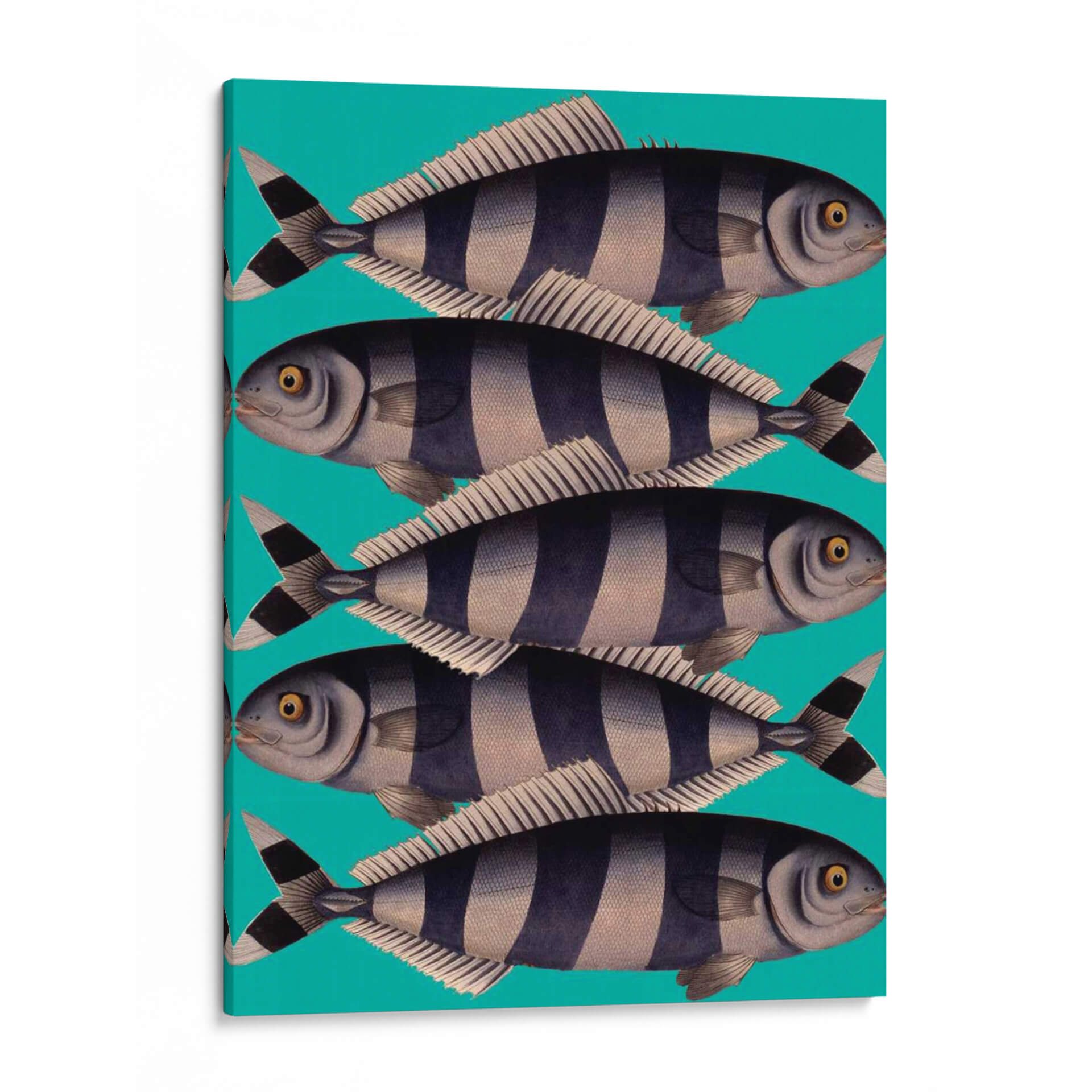 Sumérgete en las profundidades marinas con "Pescado a Rayas Azules", una obra de arte cautivadora del artista Fab Funky. Este cuadro decorativo presenta una repetición hipnótica de peces con un distintivo patrón de rayas azules y grises, contrastando elegantemente sobre un vibrante fondo turquesa. La composición, con los peces alineados verticalmente, crea una sensación de movimiento rítmico y armonía visual, ideal para añadir un toque de vida marina y serenidad a cualquier espacio. El estilo, que evoca ilustraciones científicas vintage pero con un giro contemporáneo y lúdico, atrae tanto a amantes de la naturaleza como a entusiastas del arte moderno. Los detalles finos en las escamas y las aletas, junto con los ojos expresivos de cada pez, dotan a la pieza de una profundidad y un carácter únicos. "Pescado a Rayas Azules" es perfecto para decorar salones, dormitorios, baños o incluso oficinas, aportando una atmósfera de tranquilidad y sofisticación costera. Transforma tu pared en una ventana al océano con este cuadro decorativo que combina a la perfección la estética clásica y el diseño audaz, convirtiéndose en un punto focal que inspira y relaja.