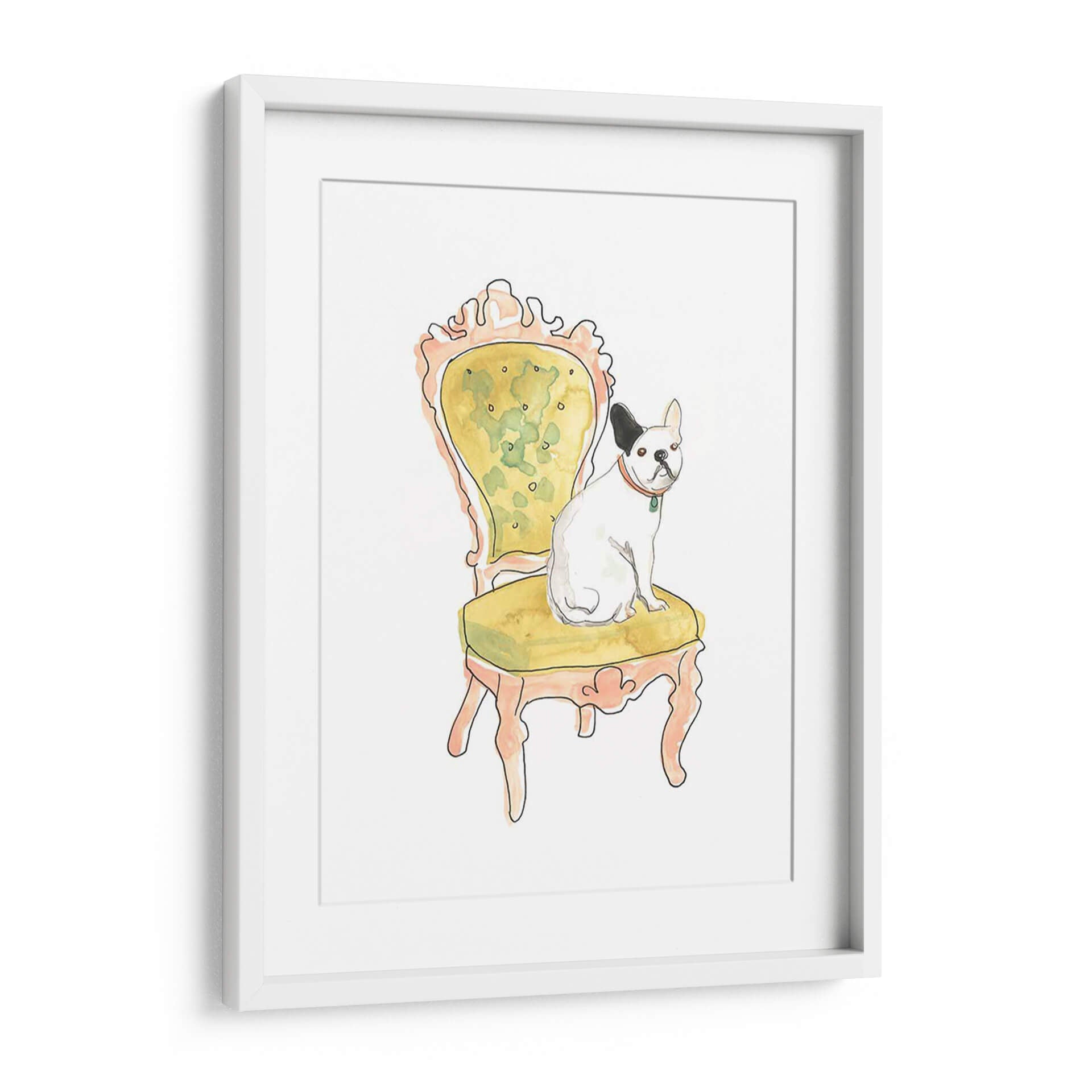 Captura la esencia del encanto doméstico con "Petite Chien Iv", una encantadora obra de arte que evoca calidez y personalidad. Esta pieza presenta un adorable bulldog francés sentado con elegancia en una silla de estilo rococó, con una paleta de colores que combina el dorado ocre de la silla con toques de verde musgo en el respaldo, todo ello acentuado por un contorno negro y acuarelas sutiles. La ilustración, con su estilo ligero y detallado, irradia una atmósfera juguetona y sofisticada. Es perfecta para añadir un punto de interés y carácter a cualquier estancia, desde un salón moderno hasta un dormitorio acogedor o un estudio con personalidad. "Petite Chien Iv" no es solo un cuadro, es una declaración de estilo que celebra la compañía de las mascotas y la belleza del diseño clásico con un toque contemporáneo. Ideal para amantes de los perros y aficionados al arte que buscan piezas únicas para embellecer su hogar.