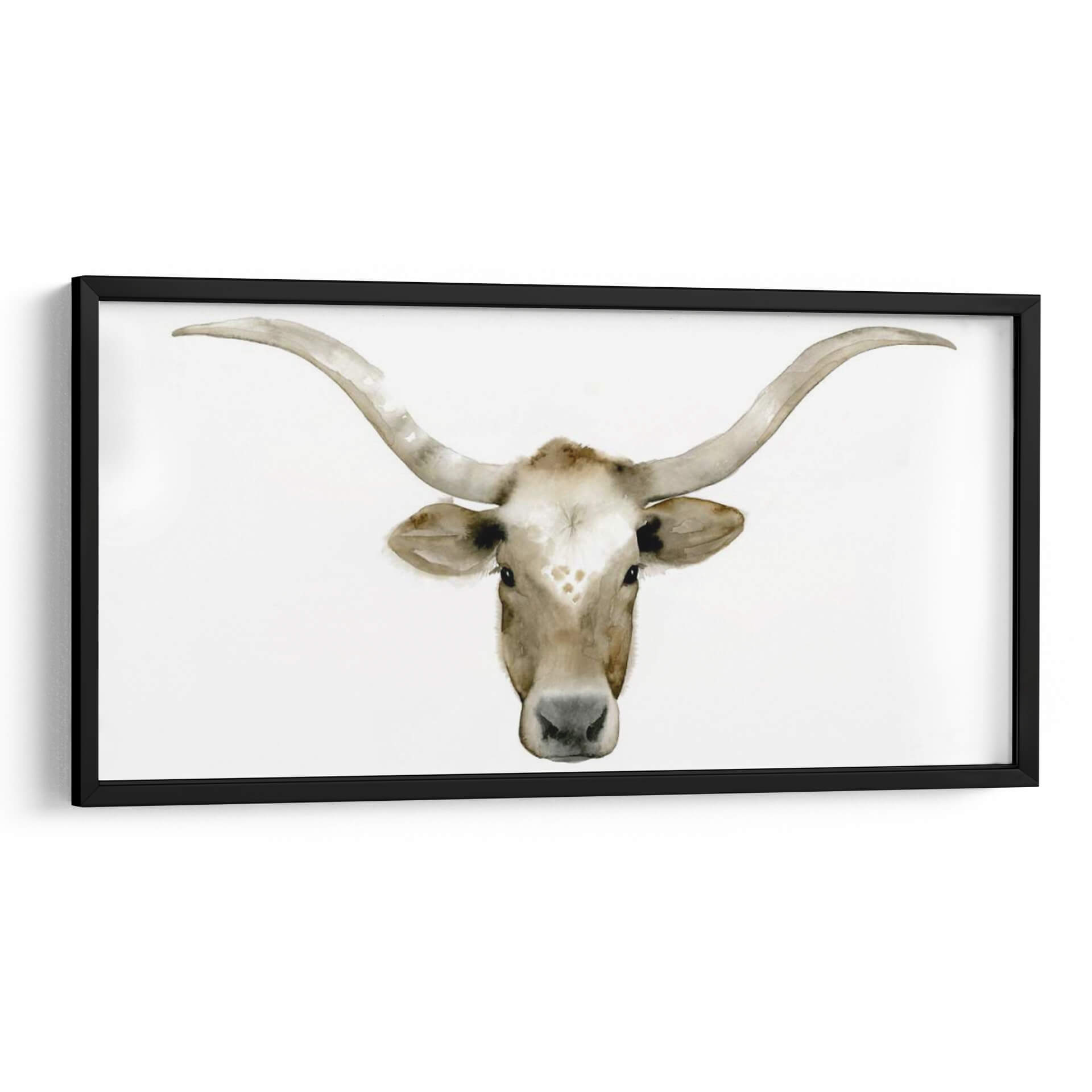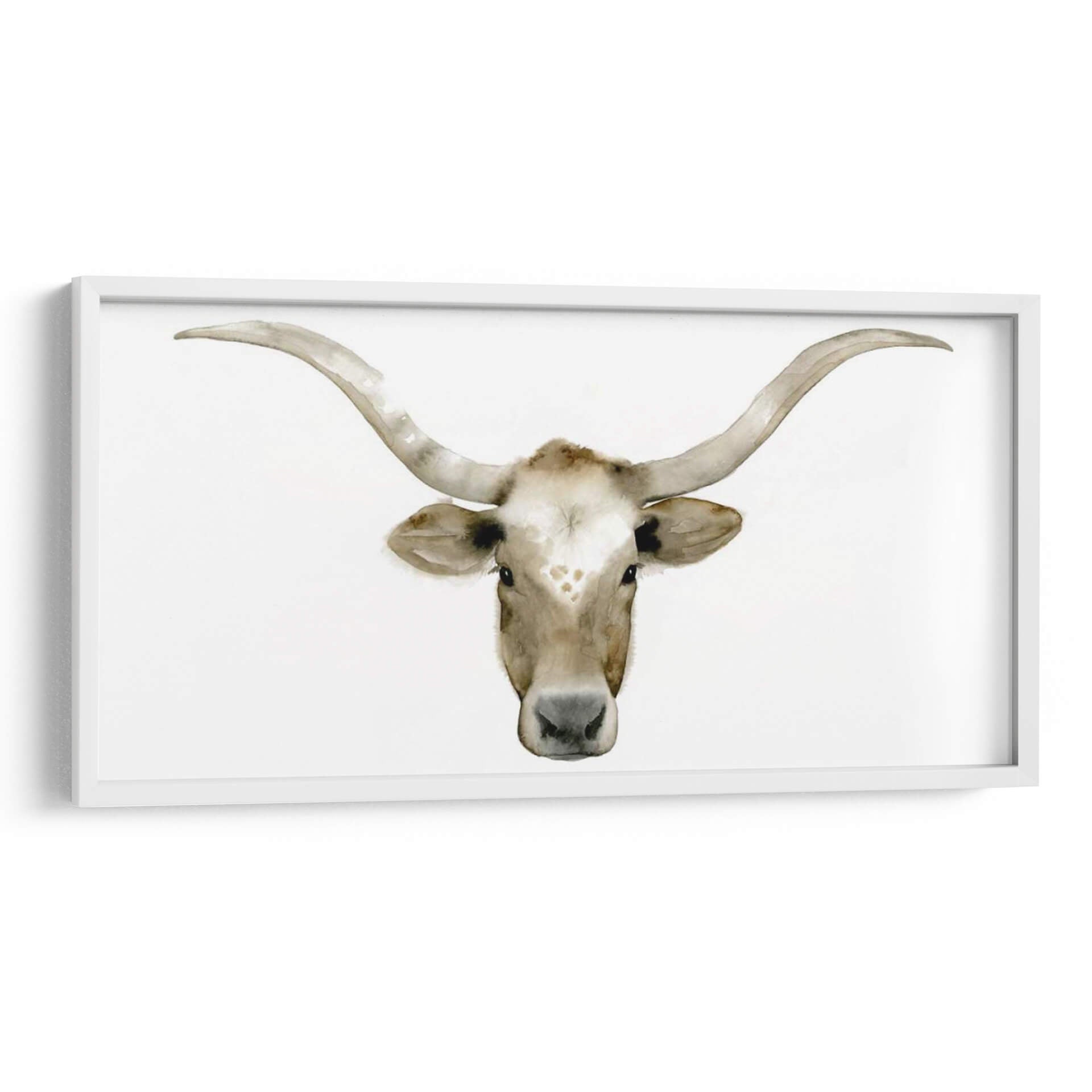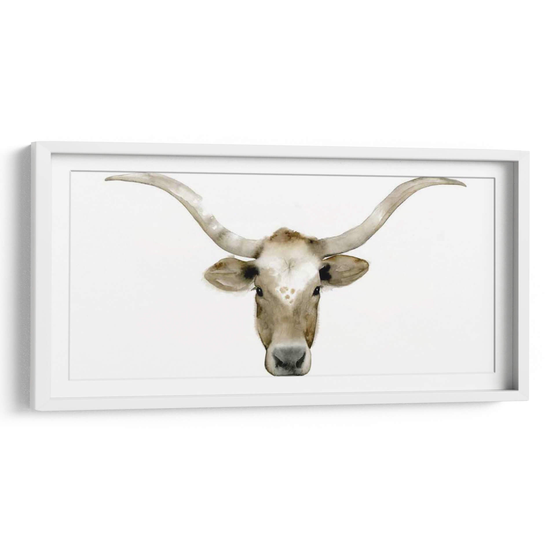 Sumérgete en la serenidad y la majestuosidad de "Piedras Acuáticas Iv", una obra de arte contemporáneo de Grace Popp que captura la esencia de la naturaleza con una delicadeza acuarela. Este cuadro decorativo presenta un primer plano evocador de la cabeza de un toro Longhorn, con sus icónicos cuernos curvos extendiéndose hacia los lados. La paleta de colores se centra en tonos tierra suaves y cálidos, con matices de blanco cremoso, beige y marrón claro, creando una atmósfera de calma y conexión con lo rural. La técnica de acuarela, sutil y fluida, aporta una textura ligera y etérea a la imagen, resaltando la expresividad de la mirada del animal y los detalles de su pelaje y cuernos. La composición minimalista, centrada en el sujeto sobre un fondo blanco puro, permite que la figura principal brille y se convierta en un punto focal cautivador en cualquier espacio. "Piedras Acuáticas Iv" es ideal para quienes buscan añadir un toque de sofisticación rústica o un aire de tranquilidad natural a su hogar u oficina. Transmite una sensación de fuerza serena y elegancia atemporal, haciendo de este cuadro una adición perfecta para salas de estar, dormitorios o estudios que busquen una decoración de pared con carácter y belleza sutil.