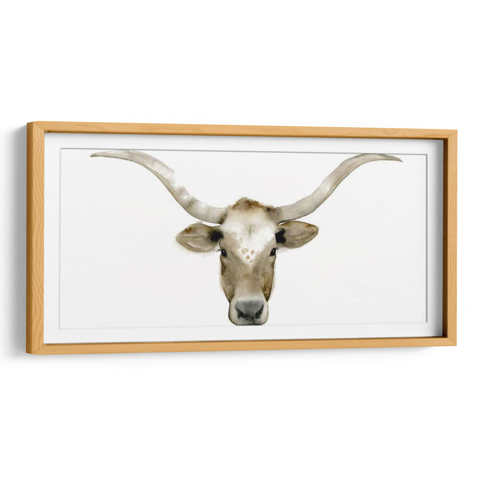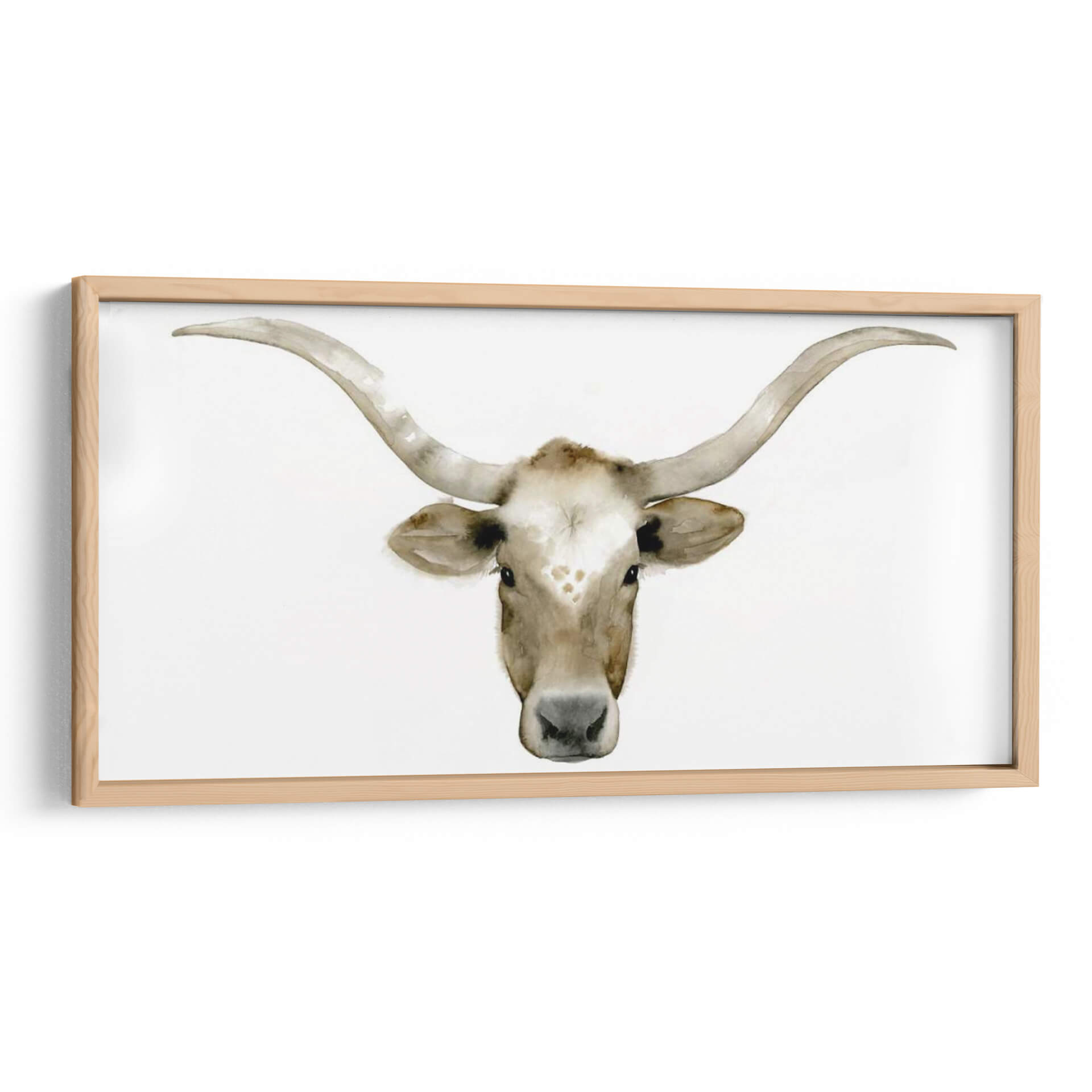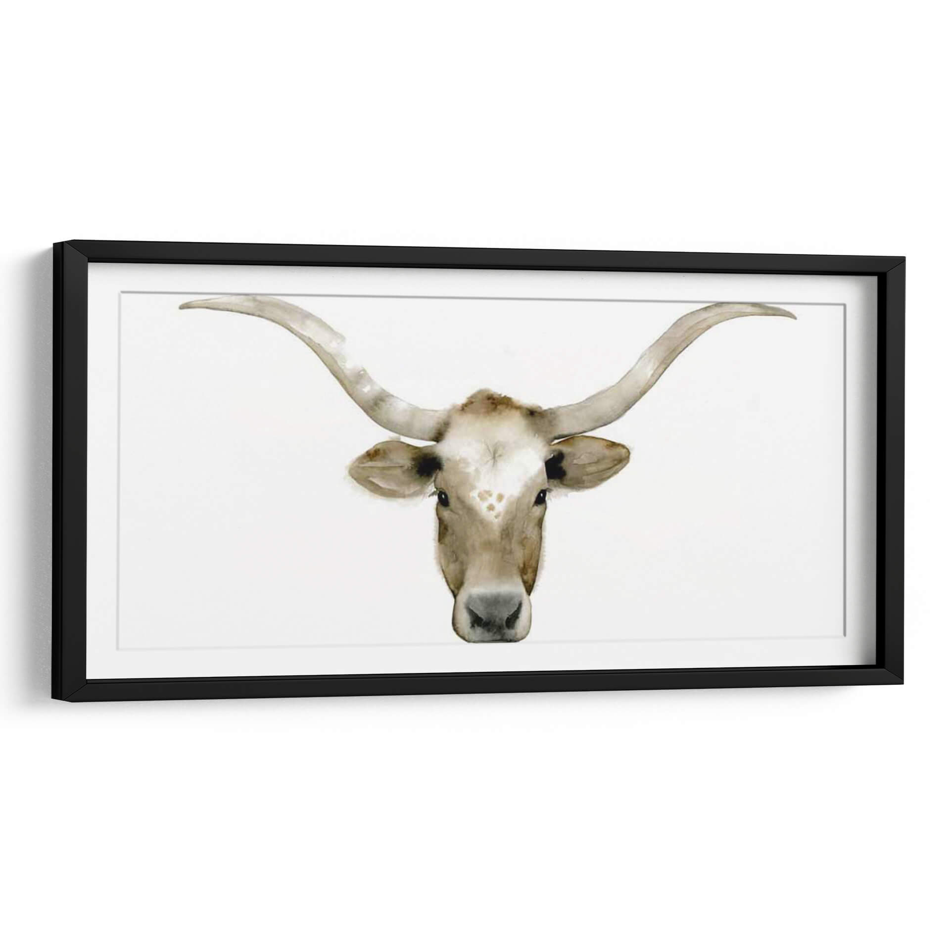 Sumérgete en la serenidad y la majestuosidad de "Piedras Acuáticas Iv", una obra de arte contemporáneo de Grace Popp que captura la esencia de la naturaleza con una delicadeza acuarela. Este cuadro decorativo presenta un primer plano evocador de la cabeza de un toro Longhorn, con sus icónicos cuernos curvos extendiéndose hacia los lados. La paleta de colores se centra en tonos tierra suaves y cálidos, con matices de blanco cremoso, beige y marrón claro, creando una atmósfera de calma y conexión con lo rural. La técnica de acuarela, sutil y fluida, aporta una textura ligera y etérea a la imagen, resaltando la expresividad de la mirada del animal y los detalles de su pelaje y cuernos. La composición minimalista, centrada en el sujeto sobre un fondo blanco puro, permite que la figura principal brille y se convierta en un punto focal cautivador en cualquier espacio. "Piedras Acuáticas Iv" es ideal para quienes buscan añadir un toque de sofisticación rústica o un aire de tranquilidad natural a su hogar u oficina. Transmite una sensación de fuerza serena y elegancia atemporal, haciendo de este cuadro una adición perfecta para salas de estar, dormitorios o estudios que busquen una decoración de pared con carácter y belleza sutil.