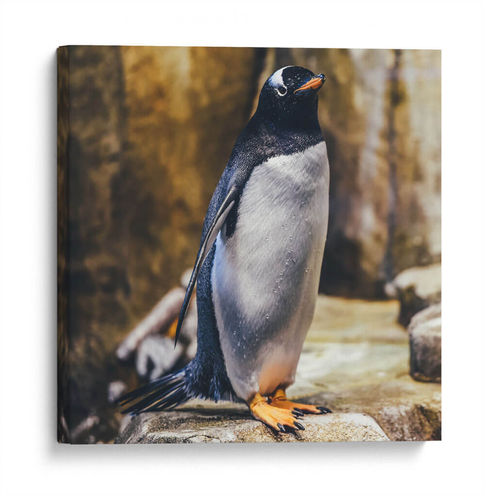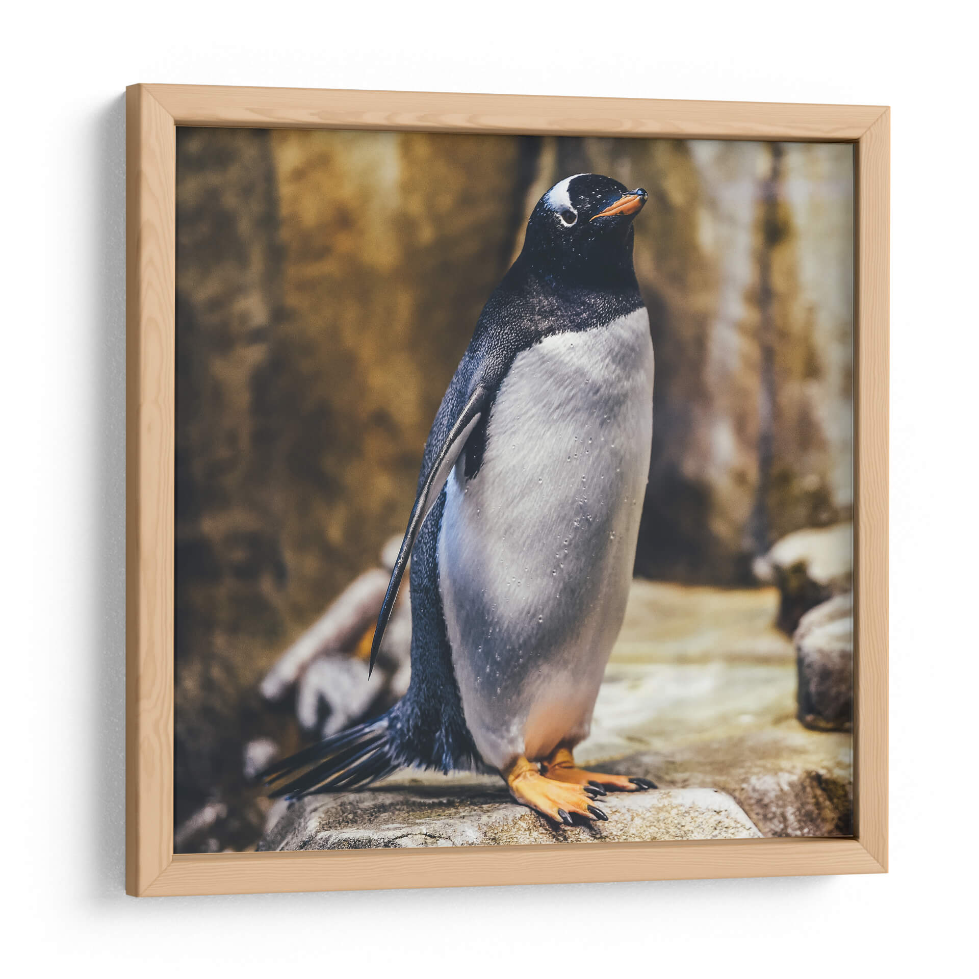 Capture la atención con "Pingüino Atento", una obra de arte que evoca curiosidad y serenidad. Esta cautivadora imagen presenta a un pingüino de la especie Gentoo, de pie con una postura erguida y una mirada inquisitiva hacia el horizonte. Los detalles de su plumaje, desde las marcas blancas distintivas en su cabeza hasta las finas gotas de agua que adornan su pecho, están representados con una claridad impresionante. La paleta de colores se centra en tonos neutros y terrosos del entorno rocoso, contrastando elegantemente con el blanco y negro del pingüino y los toques anaranjados de su pico y patas. La composición fotográfica resalta la majestuosidad y la soledad del animal, creando una atmósfera de tranquilidad y contemplación. "Pingüino Atento" es una elección perfecta para añadir un toque de naturaleza y sofisticación a cualquier espacio. Ideal para salones modernos, estudios o incluso dormitorios, esta pieza invita a la reflexión y aporta un elemento único a tu decoración de pared, recordándonos la belleza de la vida salvaje y la importancia de la observación.
