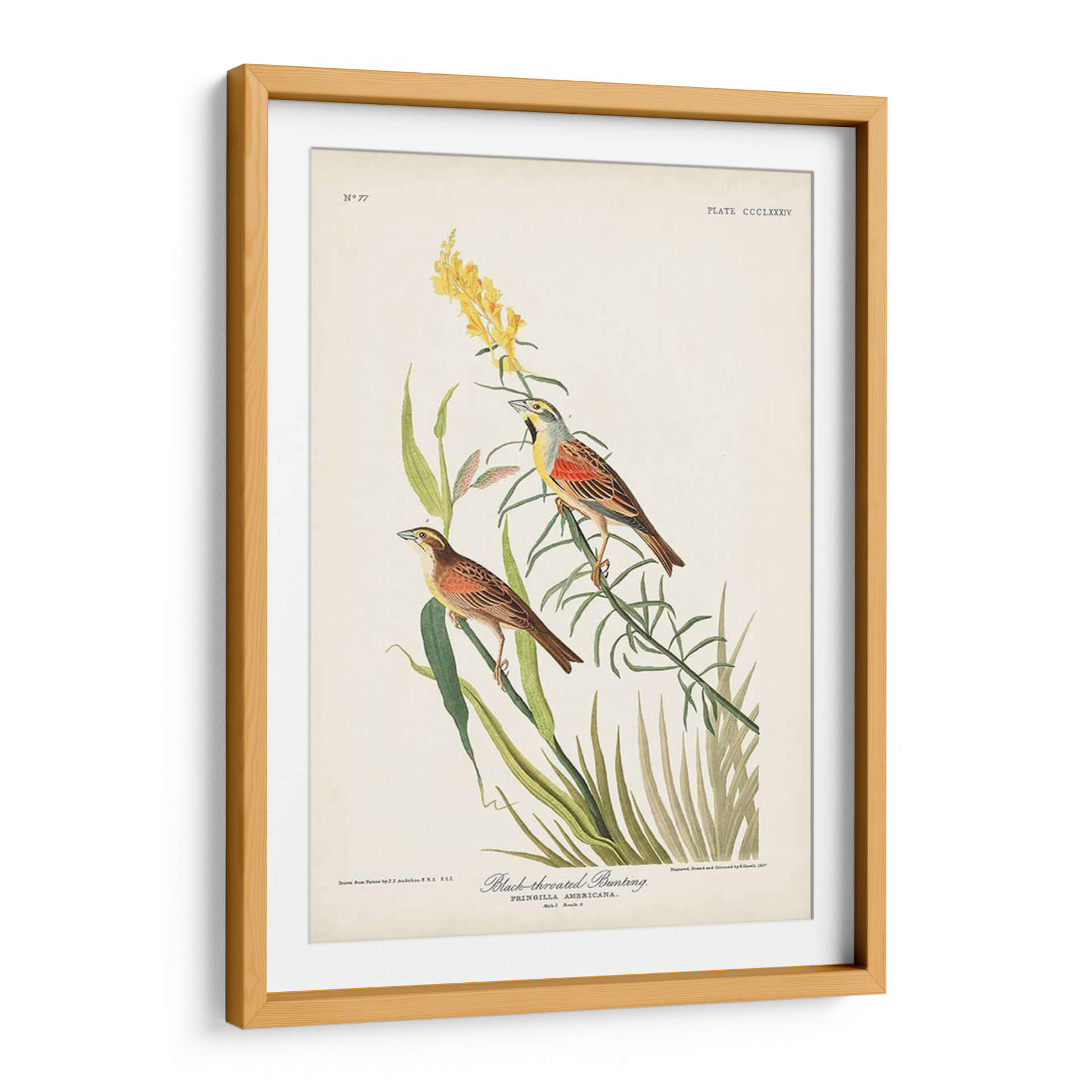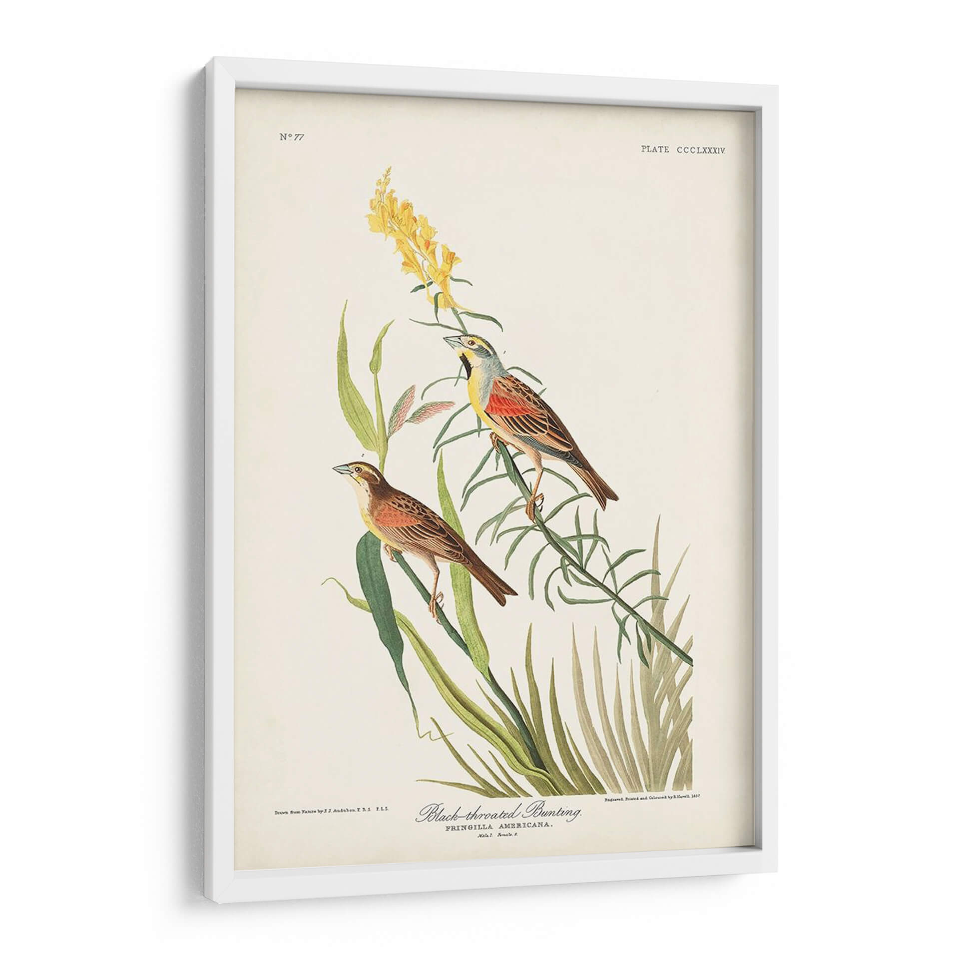 Embellece tu espacio con este exquisito cuadro decorativo que captura la belleza detallada de dos aves, identificadas como el "Black-throated Bunting" (Fringilla americana). La obra, inspirada en las ilustraciones científicas de John James Audubon, presenta una delicada representación de estas aves posadas sobre vegetación exuberante, con vibrantes toques de amarillo y rojo que contrastan con los tonos verdes y el fondo neutro. La composición clásica y el estilo de ilustración detallada aportan un aire de sofisticación y aprecio por la naturaleza. Este cuadro es perfecto para añadir un toque de elegancia naturalista a cualquier habitación, desde un estudio o biblioteca hasta un comedor o sala de estar que busque un punto focal inspirador y sereno. La meticulosa ejecución de Audubon, transmitida a través de esta reproducción de alta calidad, evoca una sensación de calma y admiración por el mundo natural, convirtiéndola en una pieza de arte de pared atemporal y cautivadora que dialoga con la historia y la ciencia.