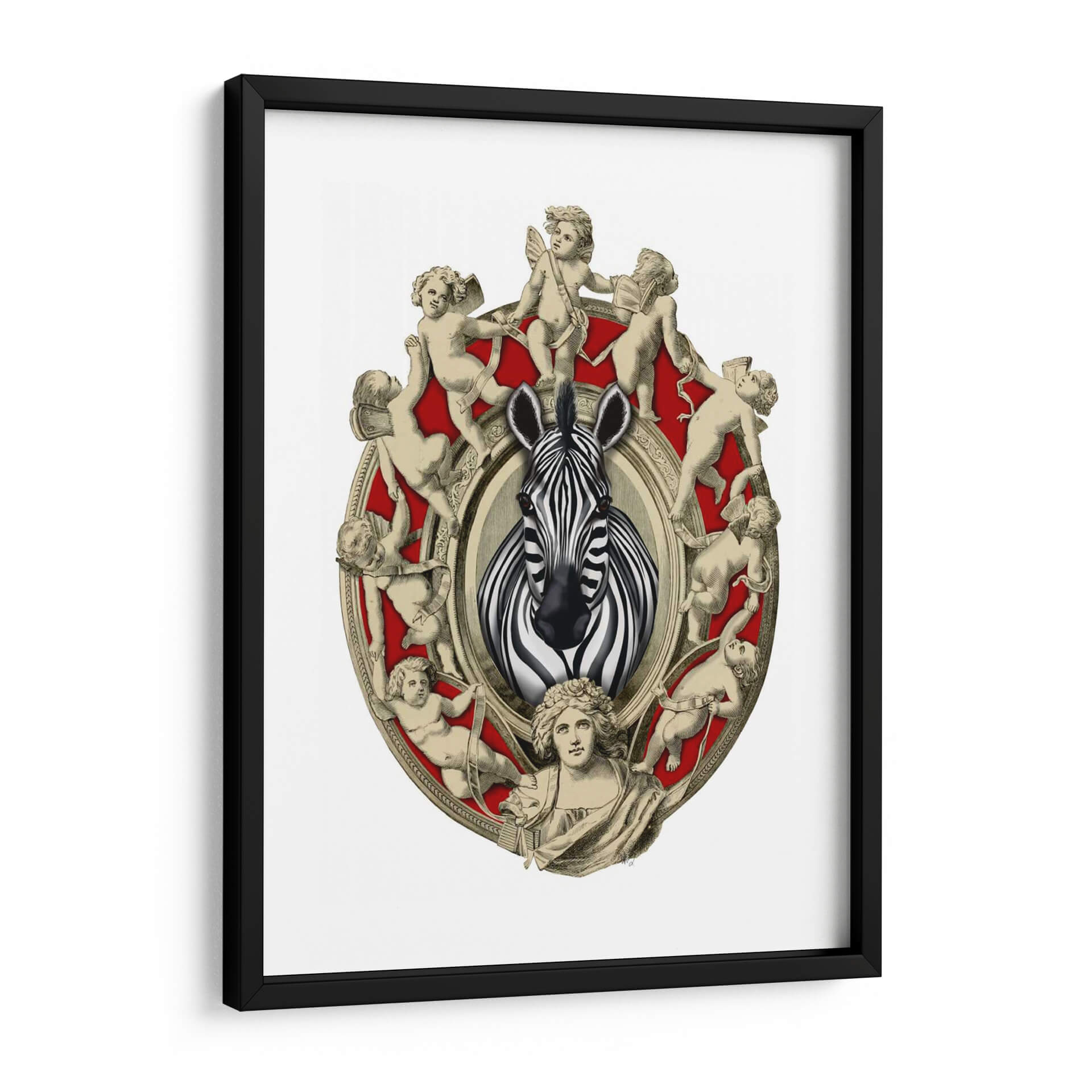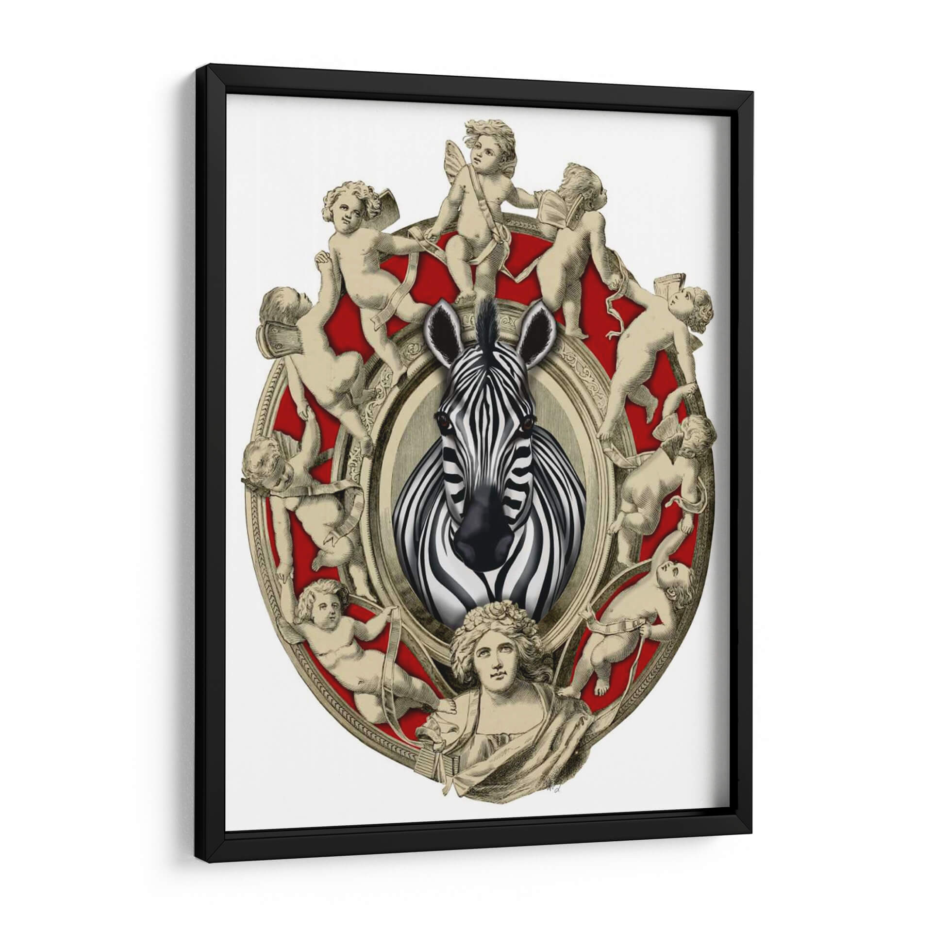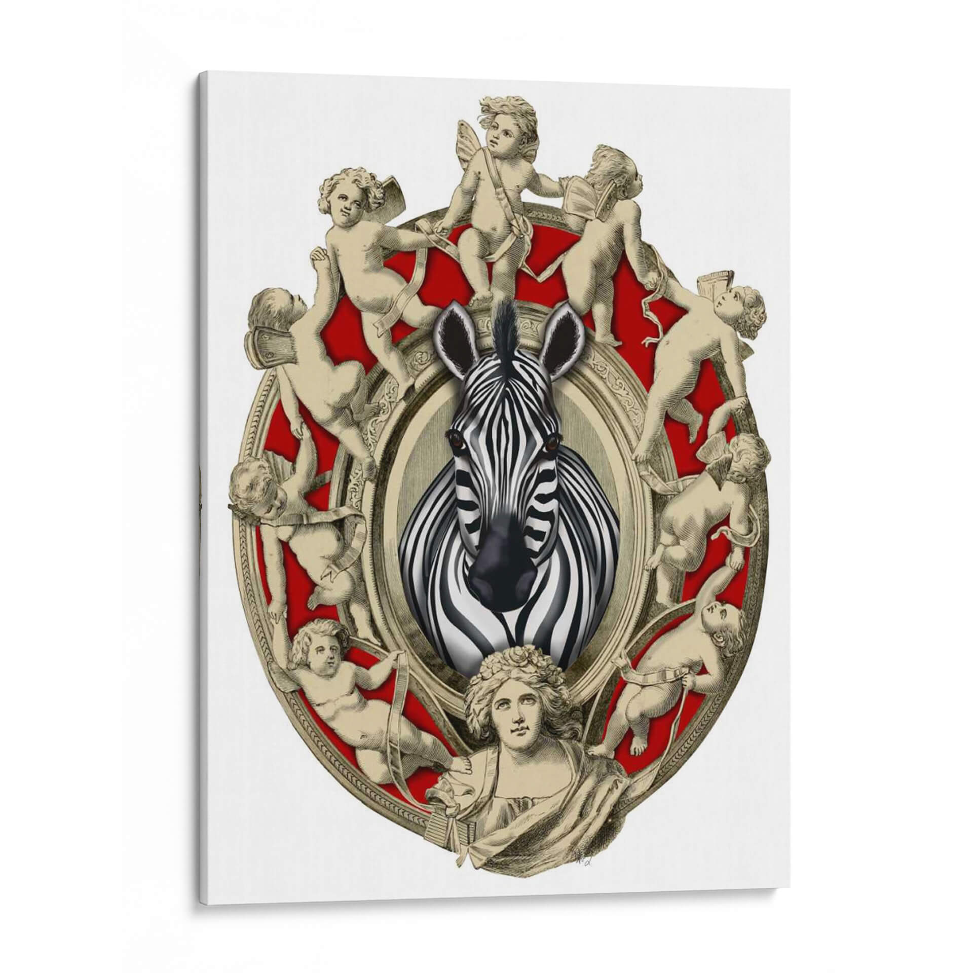 Transforma tu espacio con este cautivador cuadro decorativo que presenta un primer plano audaz de la cabeza de una cebra, rodeada por un intrincado marco adornado con querubines y una figura clásica. La obra de arte, titulada "Placa De La Cabeza De La Cebra" del artista Fab Funky, fusiona elementos surrealistas y barrocos con un toque contemporáneo. El intenso contraste entre las rayas blancas y negras de la cebra, junto con el vibrante fondo rojo y los detalles dorados del marco, crea una pieza visualmente impactante. Los querubines, con su estilo renacentista, añaden un aire de fantasía y juego, contrastando de manera fascinante con la mirada penetrante del animal. Este cuadro decorativo es ideal para salas de estar modernas, oficinas o cualquier espacio que busque un punto focal con carácter y un toque de excentricidad. Su composición detallada y su paleta de colores audaz lo convierten en una pieza de conversación que evoca curiosidad y admiración. Añade un toque de arte único y sofisticado a tu decoración con esta obra maestra que desafía las convenciones y celebra la belleza de la naturaleza a través de una lente artística imaginativa y elegante. Es una elección perfecta para quienes aprecian el arte con profundidad y un estilo distintivo.