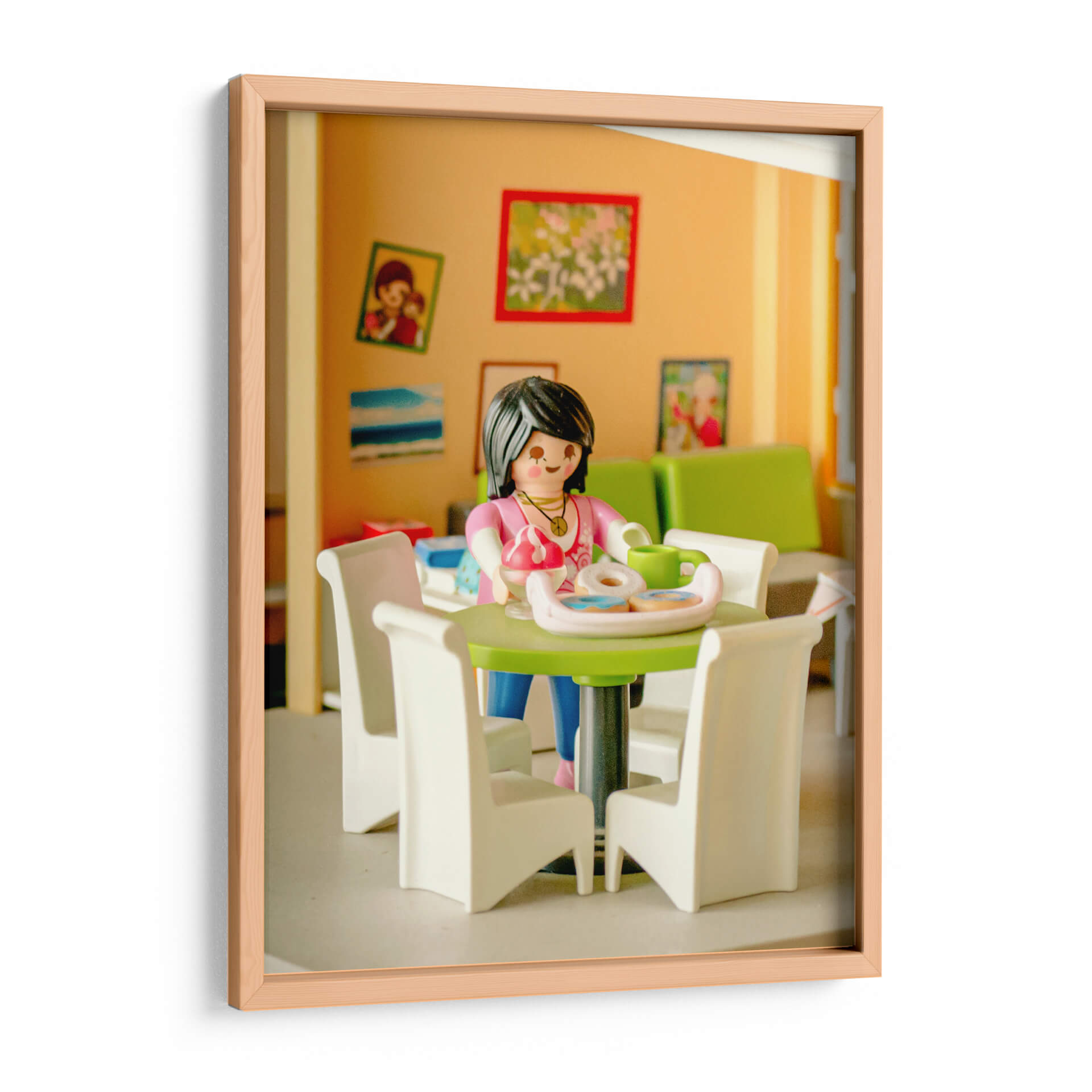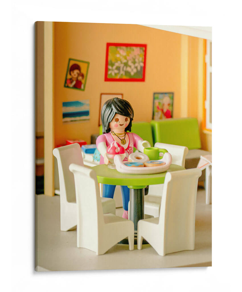 Sumérgete en la nostalgia y la alegría de los momentos cotidianos con este encantador cuadro decorativo, "plástico", del artista KevOlveRod. La obra captura una escena lúdica y acogedora, centrada en una figura sonriente rodeada de elementos que evocan la sencillez y el disfrute de un instante compartido. La paleta de colores, dominada por tonos cálidos y alegres como el naranja del fondo y el verde vibrante de la mesa, crea una atmósfera de calidez hogareña y optimismo. Las figuras estilizadas y los objetos de diseño simple invitan a la contemplación de la infancia y los placeres sencillos de la vida. Este cuadro es ideal para añadir un toque de color y personalidad a cualquier espacio, desde una sala de estar moderna hasta una habitación infantil o una oficina que busque un ambiente más relajado y amigable. Su composición equilibrada y sus detalles curiosos lo convierten en un punto focal que genera conversación y sonrisas. El estilo único del artista fusiona elementos figurativos con una estética contemporánea, resultando en una pieza de arte que es a la vez divertida y estéticamente atractiva. Perfecto para quienes buscan arte que celebre la vida y sus pequeños grandes momentos.