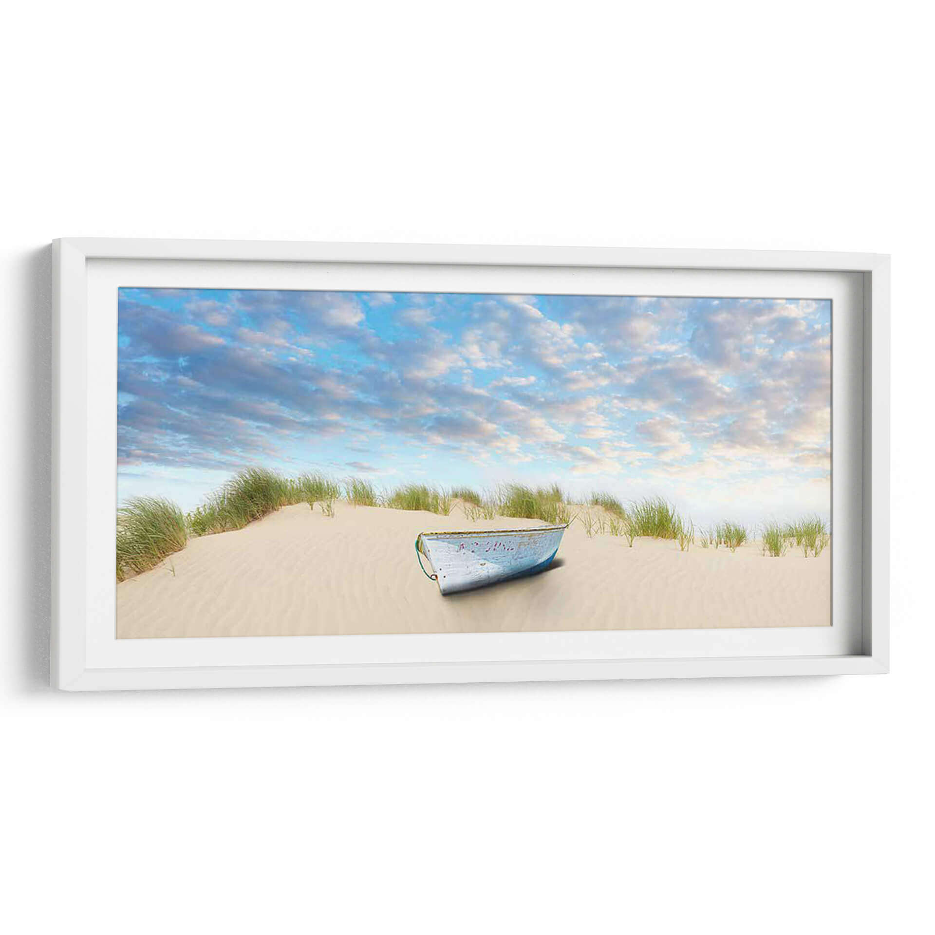 Transporta tu hogar a la serenidad de la costa con nuestro cuadro decorativo "Playa Fotografía III" de James McLoughlin. Esta cautivadora obra de arte captura la esencia de un día tranquilo en la playa, con suaves dunas de arena dorada que se elevan bajo un cielo azul vibrante, salpicado de nubes algodonosas que invitan a la contemplación. En el corazón de la escena, un pintoresco bote de pesca descansa sobre la arena, su pintura blanca desgastada y su reflejo azul sutil añaden un toque de carácter y nostalgia a la composición. Los verdes pastos marinos ondean suavemente, añadiendo textura y vida al paisaje costero. La paleta de colores, dominada por tonos cálidos de arena, cielos celestes y verdes naturales, crea una atmósfera de paz y relajación, perfecta para cualquier espacio que busque un respiro del bullicio cotidiano. Este cuadro decorativo es una invitación a la calma y la introspección, ideal para salones, dormitorios o incluso oficinas que deseen infundir una sensación de escapismo y tranquilidad. Su estilo fotográfico y realista, con una composición equilibrada, lo convierte en una pieza versátil que complementará una amplia gama de estilos decorativos, desde el costero hasta el moderno o minimalista. Permite que la belleza serena de "Playa Fotografía III" transforme tu entorno en un santuario de paz.