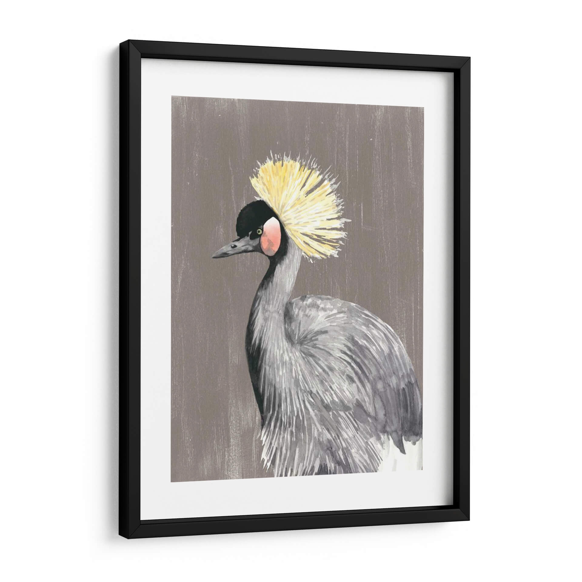 Embárcate en un viaje visual con "Plumaje Vibrante II", una cautivadora obra de arte de Naomi McCavitt que celebra la elegancia y el color de la naturaleza. Esta pieza se centra en un majestuoso pájaro coronado, cuya cabeza ostenta un radiante plumaje amarillo que contrasta poderosamente con su plumaje gris y negro. La acuarela evoca una sensación de serenidad y admiración, capturando la delicadeza de las texturas y el suave juego de luces y sombras. El fondo, con su acabado texturizado en tonos tierra, realza la figura central sin restarle protagonismo, creando una atmósfera de calma y sofisticación. "Plumaje Vibrante II" es más que un simple cuadro; es una ventana a la belleza del mundo natural, ideal para añadir un toque de distinción y vida a cualquier sala de estar, dormitorio o estudio. Su estilo artístico contemporáneo y su paleta de colores equilibrada lo convierten en una elección versátil para una decoración moderna o con inspiración orgánica, aportando un punto focal de elegancia y tranquilidad. Descubre la magia de esta composición única que transformará tu espacio.