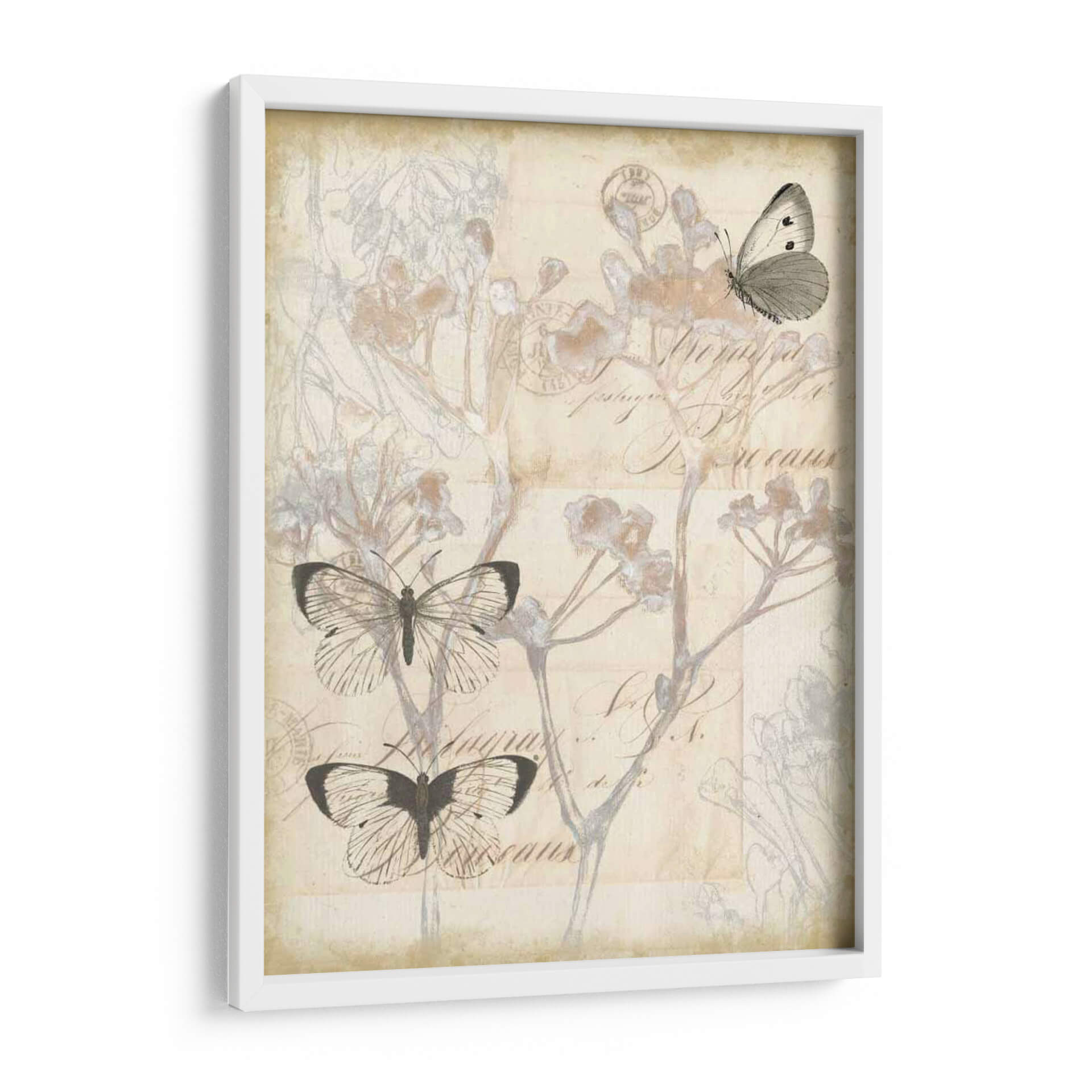 Sumérgete en la delicadeza y el encanto atemporal con "Puesta De Sol Lace I", una obra de arte de Jennifer Goldberger que evoca la belleza sutil de la naturaleza y la nostalgia de un pasado epistolar. Este cuadro decorativo presenta una composición etérea donde mariposas delicadas revolotean entre ramas finamente dibujadas y elementos que sugieren cartas antiguas y sellos postales desvanecidos. La paleta de colores, dominada por tonos sepia, crema y suaves grises, crea una atmósfera de calma y serenidad, perfecta para añadir un toque de elegancia discreta a cualquier espacio. Los detalles intrincados de las mariposas y las texturas reminiscentes de papel envejecido invitan a la contemplación, transformando una pared común en un portal a un mundo de ensueño y romanticismo. Ideal para dormitorios, salas de estar o estudios donde se busca una decoración que inspire tranquilidad y sofisticación. "Puesta De Sol Lace I" no es solo una imagen, es una invitación a apreciar la belleza en los detalles efímeros y a crear un rincón de paz y estilo en tu hogar. Añade esta pieza única para infundir a tu decoración un aire de distinción y poesía visual, conectando con la elegancia clásica y la delicadeza natural.
