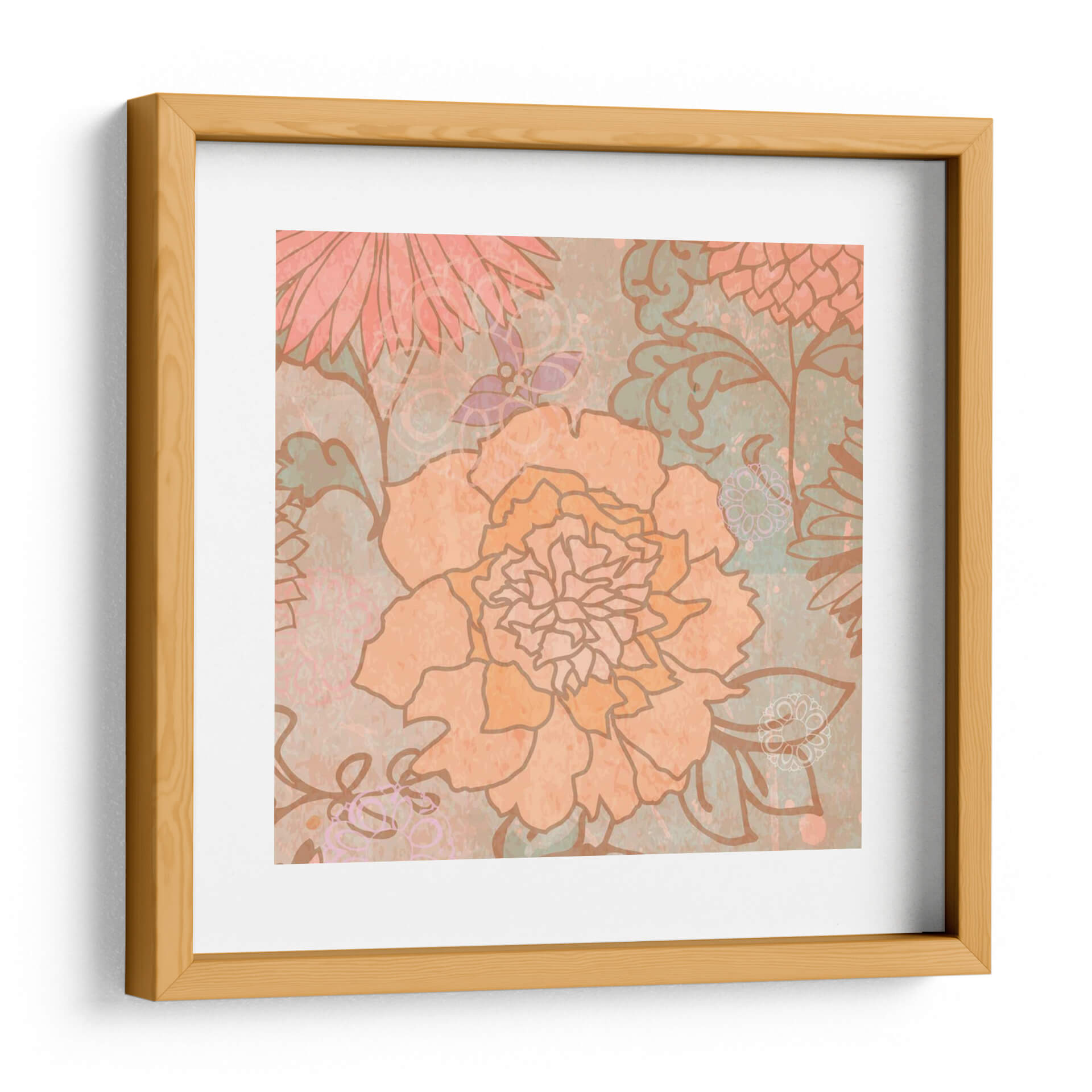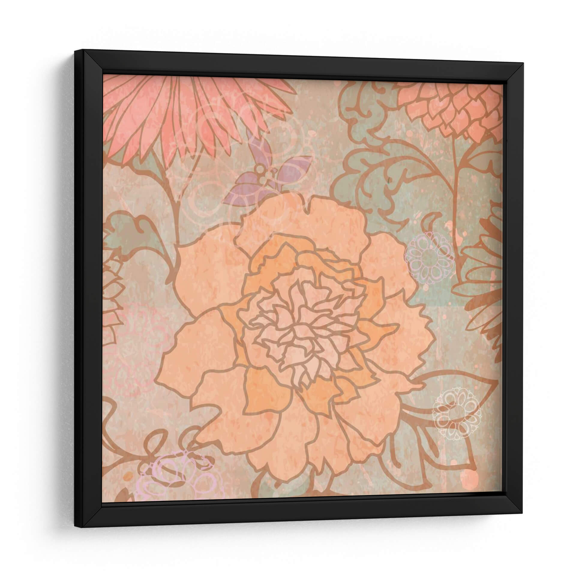 Sumérgete en la delicadeza botánica con "Punch Floral I", una obra de arte digital que evoca la belleza atemporal de las flores en plena floración. Los tonos cálidos de melocotón y coral se entrelazan con sutiles toques de verde menta y un fondo texturizado que aporta profundidad y un aire vintage. El diseño presenta una composición floral estilizada, donde las líneas orgánicas y suaves delinean pétalos voluminosos y delicadas hojas, creando un patrón visualmente atractivo y armonioso. Cada elemento floral parece respirar con una energía sutil, invitando a la contemplación y a la conexión con la naturaleza. Esta pieza es perfecta para añadir un toque de color suave y sofisticación a cualquier espacio, desde una sala de estar acogedora hasta un dormitorio sereno o una oficina tranquila. Su estilo contemporáneo con un matiz retro la convierte en una elección versátil para una variedad de decoraciones interiores, aportando un ambiente de calma y elegancia natural. "Punch Floral I" es más que un simple cuadro; es una invitación a embellecer tu entorno con la gracia y la vitalidad del mundo floral, creando un punto focal que deleita la vista y eleva el espíritu. Ideal para quienes buscan una decoración de pared que combine arte moderno con una sensibilidad clásica y relajante.