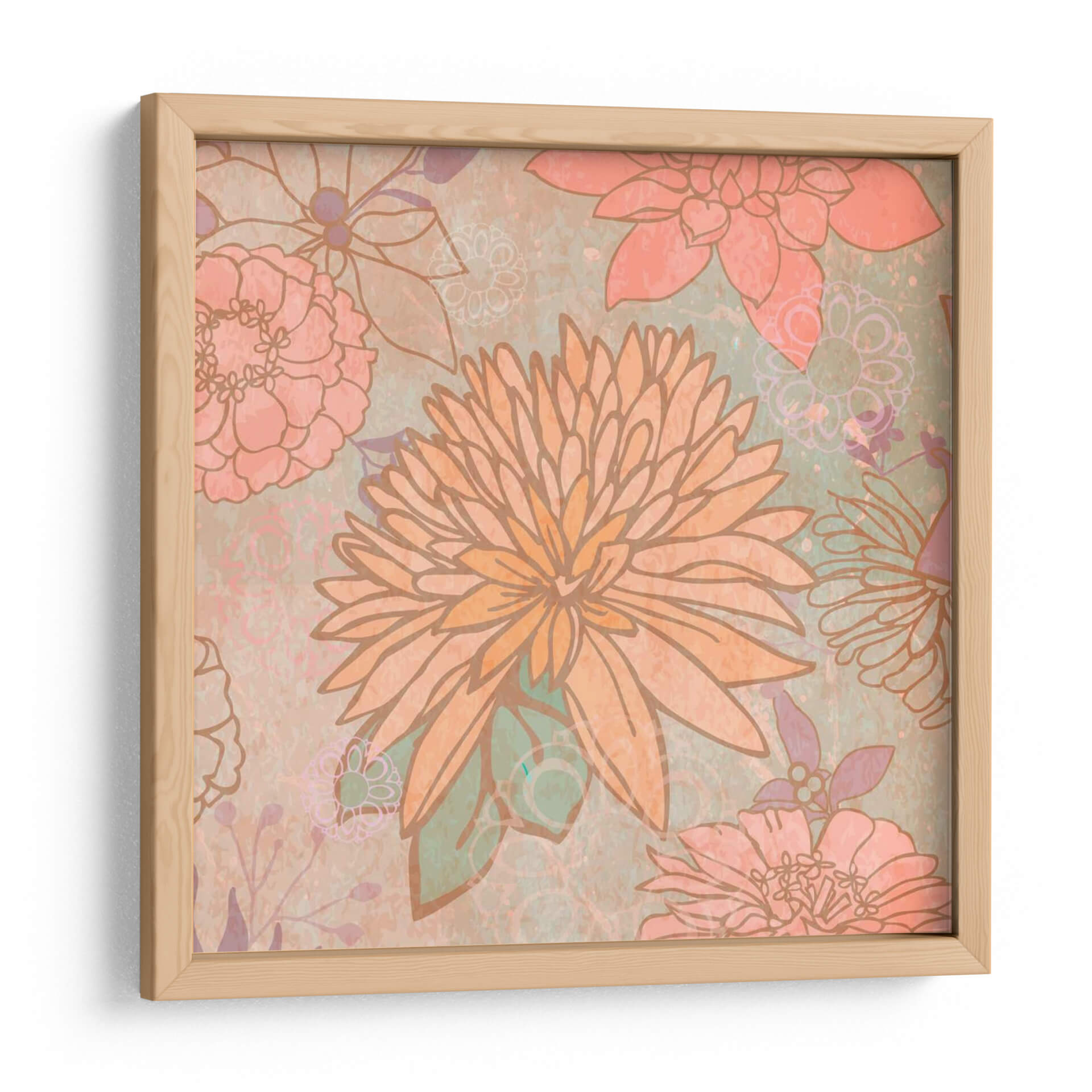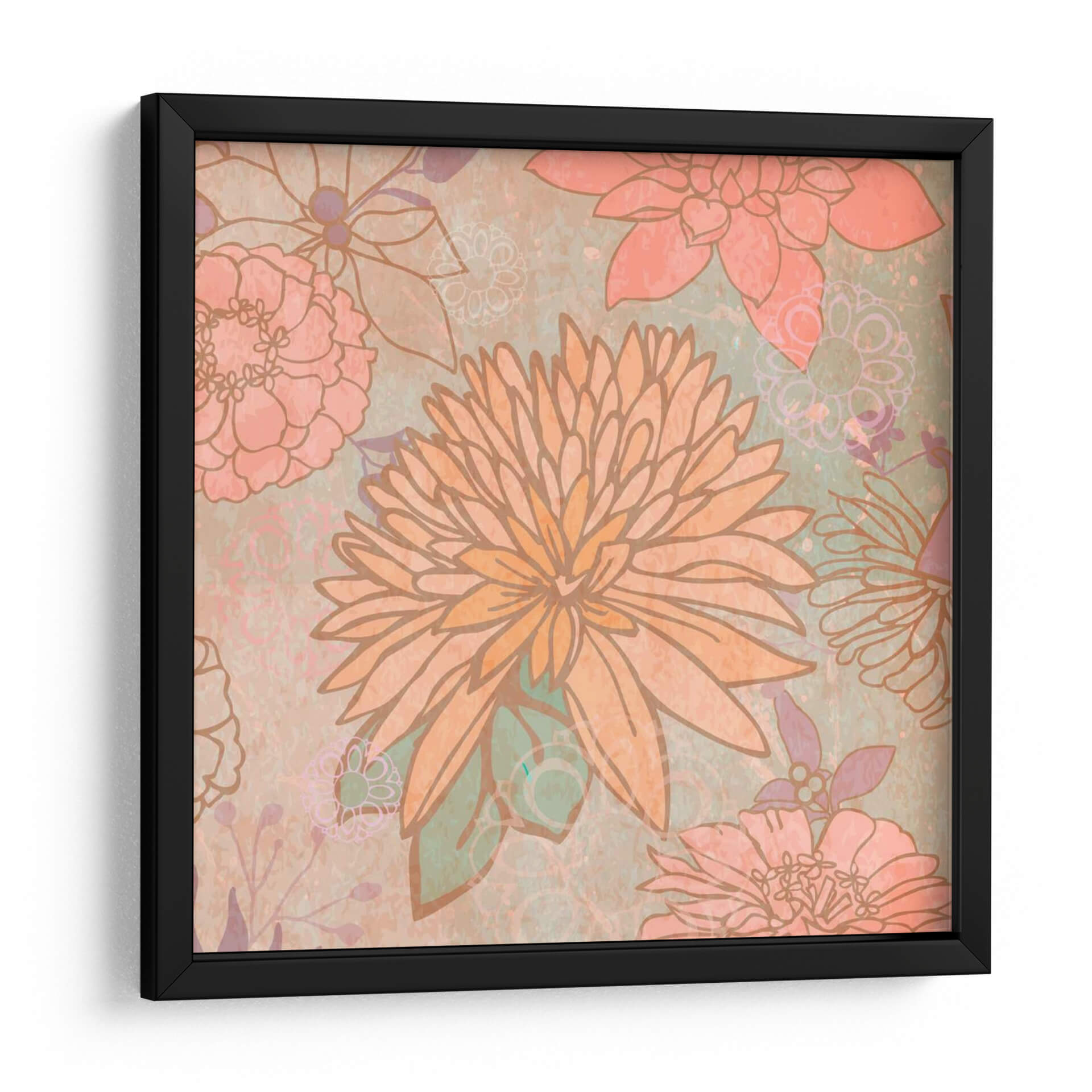 Embárcate en un viaje visual con "Punch Floral II", una obra de arte contemporáneo que captura la esencia vibrante y delicada de la naturaleza. Esta pieza, creada por Leslie Mark, presenta un cautivador despliegue de flores estilizadas en tonos cálidos de melocotón, coral y naranja, contrastando suavemente con un fondo texturizado en tonos tierra y verde agua. Las líneas de contorno marrón oscuro que definen cada pétalo y hoja añaden un toque gráfico y moderno, creando un equilibrio perfecto entre la suavidad floral y la audacia del diseño. La composición, que evoca un jardín exuberante pero con un aire artístico y ligeramente retro, transmite una sensación de alegría serena y optimismo. La textura sutil del fondo, que recuerda a la pintura envejecida o al papel artesanal, otorga profundidad y carácter a la obra, invitando a la contemplación. "Punch Floral II" es ideal para añadir un toque de color y vida a cualquier espacio, desde una sala de estar moderna hasta un dormitorio acogedor o una oficina inspiradora. Este cuadro decorativo no solo embellecerá tus paredes, sino que también infundirá una atmósfera de frescura y vitalidad, reflejando tu aprecio por el arte y el diseño contemporáneo. Transforma tu hogar u oficina con esta pieza única que celebra la belleza atemporal de las flores con una perspectiva moderna y artística, perfecta para quienes buscan añadir un acento visual distintivo y lleno de personalidad a su decoración.