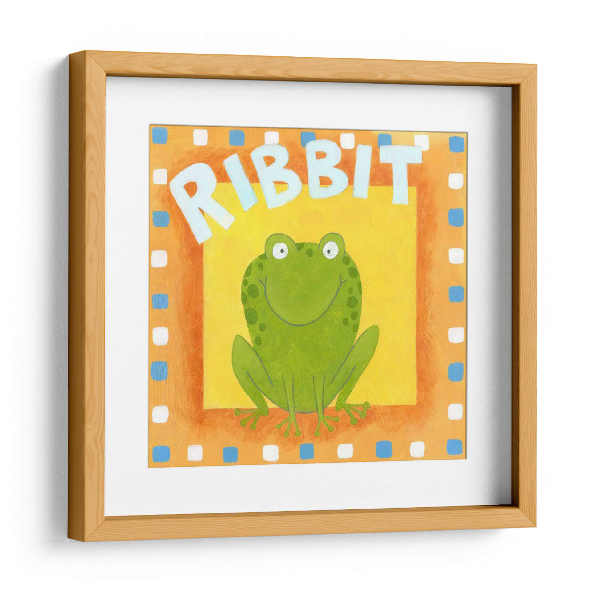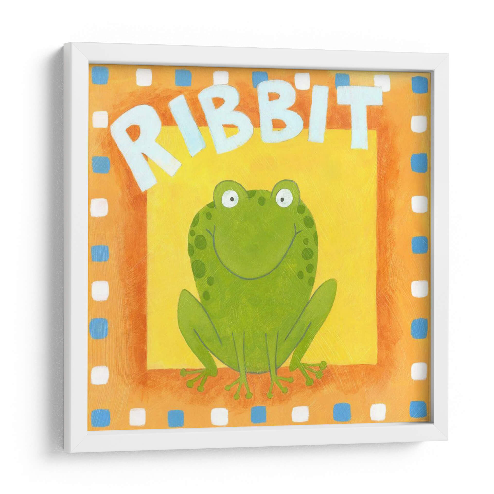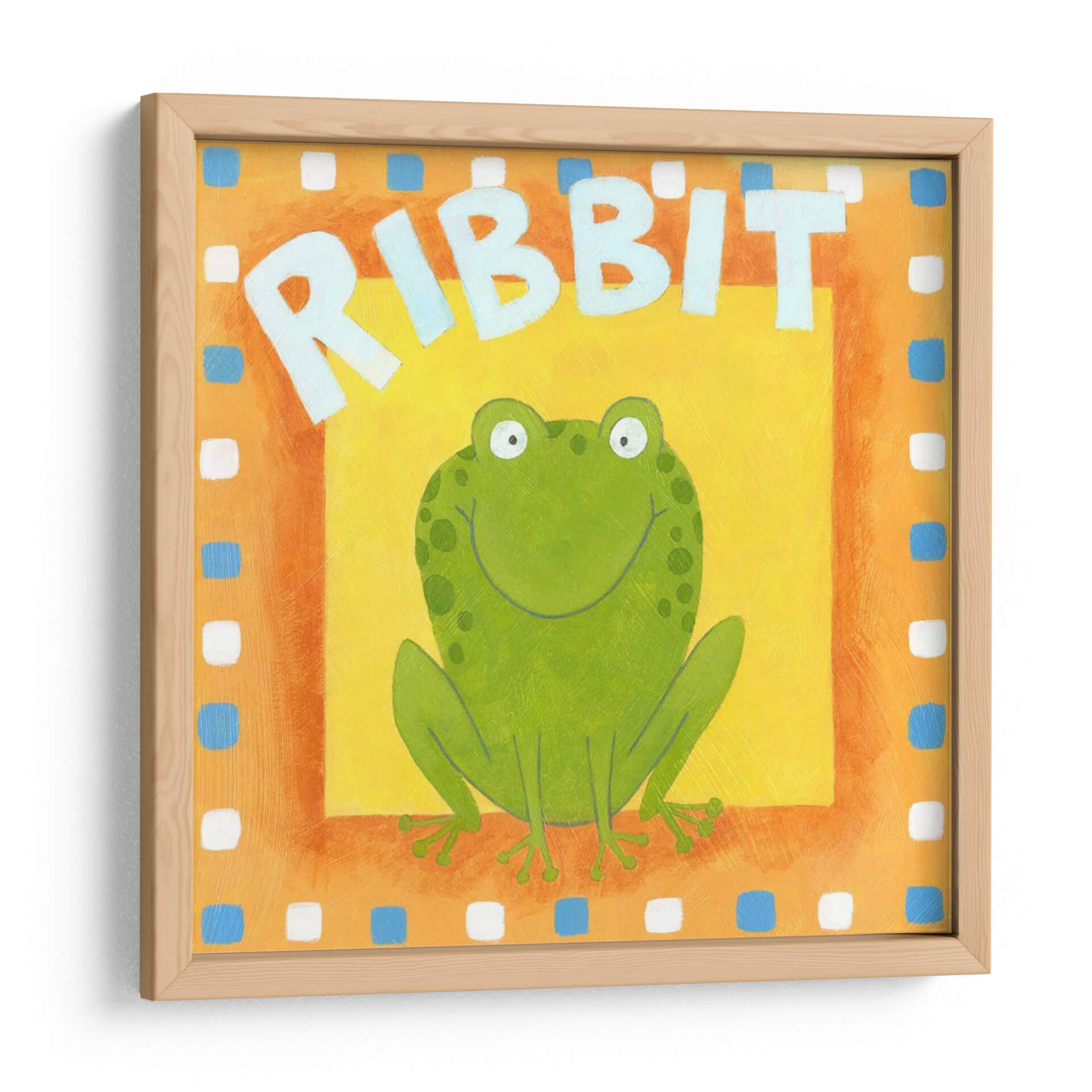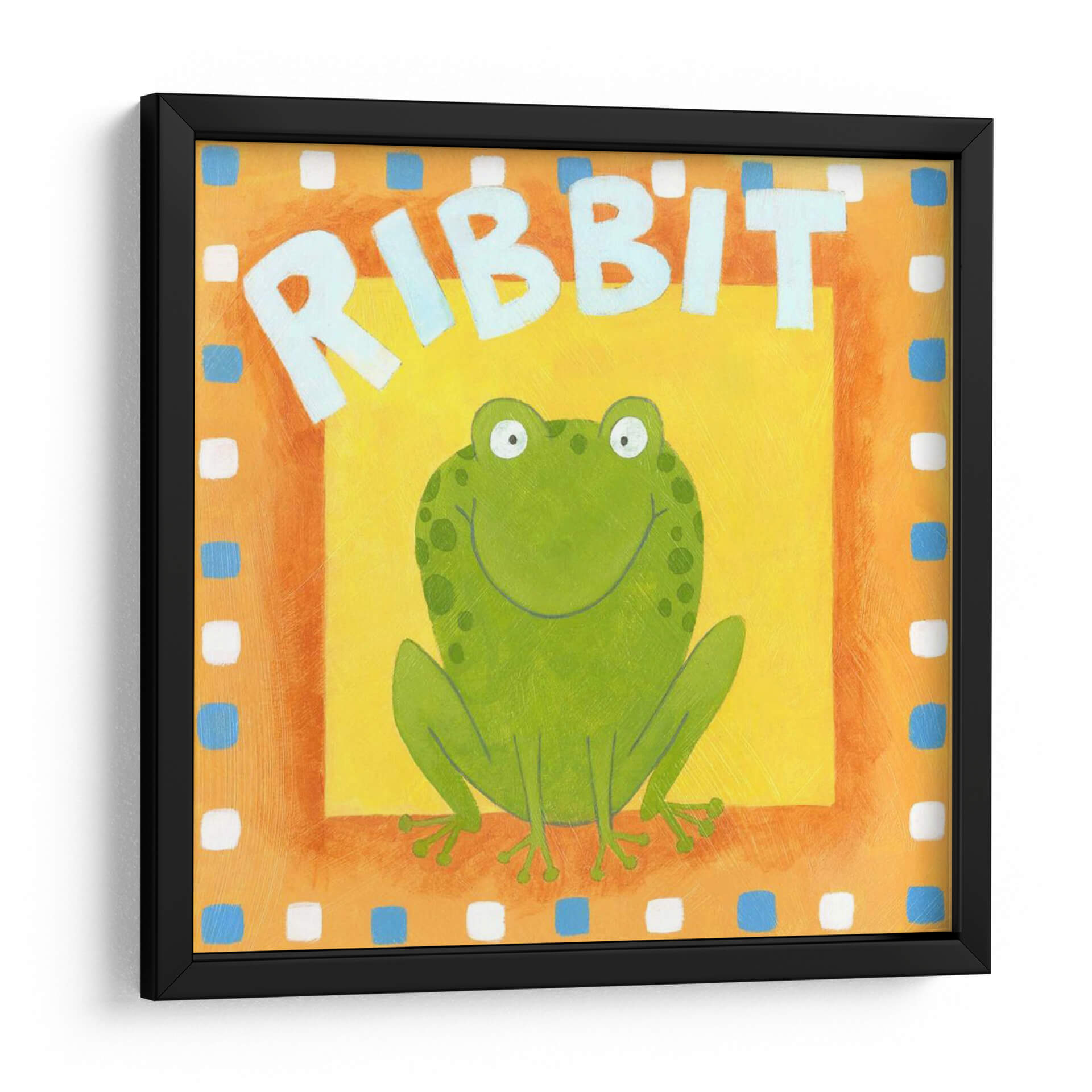 Añade un toque de alegría y color a tu hogar con "Ribbit", una encantadora obra de arte de Megan Meagher. Este cuadro decorativo presenta una simpática rana verde sonriente, con manchas sutiles y ojos vivaces, que irradia felicidad. La composición se centra en la figura de la rana sobre un vibrante fondo amarillo, enmarcada por un borde decorativo en tonos anaranjados y salpicado de cuadrados blancos y azules, creando un estilo juguetón y distintivo. La paleta de colores cálidos y brillantes, dominada por el amarillo y el naranja, junto con el verde vivo de la rana, genera una atmósfera alegre y enérgica, perfecta para espacios infantiles, salas de juego o cualquier rincón que necesite una chispa de optimismo. El estilo artístico, con sus pinceladas visibles y contornos definidos, aporta una textura visual interesante y un aire de arte contemporáneo accesible. Ideal para quienes buscan arte de pared que evoque emociones positivas y añada personalidad a su decoración.