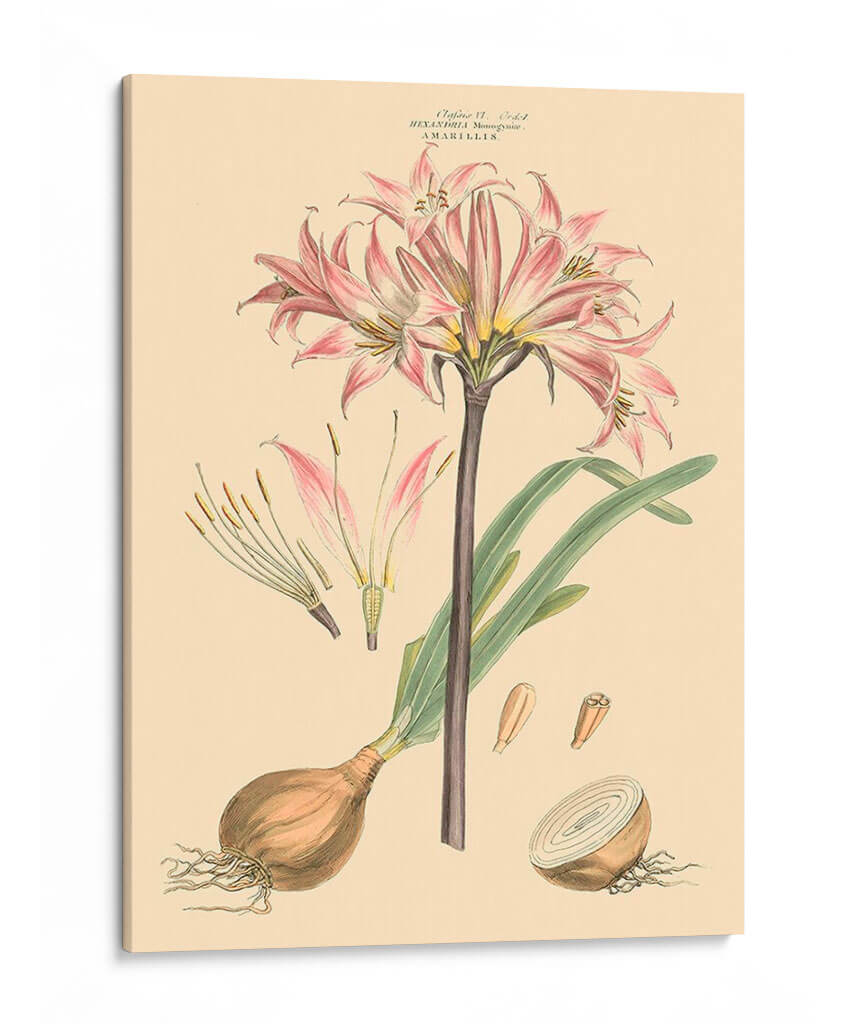 Sumérgete en la delicadeza botánica con "Rubor Rosa Florals Ii", una obra de arte que captura la esencia de la floración en su máxima expresión. Este cuadro decorativo, obra del artista John Miller, presenta una detallada ilustración de una flor de amarilis en tonos rosados y blancos, con delicados toques de amarillo en su centro. La pieza se complementa con representaciones anatómicas de la planta, incluyendo su bulbo, hojas y detalles de sus estambres, evocando la precisión de los estudios botánicos clásicos. La paleta de colores suaves, dominada por un fondo crema y los rosas pálidos de la flor, crea una atmósfera de calma y elegancia, ideal para espacios que buscan serenidad y un toque de naturaleza sofisticada. Los detalles intrincados y la composición equilibrada hacen de este cuadro una pieza atemporal, perfecta para añadir un punto focal de belleza natural a salones, dormitorios o estudios. Descubre la armonía floral y la maestría artística en "Rubor Rosa Florals Ii", un cuadro que embellecerá cualquier rincón de tu hogar u oficina con su encanto botánico y su diseño exquisito. Añade esta pieza de arte floral a tu colección y disfruta de su belleza serena día tras día, un recordatorio constante de la maravilla de la naturaleza.