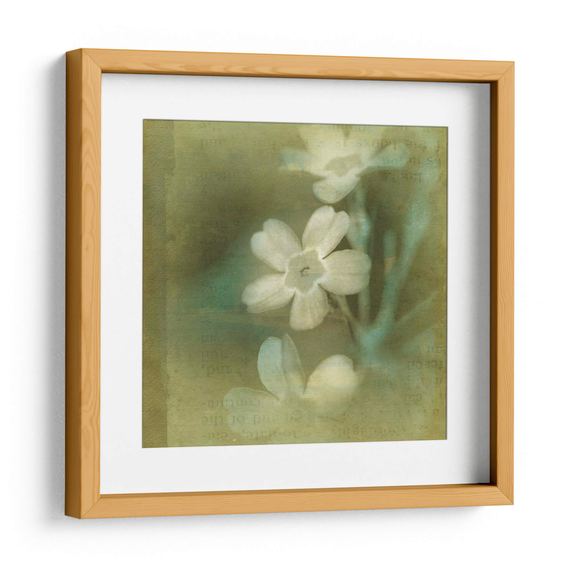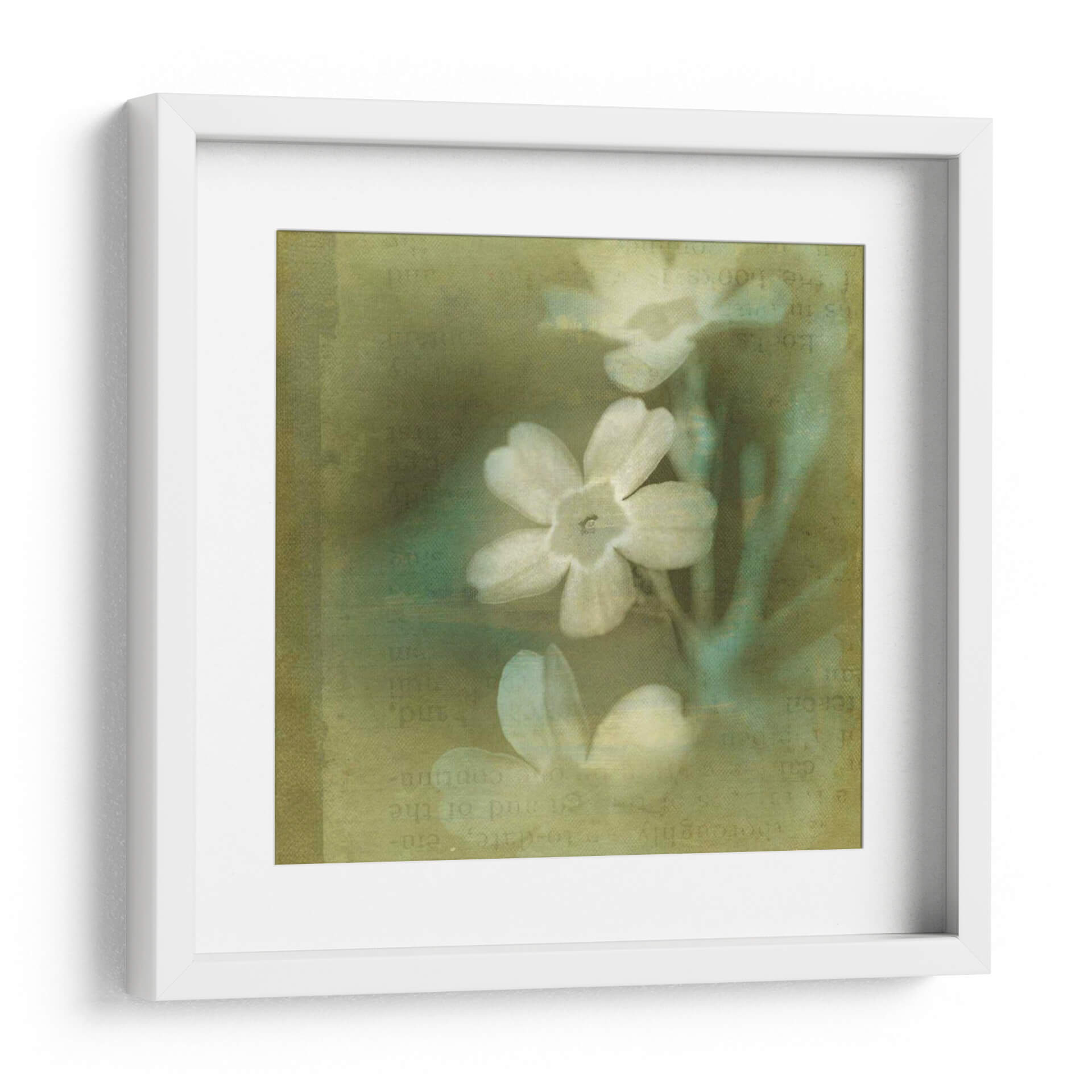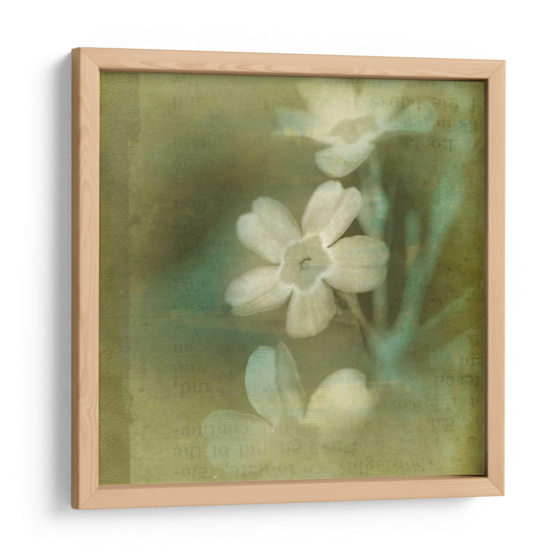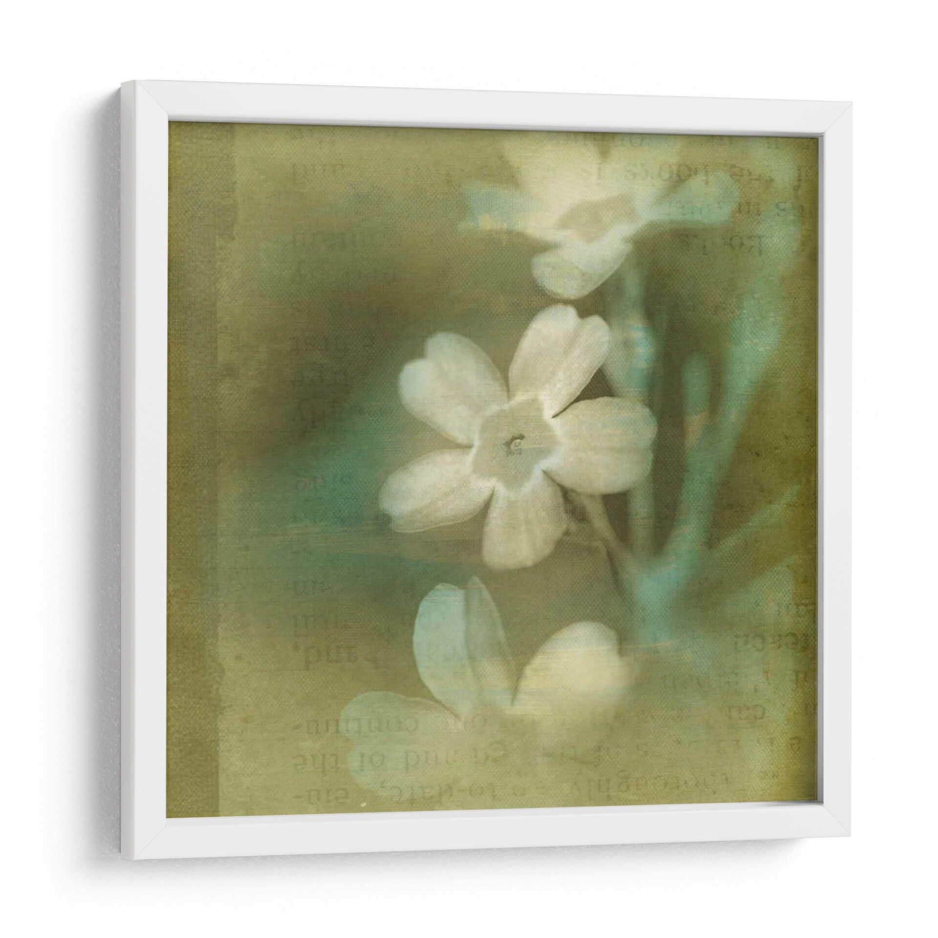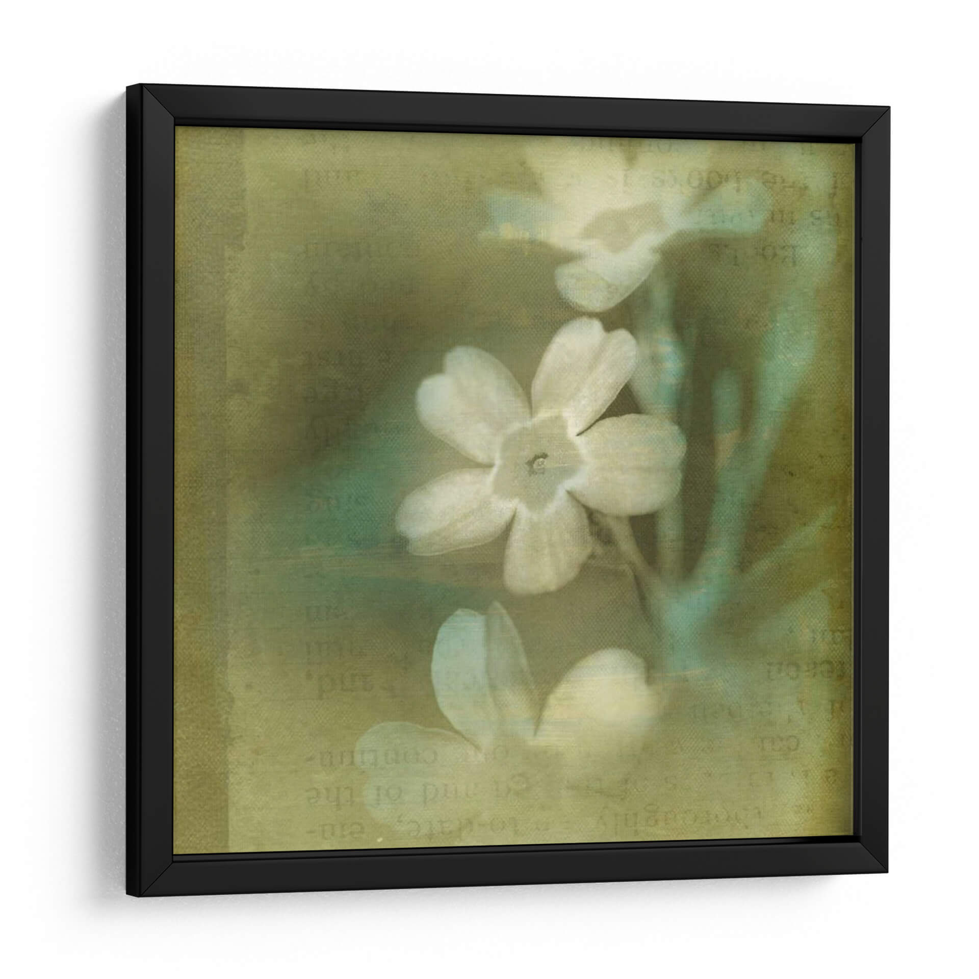 Sumérgete en la delicadeza y el encanto de "Rutas Pastel X", una obra de arte que evoca serenidad y belleza natural. Jennifer Jorgensen nos presenta una composición etérea centrada en delicadas flores blancas, cuyas formas suaves y pétalos etéreos parecen flotar sobre un fondo texturizado con referencias a escritos antiguos. La paleta de colores, dominada por tonos verdes apagados y toques de azul turquesa, crea una atmósfera de calma y contemplación, invitando a la reflexión y al descanso visual. La técnica, que fusiona lo fotográfico con lo pictórico, otorga a la pieza una cualidad soñadora y atemporal. Este cuadro decorativo es perfecto para añadir un toque de sofisticación y tranquilidad a tu dormitorio, sala de estar o estudio. Su estilo evocador y su sutil romanticismo lo convierten en una pieza versátil que armoniza con diversos estilos decorativos, desde el nórdico hasta el contemporáneo o bohemio. Descubre la poesía visual de "Rutas Pastel X" y transforma tu espacio en un oasis de paz y elegancia.