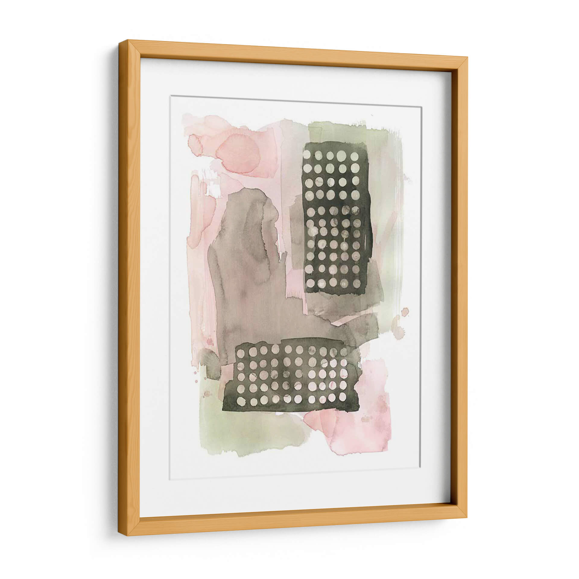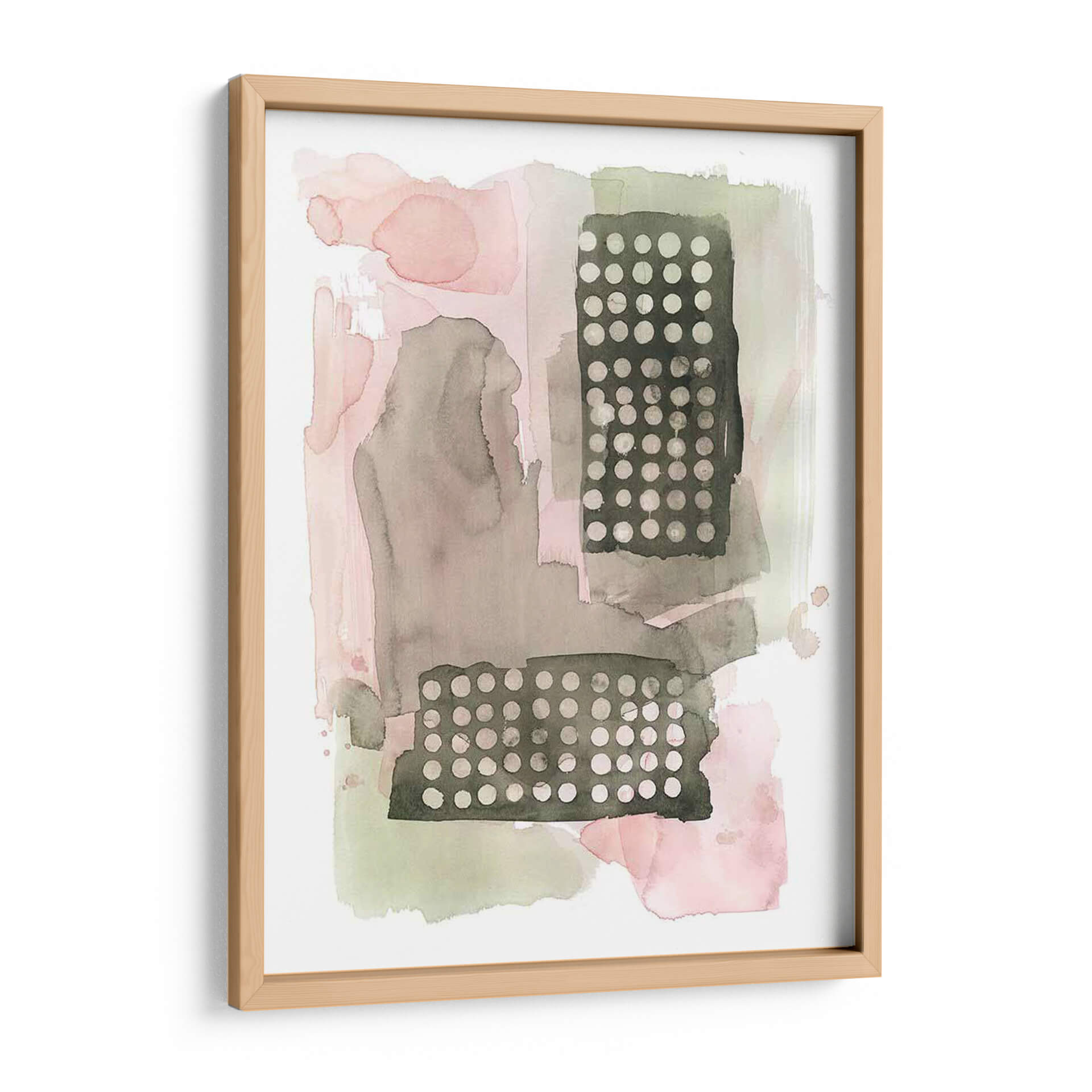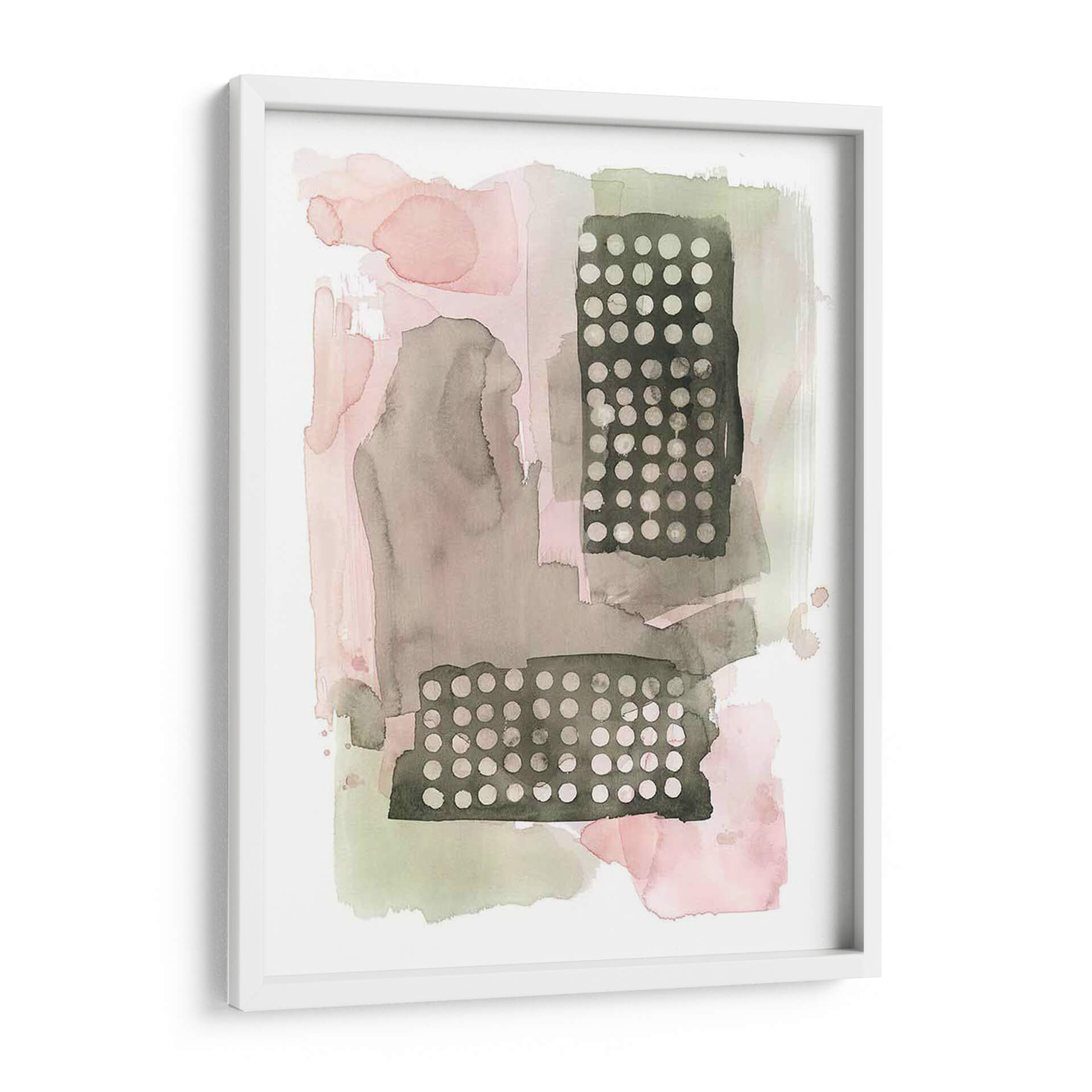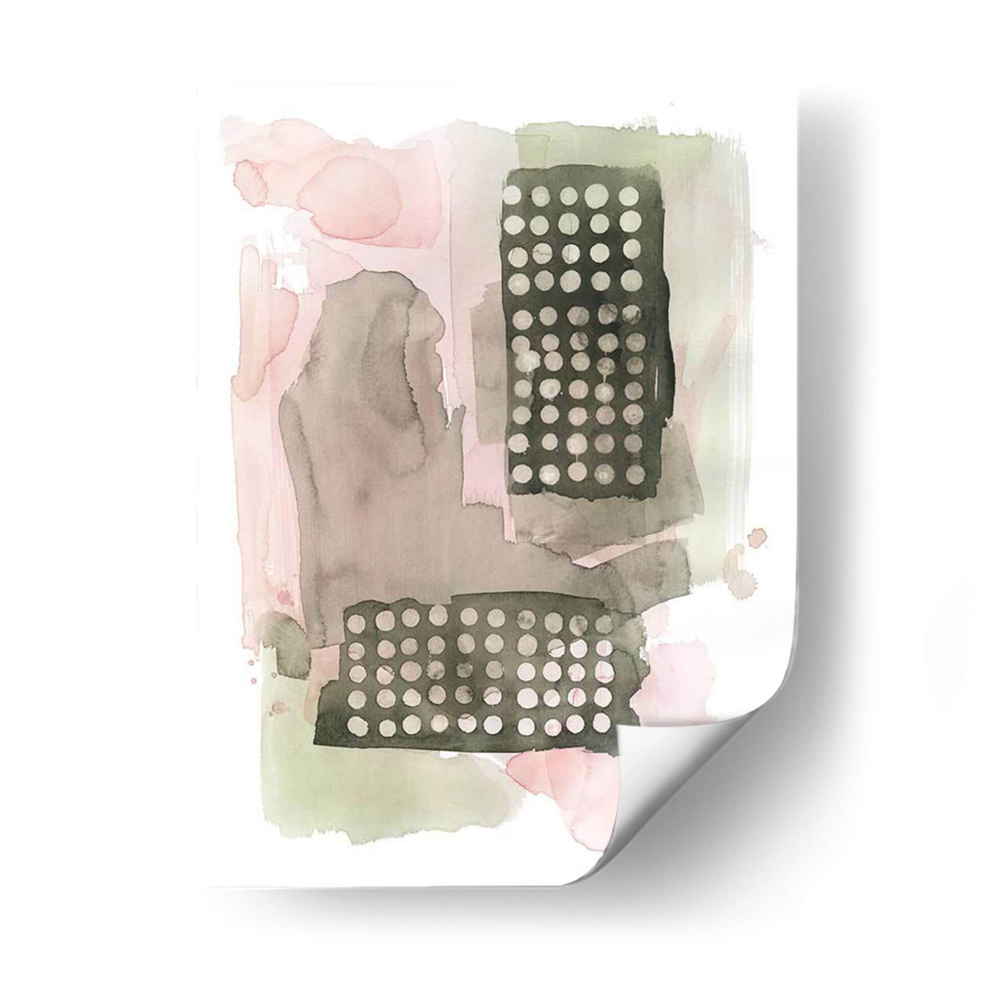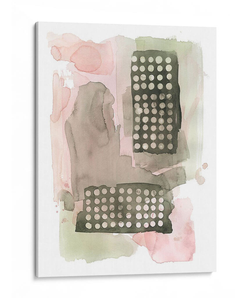 Sumérgete en la delicadeza y el encanto abstracto de "Semillas De Sandía I", una obra cautivadora de Grace Popp. Este cuadro decorativo juega con una paleta de colores suave y terrosa, donde predominan los tonos rosados empolvados, grises cálidos y verdes apagados, creando una atmósfera de serenidad y contemplación. La composición se caracteriza por sus formas orgánicas y fluidas que se entrelazan con bloques rectangulares texturizados, adornados con un patrón de puntos finos. Esta yuxtaposición de elementos blandos y geométricos aporta profundidad y un sutil interés visual. La técnica de acuarela, evidente en las sutiles transparencias y las manchas de color, confiere a la pieza una cualidad etérea y ligera. "Semillas De Sandía I" es una elección perfecta para quienes buscan añadir un toque de sofisticación contemporánea y calma a su hogar u oficina. Ideal para espacios que necesiten un acento de color suave o para complementar una decoración minimalista o escandinava, este cuadro decorativo invita a la reflexión y a la apreciación de la belleza en los detalles. Transforma tu ambiente con esta pieza única que evoca la delicadeza de la naturaleza en un lenguaje visual moderno y artístico, aportando una sensación de tranquilidad y estilo inigualable.