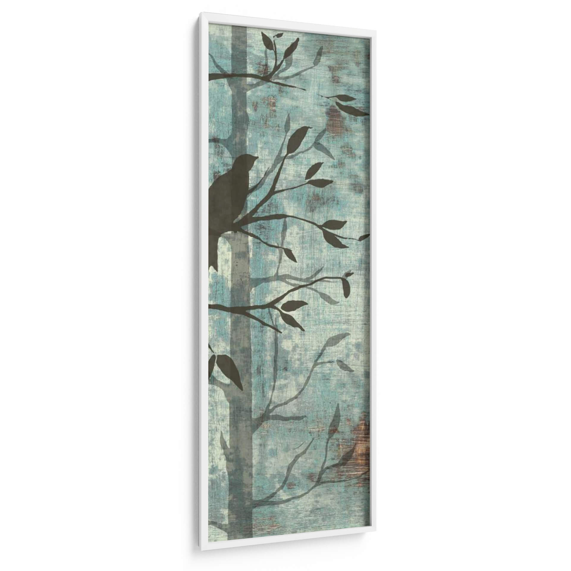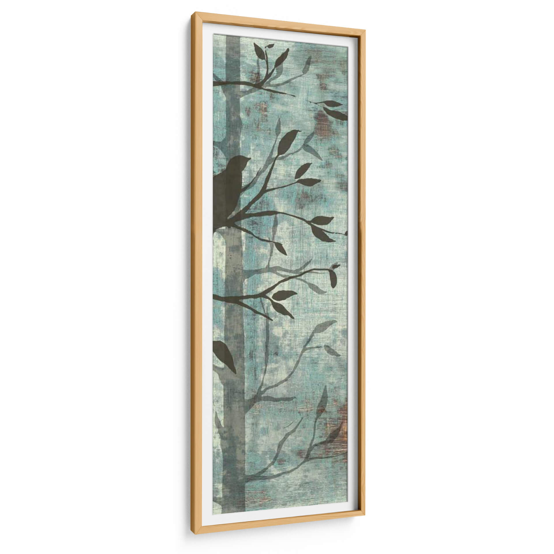Sumérgete en la serena belleza de 'Silueta Caprichosa I', una obra de arte que captura la esencia de la naturaleza con un toque contemporáneo. Esta pieza evoca una atmósfera de tranquilidad y contemplación, presentando la silueta oscura de un pájaro posado en una rama, rodeado de hojas delicadamente renderizadas. El fondo texturizado en tonos azulados y verdosos, con sutiles toques de marrón, añade profundidad y un aire rústico y orgánico. El estilo, que fusiona lo figurativo con elementos abstractos y un enfoque en la composición lineal, crea un contraste visual cautivador. "Silueta Caprichosa I" es ideal para espacios que buscan un acento de calma y conexión con la naturaleza, como un dormitorio acogedor, un estudio tranquilo o una sala de estar que aspire a la serenidad. Este cuadro decorativo es una invitación a la pausa, a observar la delicada interacción entre la vida y el entorno, y a infundir a tu hogar una sensación de paz y elegancia natural. Su paleta de colores versátil y su diseño evocador lo convierten en una adición perfecta para una decoración contemporánea, bohemia o inspirada en la naturaleza, aportando un toque artístico y significativo a cualquier pared.