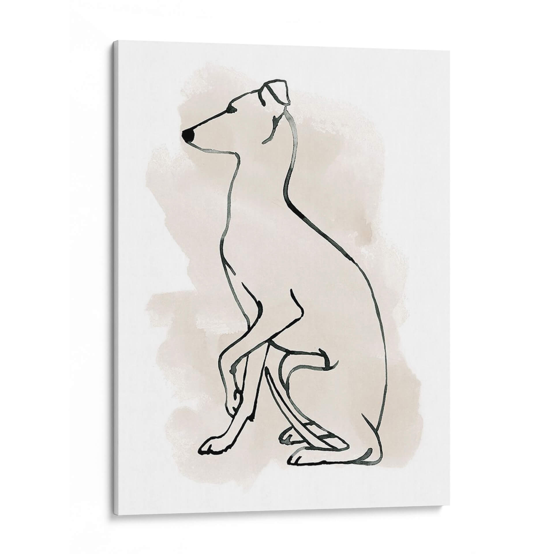 Este cautivador cuadro decorativo de Grace Popp, titulado 'Sketch II Greyhound', captura la elegancia etérea de un galgo en un estilo de arte lineal minimalista. La obra se presenta con una paleta de colores suaves y neutros, dominada por tonos beige y toques sutiles de acuarela que crean un fondo etéreo y soñador. La delicada línea negra que dibuja la figura del galgo, con su postura serena y estilizada, evoca una sensación de calma, gracia y contemplación. Es una pieza de arte contemporáneo que destaca por su simplicidad sofisticada, perfecta para añadir un toque de elegancia discreta a cualquier espacio. Ideal para salones modernos, dormitorios tranquilos o incluso oficinas que buscan una atmósfera de serenidad y estilo. Este cuadro decorativo minimalista se integra sin esfuerzo en diversas decoraciones, desde las más escandinavas hasta las contemporáneas, aportando una presencia artística sutil pero impactante. La simplicidad de su diseño permite que la imaginación del espectador juegue un papel, haciendo de esta obra una adición pensativa y estilosa a tu colección de arte de pared.