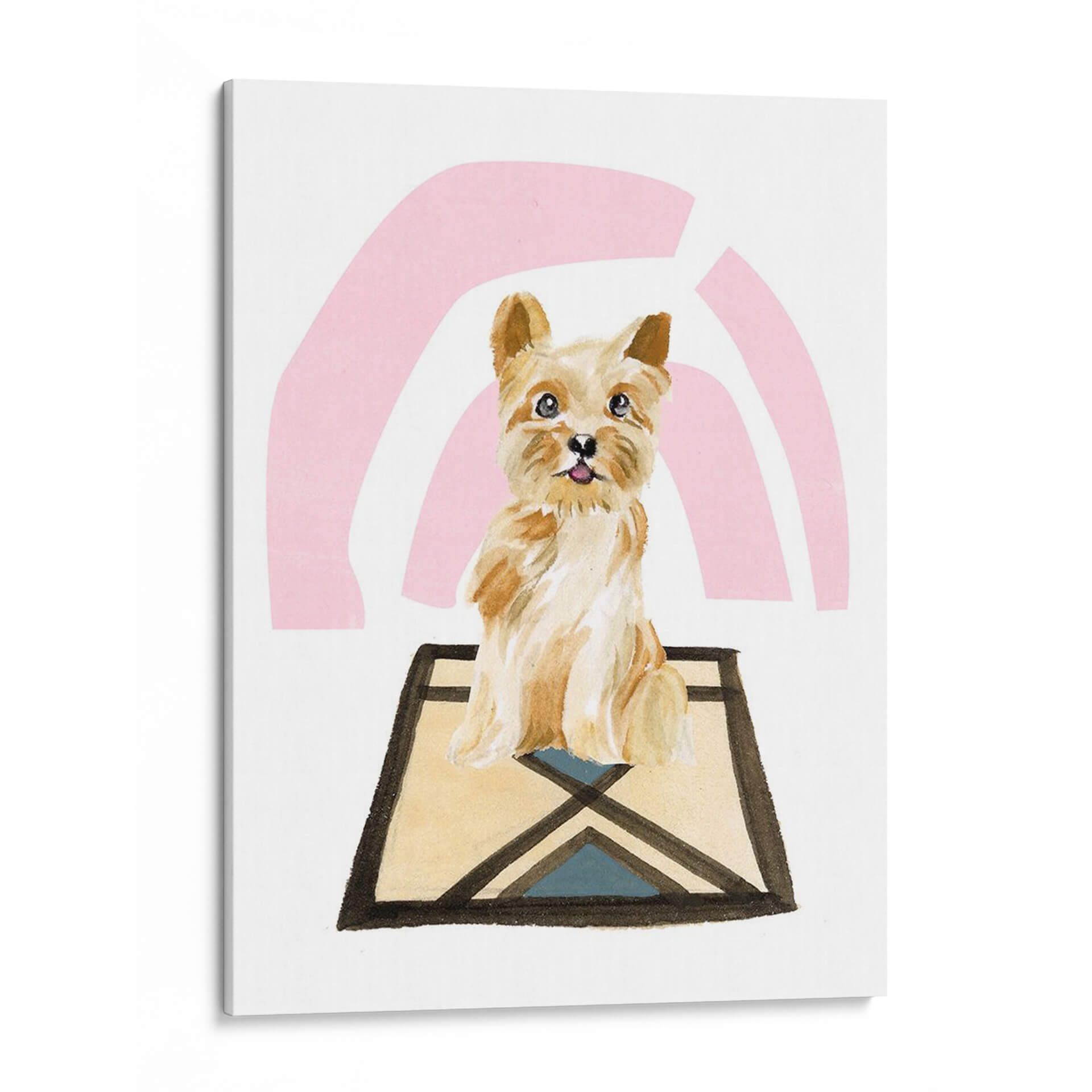 Sumérgete en la ternura y el encanto de "Solo Casa Iii", una obra de arte de Melissa Wang que captura la esencia de la compañía canina con un toque moderno y juguetón. Esta pieza presenta un adorable perro, retratado con trazos delicados y una paleta de colores cálidos en tonos tierra y ocre, sentado sobre una base geométrica estilizada. Al fondo, unos arcos abstractos en un suave tono rosado añaden un elemento contemporáneo y dinámico, creando un equilibrio visual cautivador. La expresión del perro es dulce y curiosa, invitando a la reflexión sobre la lealtad y el afecto que nuestras mascotas nos brindan. El estilo, que fusiona elementos figurativos con abstracción geométrica y de color, lo hace versátil para una amplia gama de decoraciones, desde espacios infantiles hasta salas de estar modernas o estudios. "Solo Casa Iii" es más que un simple cuadro; es una ventana a la alegría sencilla y al amor incondicional, perfecta para quienes buscan infundir calidez y personalidad a su hogar. Su composición equilibrada y su atmósfera positiva lo convierten en un punto focal encantador que añade vida y carácter a cualquier pared. Ideal para amantes de los perros y del arte contemporáneo.