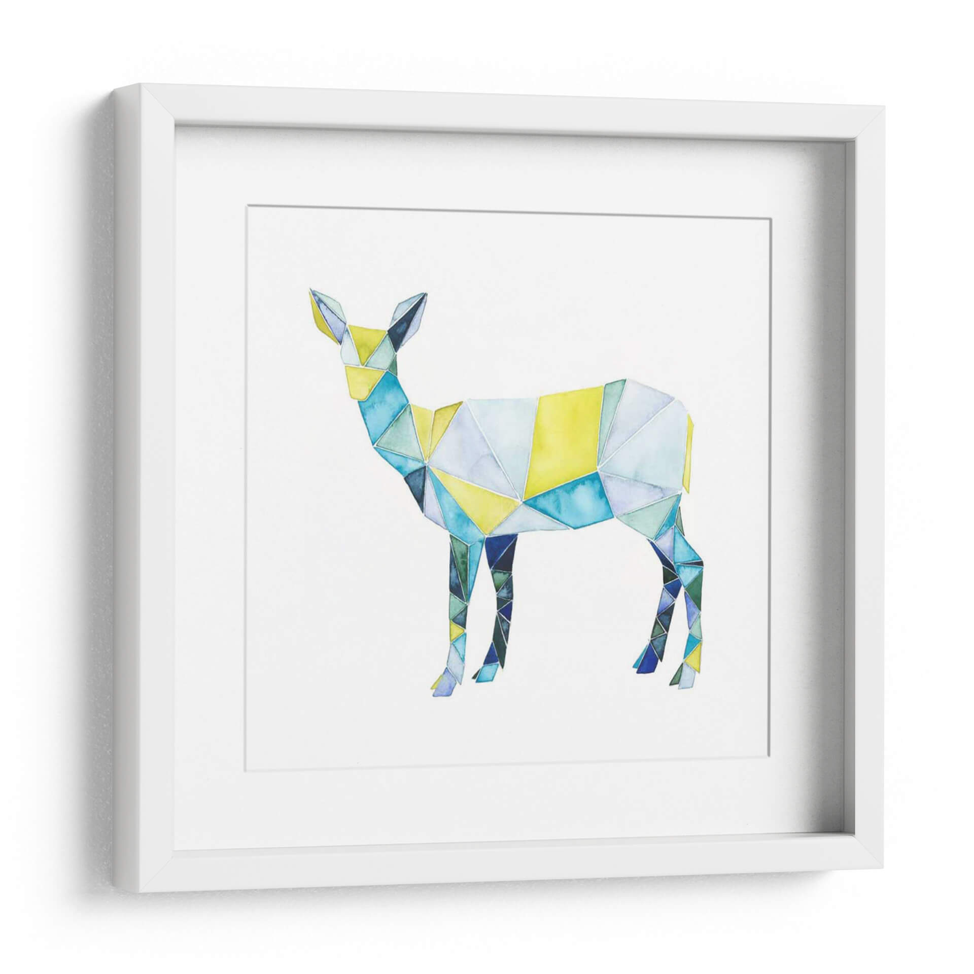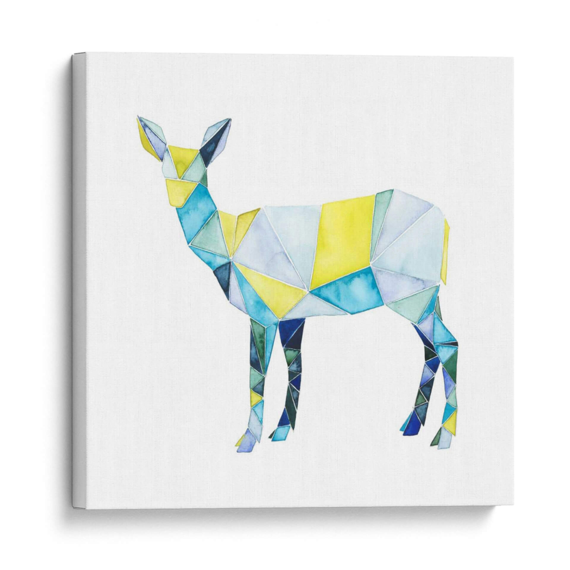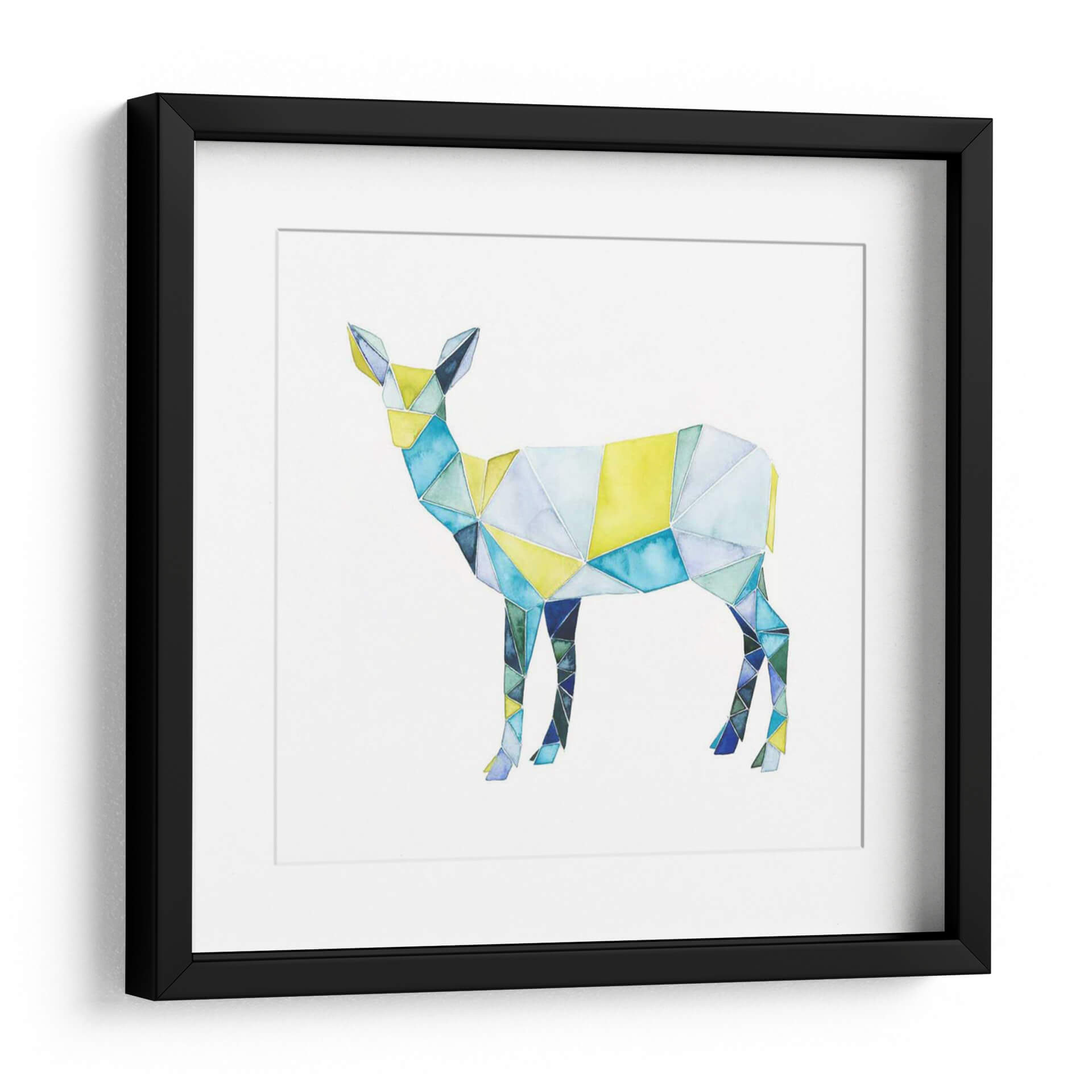 Este cuadro decorativo, titulado 'Spa Y Sepia Tile Iv' del artista Grace Popp, es una obra de arte contemporáneo que cautiva con su composición geométrica y paleta de colores vibrantes. La figura central de un ciervo, representada a través de un mosaico de triángulos y polígonos en tonos azules, verdes y amarillos, evoca una sensación de calma y conexión con la naturaleza. Cada faceta de color se fusiona suavemente con la siguiente, creando un efecto acuarela que añade profundidad y textura a la pieza. El fondo blanco puro resalta la vitalidad de la figura, convirtiéndola en un punto focal inmediato para cualquier espacio. Este cuadro es ideal para añadir un toque de frescura y modernidad a salones, dormitorios u oficinas, fusionando el arte abstracto con la delicadeza de la fauna. Su estilo único lo hace perfecto para quienes buscan una decoración de pared que sea a la vez elegante y expresiva, aportando serenidad y un aire de sofisticación natural. Descubre la armonía de las formas y colores en esta pieza inspiradora que transformará tu hogar o lugar de trabajo.