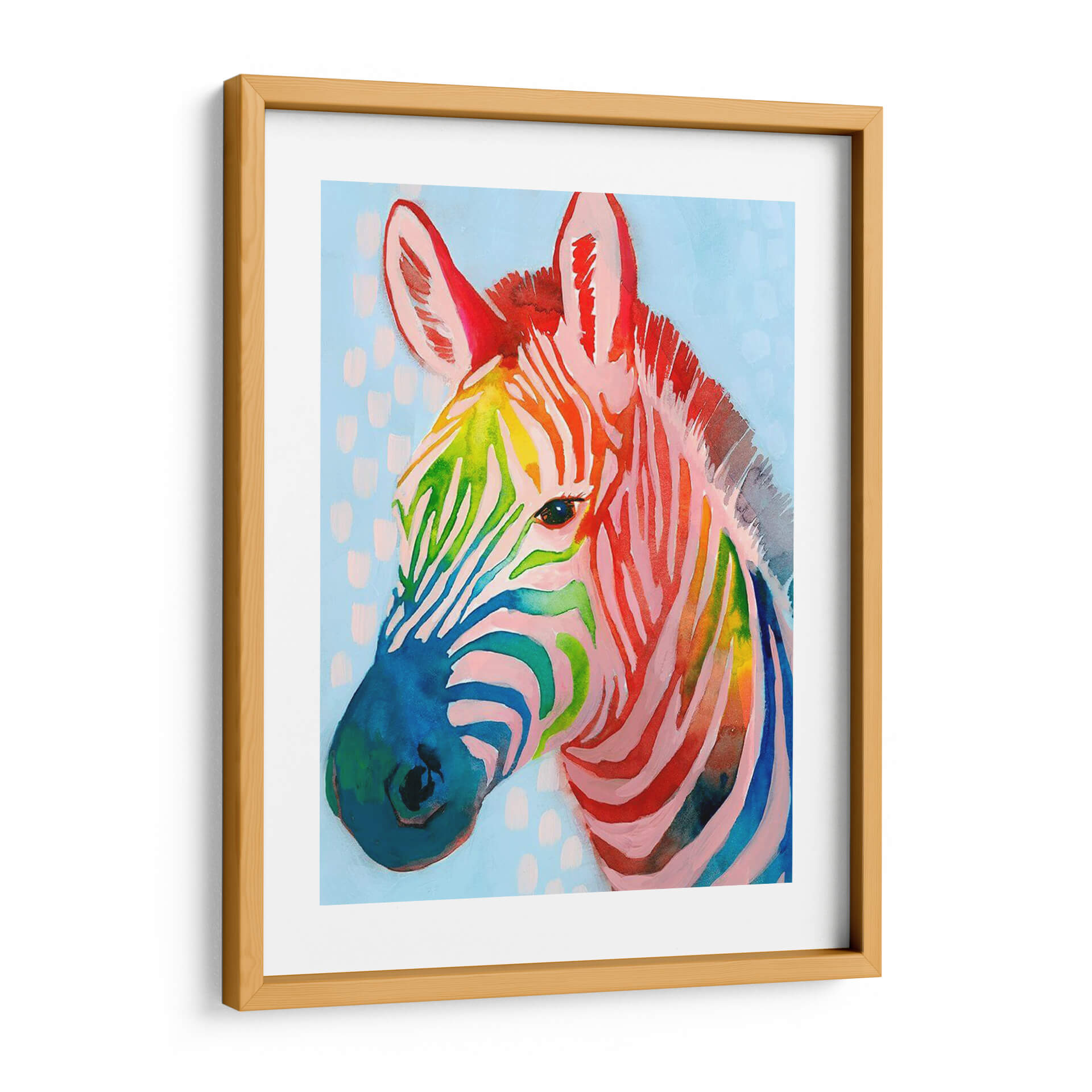 Sumérgete en la vibrante energía de "Spectrum Jungle I", una obra de arte contemporáneo que reimagina la majestuosidad de la cebra con una explosión de color. Este cuadro decorativo, de la aclamada artista Grace Popp, presenta un estudio detallado de la cabeza de una cebra, donde las icónicas rayas se transforman en un caleidoscopio de tonos arcoíris. Los azules profundos y los verdes vibrantes se entrelazan con naranjas ardientes y rosas juguetones, creando un contraste dinámico sobre un fondo celeste salpicado de suaves toques blancos y rosados que sugieren un entorno etéreo y abstracto. La técnica, que evoca la fluidez y espontaneidad de la acuarela, aporta una textura visual rica y una sensación de movimiento a la pieza. "Spectrum Jungle I" no es solo una representación animal; es una celebración de la vida, la diversidad y la alegría. Su estilo audaz y moderno la convierte en el punto focal perfecto para cualquier espacio que busque un toque de originalidad y vitalidad. Ideal para salas de estar, estudios o incluso una habitación infantil con un toque vanguardista, este cuadro decorativo invita a la conversación y a la admiración. Añade un toque de color y personalidad a tus paredes con esta pieza única.