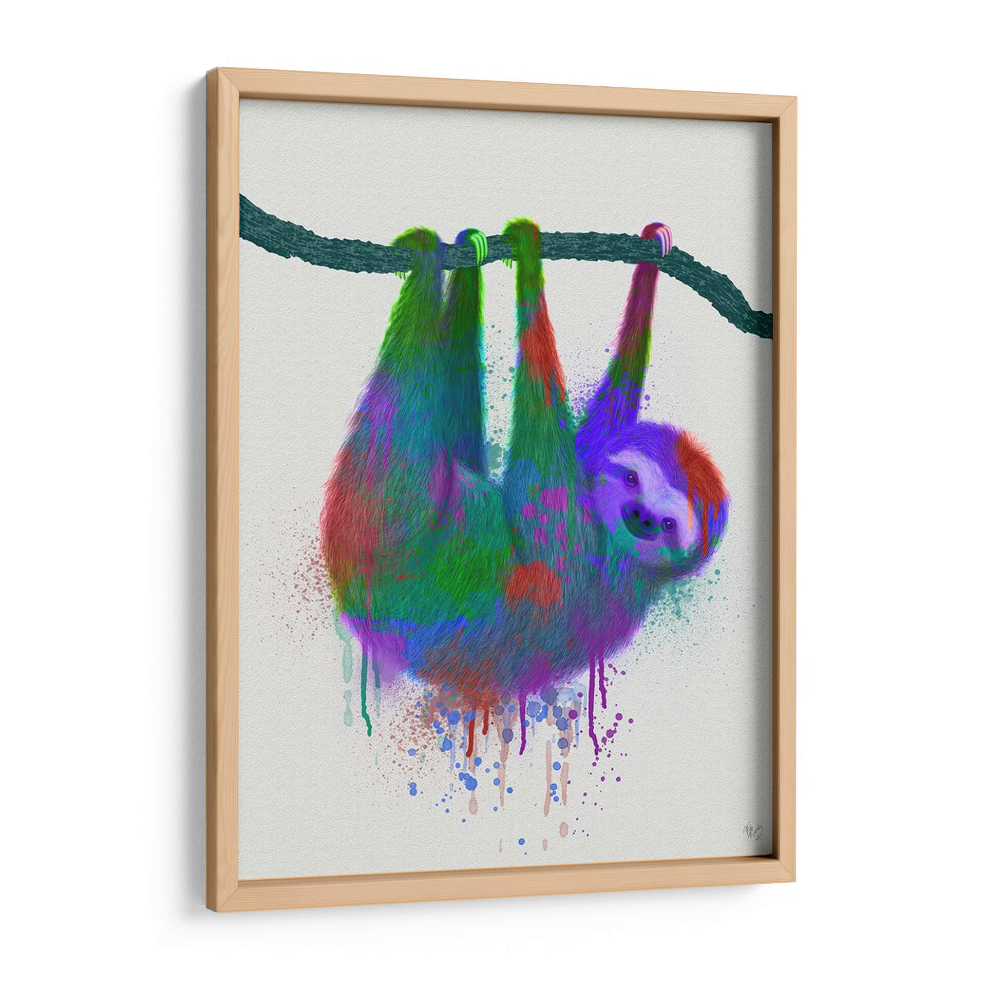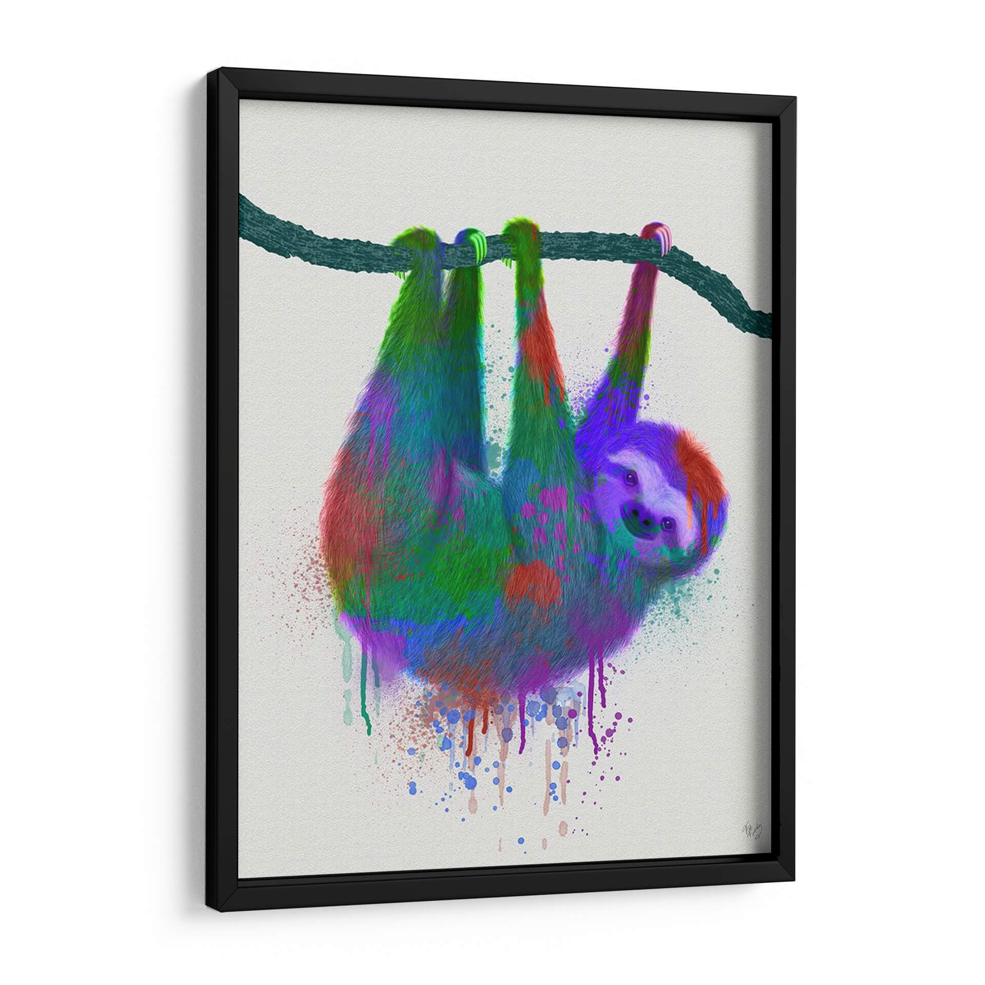 Transforma tu espacio con el encantador cuadro decorativo "Splash Sloth Rainbow" del artista Fab Funky. Esta vibrante obra de arte presenta un perezoso colgando juguetona y cómicamente de una rama, interpretado con una explosión de colores arcoíris. Los tonos intensos de verde, morado, rojo y toques de azul se mezclan en un estilo que recuerda a la pintura salpicada y el goteo, creando una sensación de energía y alegría desenfadada. El fondo neutro y texturizado permite que la figura del perezoso sea el foco principal, haciendo de esta pieza una adición llamativa y llena de personalidad para cualquier habitación. Ideal para salones modernos, dormitorios juveniles o incluso oficinas que buscan un toque de originalidad y optimismo. Este cuadro decorativo no solo añade color, sino que también evoca una sensación de diversión y despreocupación, invitando a la conversación y al disfrute. Su estilo contemporáneo y audaz lo convierte en una excelente opción para quienes desean expresar su individualidad a través de la decoración. Añade un toque de fantasía y color a tu vida con este perezoso arcoíris, una obra que captura la imaginación y alegra el alma, perfecta para romper con la monotonía y añadir un punto focal único a tu hogar.