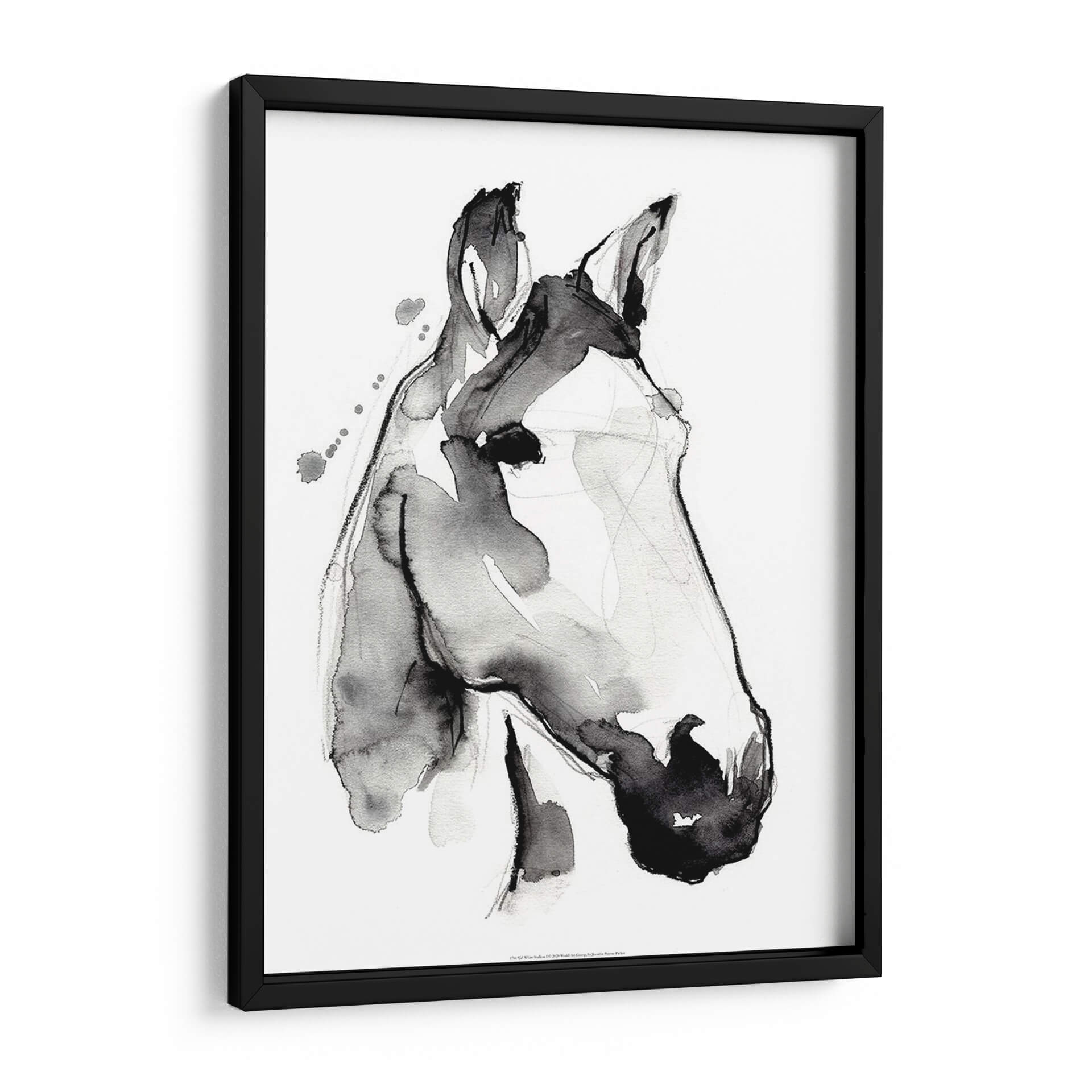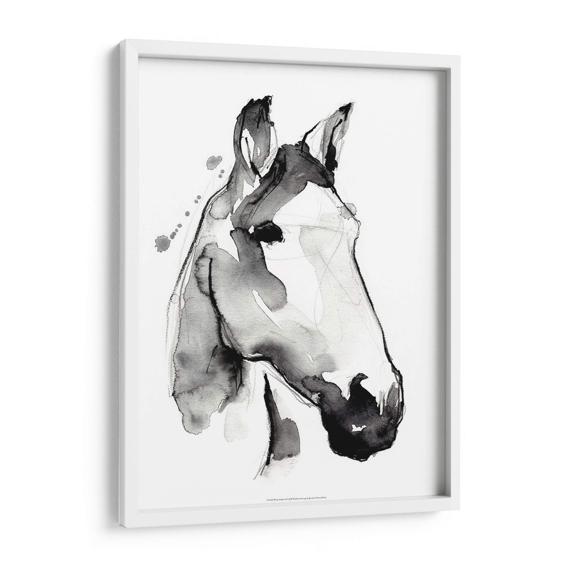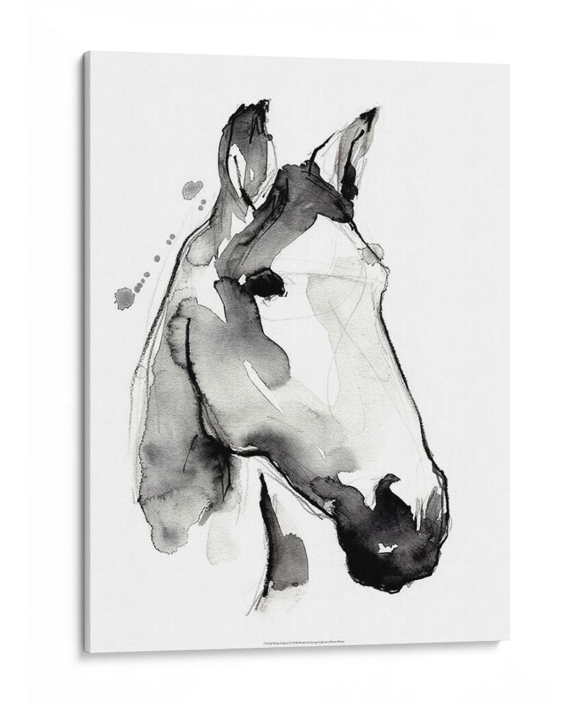 Sumérgete en la elegancia etérea de "Stallión Blanca I", una obra de arte contemporáneo que captura la esencia de un caballo con una delicadeza acuática y trazos audaces. Jennifer Paxton Parker nos presenta un retrato minimalista donde la tinta fluye libremente, creando formas sugerentes y llenas de vida. La paleta monocromática en blanco y negro, acentuada por salpicaduras de tinta sutiles y líneas finas, evoca una sensación de movimiento y poder silencioso. Este cuadro decorativo es una pieza central perfecta para espacios que buscan un toque de sofisticación y un aire de naturaleza salvaje domesticada. Su estilo abstracto y expresivo lo convierte en un punto focal cautivador para salas de estar modernas, estudios de arte o despachos que anhelan una dosis de inspiración y carácter. Imagina cómo las sutiles variaciones de gris y negro añadirán profundidad y textura a tus paredes, creando un ambiente de calma y admiración. "Stallión Blanca I" no es solo una decoración, es una invitación a contemplar la belleza en su forma más pura y dinámica, una adición atemporal que resonará con amantes del arte y la naturaleza por igual. Es ideal para quienes buscan añadir un elemento de arte animalista con una perspectiva contemporánea y elegante.